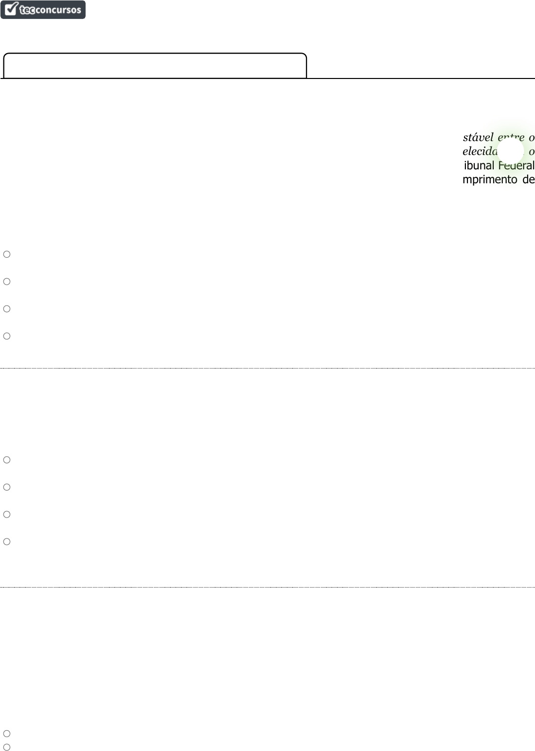 Teoria Geral e Filosofia do Direito para OAB Exame XXXVIII - 2023 ( https://www.tecconcursos.com.br/s/Q2fdtO ) Ordenação: Por Matéria Teoria Geral, Filosofia e Sociologia Jurídica Questão 201: FGV - NAC UNI OAB/OAB/2016 Assunto: Direito, Moral e Justiça Segundo o Art. 1.723 do Código Civil, “É reconhecida como entidade familiar a união estável entre o homem e a mulher, configurada na convivência pública, contínua e duradoura e estabelecida com o objetivo de constituição de família”. Contudo, no ano de 2011, os ministros do Supremo Tribunal Federal (STF), ao julgarem a Ação Direta de Inconstitucionalidade 4.277 e a Arguição de Descumprimento de Preceito Fundamental 132, reconheceram a união estável para casais do mesmo sexo. A situação acima descrita pode ser compreendida, à luz da Teoria Tridimendional do Direito de Miguel Reale, nos seguintes termos: a) uma norma jurídica, uma vez emanada, sofre alterações semânticas pela superveniência de mudanças no plano dos fatos e valores. b) toda norma jurídica é interpretada pelo poder discricionário de magistrados, no momento em que estes transformam a vontade abstrata da lei em norma para o caso concreto. c) o fato social é que determina a correta compreensão do que é a experiência jurídica e, por isso, os costumes devem ter precedência sobre a letra fria da lei. d) o ativismo judicial não pode ser confundido com o direito mesmo. Juízes não podem impor suas próprias ideologias ao julgarem os casos concretos. Esta questão possui comentário do professor no site. www.tecconcursos.com.br/questoes/341188 Questão 202: FGV - NAC UNI OAB/OAB/2016 Assunto: Direito, Moral e Justiça Segundo o filósofo Immanuel Kant, em sua obra Fundamentação da Metafísica dos Costumes, a ideia de dignidade humana é entendida a) como qualidade própria de todo ser vivo que é capaz de sentir dor e prazer, isto é, característica de todo ser senciente. b) quando membros de uma mesma espécie podem ser considerados como equivalentes e, portanto, iguais e plenamente cooperantes se eles possuem dignidade. c) como valor jurídico que se atribui às pessoas como característica de sua condição de sujeitos de direitos. d) como algo que está acima de todo o preço, pois quando uma coisa tem um preço pode-se pôr em vez dela qualquer outra como equivalente; mas quando uma coisa está acima de todo o preço, e portanto não permite equivalência, então ela tem dignidade. Esta questão possui comentário do professor no site. www.tecconcursos.com.br/questoes/341189 Questão 203: FGV - NAC UNI OAB/OAB/2016 Assunto: Direito, Moral e Justiça A partir da leitura de Aristóteles (Ética a Nicômaco), assinale a alternativa que corresponde à classificação de justiça constante do texto: “... uma espécie é a que se manifesta nas distribuições de honras, de dinheiro ou das outras coisas que são divididas entre aqueles que têm parte na constituição (pois aí é possível receber um quinhão igual ou desigual ao de um outro)...” a) Justiça Natural. b) Justiça Comutativa. ) ç c) Justiça Corretiva. d) Justiça Distributiva. Esta questão possui comentário do professor no site. www.tecconcursos.com.br/questoes/383407 Questão 204: FGV - NAC UNI OAB/OAB/2016 Assunto: Direito, Moral e Justiça Na sua mais importante obra, a Summa Theologica, Santo Tomás de Aquino trata os conceitos de justiça comutativa e de justiça distributiva de uma tal maneira, que eles passariam a ser largamente utilizados na Filosofia do Direito. Assinale a opção que apresenta esses conceitos, conforme expostos na obra citada. a) A Justiça Comutativa regula as relações mútuas entre pessoas privadas e a Justiça Distributiva regula a distribuição proporcional dos bens comuns. b) A Justiça Distributiva destina-se a minorar o sofrimentos das pessoas e a Justiça Comutativa regula os contratos de permuta de mercadorias. c) a Justiça Comutativa trata da redução ou diminuição das penas (sanção penal) e a Justiça Distributiva da distribuição justa de taxas e impostos. d) A Justiça Comutativa regula a relação entre súditos e governante e a Justiça Distributiva trata das relações entre diferentes povos, também chamadas de direito das gentes. Esta questão possui comentário do professor no site. www.tecconcursos.com.br/questoes/383487 Questão 205: FGV - NAC UNI OAB/OAB/2016 Assunto: Direito, Moral e Justiça “ O direito não é uma simples ideia, é uma força viva.” (Rudolf von Ihering) Em seu texto “ A Luta pelo Direito”, o jurista alemão Rudolf von Ihering apresenta o conceito de direito a partir da ideia de luta social. Assinale a afirmativa que expressa o sentido que, no trecho citado, Ihering confere ao direito. a) Trabalho incessante e uma luta sem tréguas nos quais participam o Poder Público e toda a população, isto é, qualquer pessoa que se veja na contingência de ter de afirmar seu direito. b) Uma luta permanente que é travada por parlamentares no âmbito da arena legislativa, que o fazem em nome da população a partir das eleições que configuram o processo democrático de legitimação popular. c) O resultado dinâmico da jurisprudência que cria e recria o direito a partir das demandas de cada caso concreto, adaptando a lei ao mundo real. d) O produto das relações industriais e comerciais que são livremente travadas por agentes econômicos, trabalhadores e empregadores e que definem, no contexto de uma luta concreta, o sentido próprio das leis. Esta questão possui comentário do professor no site. www.tecconcursos.com.br/questoes/383488 Questão 206: FGV - NAC UNI OAB/OAB/2016 Assunto: Direito, Moral e Justiça De acordo com o contratualismo proposto por Thomas Hobbes em sua obra Leviatã, o contrato social só é possível em função de uma lei da natureza que expresse, segundo o autor, a própria ideia de justiça. Assinale a opção que, segundo o autor na obra em referência, apres