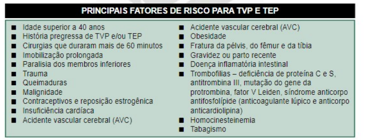 TROMBOEMBOLISMO PULMONAR (TEP) DEFINIÇÃO: Tromboembolismo pulmonar TEP consiste na obstrução aguda da circulação arterial pulmonar pela instalação de coágulos sanguíneos, geralmente oriundos da circulação venosa sistêmica, com redução ou ausência da perfusão pulmonar para a área afetada. - tromboêmbolos, células neoplásicas, gotículas de gordura, líquido amniótico ou substâncias exógenas injetadas na circulação. Principal causa da embolia pulmonar é a tromboembólica secundária à trombose venosa profunda (TVP), principalmente dos vasos dos membros inferiores. Os principais mecanismos causadores da trombose vascular são atribuídos à clássica tríade descrita por Virchow (1846): estase venosa + lesão endotelial + estados de hipercoagulabilidade. O trombo geralmente origina-se nas cúspides valvulares do sistema venoso. Uma vez que a cascata da coagulação está ativada, vários mecanismos passam a atuar na tentativa de inibir a propagação do trombo fator ativador do plasminogênio tecidual (t-PA); - antitrombina III; - proteína C, o mais potente mecanismo endógeno anticoagulante; - proteína S; - α2-macroglobulina; - clearance dos fatores da coagulação ativados pelo sistema reticuloendotelial e fígado, além da digestão da fibrina pelos leucócitos O TEP maciço caracteriza-se pelo comprometimento hemodinâmico do paciente, por choque ou hipotensão – PAS < 90mmHg ou queda da PAS ≥ 40mmHg. As consequências hemodinâmicas da embolia pulmonar (EP) dependem não só das dimensões e número do(s) êmbolo(s) como também da existência ou não de doença cardiovascular prévia. FATORES DE RISCO: Qualquer neoplasia aumenta o risco de TVP (principalmente as neoplasias do pâncreas, do pulmão, da mama e do trato geniturinário), devido à ação de fatores pró-coagulantes liberados pelas células neoplásicas. Os estrógenos aumentam a síntese hepática dos fatores de coagulação e inibem a antitrombina III. Estima-se um aumento de três vezes do risco associado ao uso de estrógenos. A deficiência familiar de antitrombina III (herança autossômica dominante com penetração parcial), de síntese hepática e com atividade de neutralização dos fatores XIIa, XIa, IXa e trombina deve ser suspeitado naqueles pacientes com TEP recorrente. A deficiência de proteínas C e S, sintetizadas no fígado, e a vitamina K-dependente são fatores anticoagulantes (inibem os fatores VIIIa e Va). Anticorpos IgG ou IgM antifosfolipídio prolongam o tempo de tromboplastina parcial ativada (TTPa) por inibição da coagulação extrínseca e diminuem a síntese de prostaciclina do endotélio do vaso. Essa ação gera desequilíbrio na relação tromboxano A2/prostaciclina, favorecendo fenômenos trombóticos e abortivos. As trombofilias serão investigadas quando não houver uma causa aparente que justifique a trombose venosa, sendo as mais prevalentes a resistência à proteína C-ativada (fator V Leiden) e a mutação do gene 20210A da protrombina. FISIOPATOLOGIA: As repercussões hemodinâmicas da embolia pulmonar são decorrentes dos seguintes fatores: - percentual da área arterial pulmonar ocluída; - reserva contrátil do VD frente à elevação súbita da pós-carga; - intensidade de mediadores humorais (vasoconstritores e broncoconstritores) liberados da massa trombótica, os quais agravam a hipertensão pulmonar (HP) Ao ecocardiograma, o VD comumente apresenta-se dilatado, hipocinético (especialmente sua parede livre), e o septo interventricular poderá desviar-se para a esquerda, reduzindo, assim, as dimensões do ventrículo esquerdo (VE). A presença de insuficiência tricúspide e o aumento do átrio direito são também observados. A dificuldade de ejeção do VD e a consequente redução do enchimento ventricular esquerdo levam, nos casos graves, a um choque obstrutivo para o VD e hipovolêmico para o VE. O desvio do septo interventricular da direita para a esquerda (efeito Berheim inverso) e a elevação da tensão intrapericárdica contribuem para diminuir a complacência do VE, com elevação da pressão diastólica final e risco de edema agudo de pulmão. A hipoxemia e o aumento do gradiente alvéolo-arterial de O2 são achados clínicos frequentes, mesmo em graus de obstrução leve; e devem-se, principalmente, à presença de espaço morto alveolar, de efeito shunt, de broncoconstrição e vasoconstrição reflexa e à deficiência de surfactante com consequente colapso alveolar. A presença do surfactante é fundamental na manutenção da estabilidade alveolar, evitando o surgimento de atelectasias. SINTOMAS: A dispneia, a dor torácica tipo pleurítica e a tosse são sintomas muito sugestivos de TEP. A dispneia súbita ou subaguda ocorre mais comumente quando há obstrução nos vasos principais. A dor no peito relatada é abrupta, em pontada, piorando a inspiração e aliviando ao repouso, em consequência da inflamação na pleura, denotando a natureza pleurítica. A hemoptise é consequência da área pulmonar infartada, Os sinais podem estar relacionados à hipoxemia e à disfunção do VD (galope, insuficiência tricúspide, hiperfonese da segunda bulha no foco pulmonar, estase jugular e sinais de choque cardiogênico). A taquipneia, a alteração dos ruídos à ausculta pulmonar e a taquicardia, associadas aos sintomas, pressupõem suspeita de TEP. O espectro de apresentação clínica dos pacientes com embolia pulmonar é amplo e o temos didaticamente dividido em três classes clínicas: - classe I: pacientes com instabilidade hemodinâmica (PAS ≤ 90mmHg) - classe II – pacientes sem instabilidade hemodinâmica (PAS ≥ 90mmHg) e oligossintomáticos - classe III – pacientes sem instabilidade hemodinâmica (PAS ≥ 90mmHg), porém com instabilidade clínica (hipoxemia, taquicardia, taquipnéia e sinais de disfunção do VD ao ecocardiograma) ESTRATIFICAÇÃO: A classificação do TEP será importante na sua estratificação 