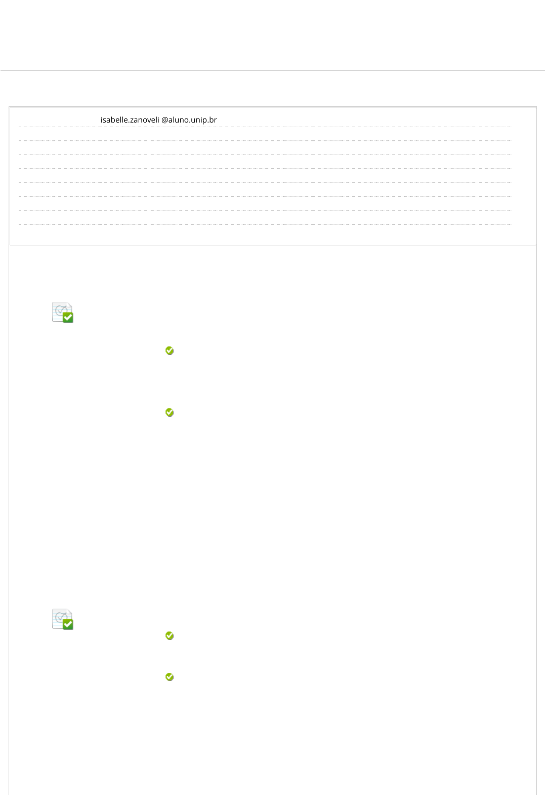25/04/2023, 21:34 Revisar envio do teste: QUESTIONÁRIO UNIDADE II – ... https://ava.ead.unip.br/webapps/assessment/review/review.jsp?attempt_id=_93613710_1&course_id=_277098_1&content_id=_3293783_1&retur… 1/5 Revisar envio do teste: QUESTIONÁRIO UNIDADE IIMAQUETE 7180-30_58701_R_E1_20231 CONTEÚDO Usuário isabelle.zanoveli @aluno.unip.br Curso MAQUETE Teste QUESTIONÁRIO UNIDADE II Iniciado 25/04/23 21:26 Enviado 25/04/23 21:34 Status Completada Resultado da tentativa 4 em 5 pontos Tempo decorrido 7 minutos Resultados exibidos Todas as respostas, Respostas enviadas, Respostas corretas, Comentários, Perguntas respondidas incorretamente Pergunta 1 Resposta Selecionada: c. Respostas: a. b. c. d. e. Comentário da resposta: É comum um pro�ssional da área de design de interiores trabalhar com mais de um programa de modelagem, já que eles se completam, oferecendo diferentes recursos. Para uma escolha adequada do programa é necessário levar em consideração: Praticidade no uso, variedade de recursos, resultado �nal e preço. Praticidade no uso, variedade de recursos, resultado parcial e preço. Praticidade no uso, gratuidade de recursos, resultado �nal e preço. Praticidade no uso, variedade de recursos, resultado �nal e preço. Praticidade no uso, quantidade de recursos, resultado parcial e preço. Praticidade no uso, variedade de recursos, resultado inicial e preço. Resposta: C Comentário: A gratuidade de recursos não é item de�nidor da escolha de um software, assim como o resultado inicial e parcial não são itens de avaliação para compreender a capacidade e qualidade �nal do resultado. Pergunta 2 Resposta Selecionada: b. Respostas: a. b. c. d. e. Comentário da resposta: A base de corte é um instrumento de confecção de maquete e tem como �nalidade: Proteger a superfície da mesa de trabalho. Nortear o corte do material. Proteger a superfície da mesa de trabalho. Servir de molde para o corte da peça. Guiar o instrumento de corte. Auxiliar a marcação do material. Resposta: B Comentário: A base de corte é um instrumento de confecção de maquete que tem como �nalidade proteger a superfície da mesa de trabalho, de forma que a lâmina do estilete ou de outro instrumento de corte não estrague a superfície da mesa ou bancada de trabalho. A base UNIP EAD BIBLIOTECAS MURAL DO ALUNO TUTORIAIS LABORATÓRIOSCONTEÚDOS ACADÊMICOS 0,5 em 0,5 pontos 0,5 em 0,5 pontos http://company.blackboard.com/ https://ava.ead.unip.br/webapps/blackboard/execute/courseMain?course_id=_277098_1 https://ava.ead.unip.br/webapps/blackboard/content/listContent.jsp?course_id=_277098_1&content_id=_3292064_1&mode=reset https://ava.ead.unip.br/webapps/portal/execute/tabs/tabAction?tab_tab_group_id=_10_1 https://ava.ead.unip.br/webapps/portal/execute/tabs/tabAction?tab_tab_group_id=_27_1 https://ava.ead.unip.br/webapps/portal/execute/tabs/tabAction?tab_tab_group_id=_47_1 https://ava.ead.unip.br/webapps/portal/execute/tabs/tabAction?tab_tab_group_id=_29_1 https://ava.ead.unip.br/webapps/portal/execute/tabs/tabAction?tab_tab_group_id=_64_1 https://ava.ead.unip.br/webapps/portal/execute/tabs/tabAction?tab_tab_group_id=_25_1 https://ava.ead.unip.br/webapps/login/?action=logout 25/04/2023, 21:34 Revisar envio do teste: QUESTIONÁRIO UNIDADE II – ... https://ava.ead.unip.br/webapps/assessment/review/review.jsp?attempt_id=_93613710_1&course_id=_277098_1&content_id=_3293783_1&retur… 2/5 de corte pode ser um produto industrializado e já comercializado no mercado ou, ainda, um pedaço de vidro ou folha de laminado. Pergunta 3 Resposta Selecionada: a. Respostas: a. b. c. d. e. Comentário da resposta: A maquete eletrônica é uma representação em três dimensões de um projeto de arquitetura ou design que tem como �nalidade: Reproduzir da forma mais real possível o projeto através dos efeitos de volume, profundidade, iluminação, textura de materiais, transparências e sombras. Reproduzir da forma mais real possível o projeto através dos efeitos de volume, profundidade, iluminação, textura de materiais, transparências e sombras. Reproduzir uma perspectiva irreal do projeto através dos efeitos de volume, profundidade, iluminação, textura de materiais, transparências e sombras. Reproduzir uma foto imaginária do projeto executado através dos efeitos de volume, profundidade, iluminação, textura de materiais, transparências e sombras. Reproduzir da forma mais irreal possível o projeto através dos efeitos de volume, profundidade, iluminação, textura de materiais, transparências e sombras. Reproduzir, através de impressão fotográ�ca, o projeto através dos efeitos de volume, profundidade, iluminação, textura de materiais, transparências e sombras. Resposta: A Comentário: A maquete eletrônica é uma representação em três dimensões de um projeto que tem como �nalidade reproduzir, da forma mais real possível, o projeto através dos efeitos de volume, profundidade, iluminação, textura de materiais, transparências e sombras. Não é uma perspectiva irreal, pois representa a realidade dos ambientes. Não é uma foto imaginária, pois é construída através de um projeto real e com �nalidade especí�ca. Não é uma impressão fotográ�ca, pois, antes disso, é uma maquete virtual, construída através de um software. Pergunta 4 Resposta Selecionada: d. Respostas: a. b. c. d. e. Comentário da resposta: A régua de alumínio é um instrumento de confecção de maquete e tem como �nalidade: Guiar o instrumento de corte. Nortear o corte do material. Proteger a superfície da mesa de trabalho. Servir de molde para o corte da peça. Guiar o instrumento de corte. Auxiliar a marcação do material. Resposta: D Comentário: A régua de alumínio é um instrumento de confecção de maquete que tem como �nalidade guiar o instrumento de corte, no caso um estilete, de forma a dar apoio no instrumento e permitir que a lâmina do estilete não deslize de form