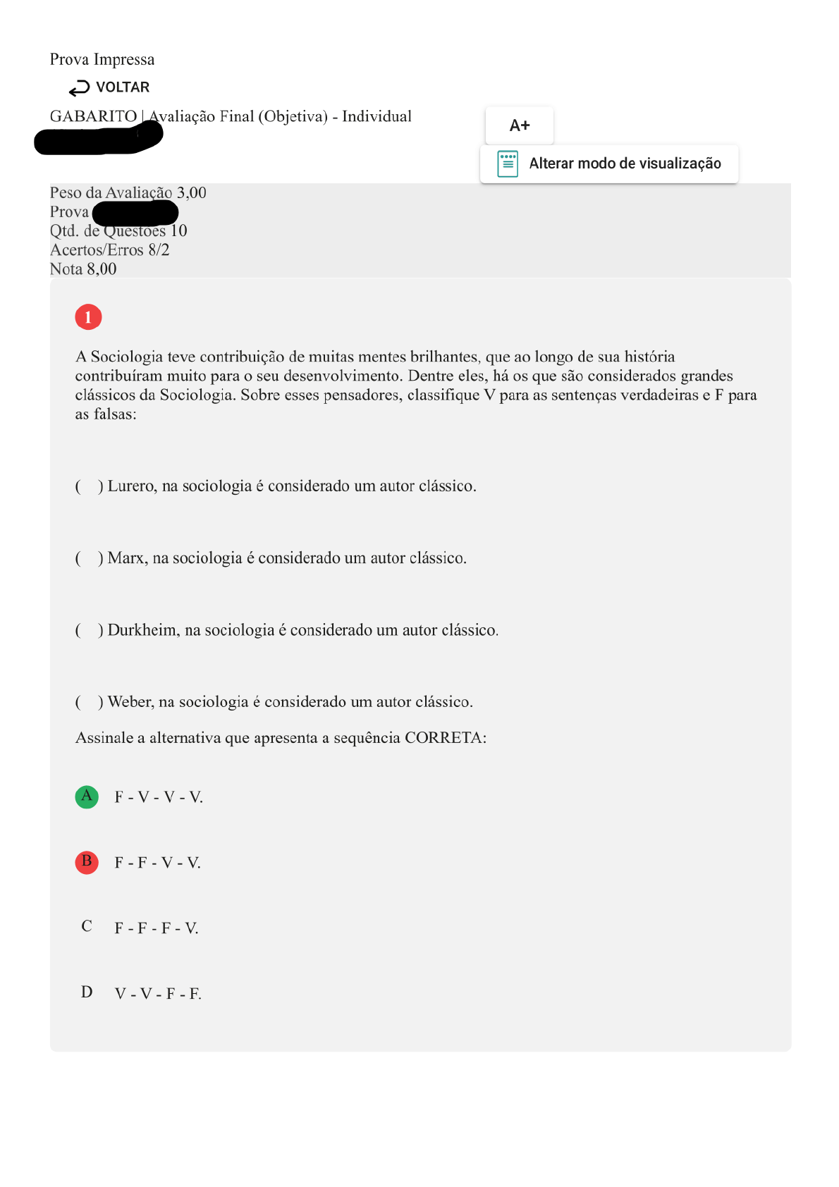 A Educação Básica é um direito público subjetivo de todo cidadão brasileiro. Uma das suas etapas apresenta nove anos de duração, sendo o período mais longo da Educação Básica, atendendo estudantes entre 6 e 14 anos. Assinale a alternativa CORRETA que apresenta a etapa descrita: A Ensino Fundamental. B Ensino Superior. C Educação Infantil. D Ensino Médio. A Interculturalidade tem sido indicada para ser inserida nos currículos tanto das escolas como das universidades, por apresentar uma visão mais equilibrada da história, da cultura e da sociedade dos mais diferentes países e culturas. Com relação às possibilidades do multiculturalismo, analise as sentenças a seguir: I- Reconhece as diferenças que existem entre os indivíduos e os grupos sociais. II- Assegura o reconhecimento e a representação das formas culturais minoritárias. III- Identifica que o indivíduo está condicionado e restrito a sua própria formação cultural. IV- Interpreta por meio de diversas e outras tendências culturais. Assinale a alternativa CORRETA: A As sentenças II e III estão corretas. B Somente a sentença III está correta. 2 3 C As sentenças I, II e IV estão corretas. D As sentenças I e III estão corretas. A BNCC divide-se em competências e habilidades que o aluno deve desenvolver ao longo de toda a Educação Básica. As definições desses conceitos são apresentadas no próprio documento. Sobre o conceito de competência, assinale a alternativa CORRETA: A Como a mobilização de conhecimentos (conceitos e procedimentos), atitudes e valores para resolver demandas complexas da vida cotidiana, do pleno exercício da cidadania e do mundo do trabalho. B Aquisição de condições extraordinárias. C Capacidade inata do sujeito livre. D Ser competitivo e proativo. Atualmente, tem se postulado que a diversidade cultural deve ser respeitada. De certa maneira, tem se almejado que as diferenças culturais não devem ser mais obstáculos para que os povos convivam de forma harmoniosa e consigam respeitar a cultura alheia nas suas peculiaridades. A que conceito se refere essa afirmação? A Multiculturalidade/interculturalidade. B Teocentrismo. C Etnocentrismo. 4 5 D Materialismo. Conforme explica Weber, os educadores simplesmente desejavam despertar e testar uma capacidade considerada como um dom de graça exclusivamente pessoal, pois não se pode ensinar nem preparar um carisma. Dentre os exemplos citados por Weber estão os mágicos (ou feiticeiros) e os heróis guerreiros. De qual educação, segundo Weber, estamos falando? A Educação Teológica. B Educação Capitalista. C Educação Carismática. D Educação Especializada. Alfred Kroeber (1876-1960), antropólogo americano, em seu artigo "O superorgânico" mostrou como a cultura atua sobre o homem, ao mesmo tempo em que se preocupou com a discussão de uma série de pontos controvertidos, pois suas explicações contrariam o conjunto de crenças populares. Iniciou, como o título de seu trabalho indica, com a demonstração de que graças à cultura a humanidade distanciou-se do mundo animal. Mais do que isto, o homem passou a ser considerado um ser que está acima de suas limitações orgânicas (LARAIA, 2001, p. 33). Com relação ao conceito de Cultura em Alfred Kroeber, classifique V para as sentenças verdadeiras e F para as falsas: ( ) A cultura, mais do que a herança genética, determina o comportamento do homem e justifica as suas realizações. ( ) A cultura é um processo acumulativo, resultante de toda a experiência histórica das gerações anteriores. Esse processo limita ou estimula a ação criativa do indivíduo. ( ) Adquirindo cultura, o homem passou a depender muito mais do aprendizado do que a agir através de atitudes geneticamente determinadas. Assinale a alternativa que apresenta a sequência CORRETA: 6 7 A F - F - F. B V - F - F. C V - V - V. D F - V - V. As organizações sociais estão intimamente ligadas ao cotidiano dos indivíduos, em especial, por estes serem, em geral, ligados a elas nas mais distintas relações sociais, como alunos, trabalhadores ou mesmo como consumidores. Assim compreendendo, como podemos classificar uma organização que busca apenas o lucro e a promoção do consumo exagerado, sem demonstrar consideração para com os seus colaboradores? A Organizações classificadas como salvadores, pois apenas com uma eficiente gestão estratégica a organização salva seus colaboradores. B Organizações classificadas como instrumento de libertação, pois possibilitam lucros para os colaboradores. C Organizações classificadas como instrumento de dominação, pois são instrumentos de exploração do ser humano. D Organizações classificadas como sistemas políticos justos, pois os colaboradores que lucram com a organização e pagam pesados impostos aos governantes. A Antropologia é o ramo do conhecimento que se dedica a compreender os mecanismos da vida humana em sociedade, no aspecto cultural. Esta expressão provém dos termos gregos 'Antropo' - Homem - e 'logia' - estudo. Seus estudos enfocam a comunicação humana, sua interação, como o ser se alimenta, compõe seus trajes, atua e responde aos estímulos culturais. Enfim, ela aborda a cosmovisão - a visão completa - de segmentos étnicos. Na atualidade, um tema muito recorrente em seus estudos é o etnocentrismo. Referente ao etnocentrismo, classifique V para as sentenças verdadeiras e F para as falsas: 8 9 ( ) Denota a maneira pela qual um grupo, identificado por sua particularidade cultural, constrói uma imagem do universo que favorece a si mesmo e os grupos minoritários em que se relacionam. ( ) Compõe-se de uma valorização positiva do próprio grupo, e um referência aos grupos exteriores marcada pela aplicação de normas do seu próprio grupo, ignorando, portanto, a possibilidade de o outro ser diferente. ( ) Sendo baseado numa preferência que não encontra uma validade racional, o etnocentrismo não é enco