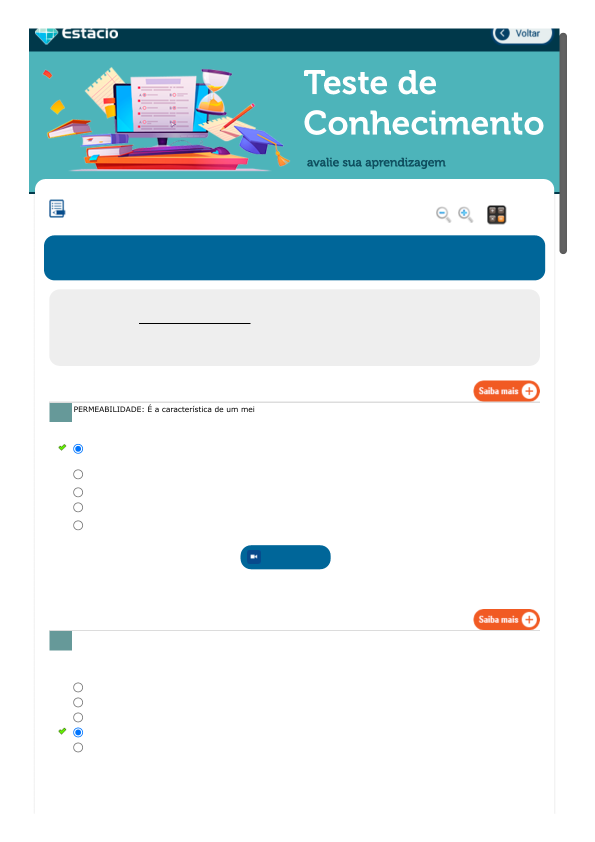29/10/2022 10:44 Estácio: Alunos https://simulado.estacio.br/alunos/ 1/1 Teste de Conhecimento avalie sua aprendizagem PERMEABILIDADE: É a característica de um meio poroso permitir um líquido fluir entre suas partículas com maior ou menor velocidade. Assinale a alternativa Verdadeira quanto ao entendimento desta definição: Antigamente considerávamos a água como uma substância inesgotável, mas atualmente sabemos que 97% dela é salgada e 2,7% estão indisponíveis, restando somente __________como água doce e boa parte dela ainda está imprópria devido a diversas formas de contaminação produzidas pelos seres humanos. Marque a resposta correta, referente a percentagem de água doce? INFRAESTRUTURA E SANEAMENTO AMBIENTAL Lupa Calc. CCE1569_A4_202002445688_V1 Aluno: LARISSA RIBEIRO GUIMARAES FARIA Matr.: 202002445688 Disc.: INFRAEST. SANEAM. AM 2022.2 (G) / EX Prezado (a) Aluno(a), Você fará agora seu TESTE DE CONHECIMENTO! Lembre-se que este exercício é opcional, mas não valerá ponto para sua avaliação. O mesmo será composto de questões de múltipla escolha. Após responde cada questão, você terá acesso ao gabarito comentado e/ou à explicação da mesma. Aproveite para se familiarizar com este modelo de questões que será usado na sua AV e AVS. 1. As características hidráulicas do lixo são importantes, por causa da migração incontrolada do chorume e do problema de estabilidade, pois a tensão efetiva que comanda a resistência depende da pressão neutra, que depende das tensões provocadas pela percolação de líquidos dentro do meio poroso, correspondente à massa de lixo. A condutividade hidráulica deve ser estudada simultaneamente em todas as camadas, mas uma primeira aproximação que pode ser sugerida é de 10 cm/s A compactação e as características do lixo são importantes, independentemente da idade. Independe do tempo necessário para que um líquido percorra os vazios de uma massa de solo, ou de resíduos. As normas para implantação de aterros de RSU exigem sua deposição em uma única camada, sistema de controle e coleta de chorume in situ. Gabarito Comentado 2. 0,4% 0,2% 0,5% 0,3% 0,1% Explicação: De acordo com o enunciado da pergunta se 97% dela é salgada e 2,7% estão indisponíveis, restará apenas 0,3% de água doce disponível javascript:voltar(); javascript:voltar(); javascript:duvidas('71015','6656','1','7192946','1'); javascript:duvidas('619312','6656','2','7192946','2'); javascript:diminui(); javascript:aumenta(); javascript:calculadora_on();