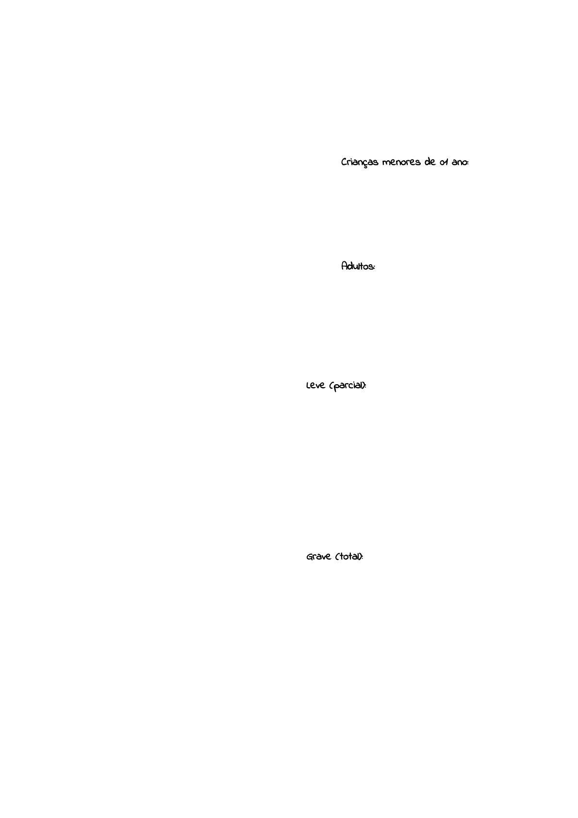 Obstrução de via aérea por corpo estranho (OVACE) ⬝ Entende-se por obstrução de vias aéreas toda situação que impeça total ou parcialmente o trânsito de ar ambiente até os alvéolos pulmonares. ⬝ A obstrução de vias aéreas superiores ocorre predominantemente em menores de 5 anos, sendo 65% abaixo de 1 ano. Os líquidos são responsáveis pela obstrução na maioria dos casos, porém pequenos objetos, como balões, alimentos (salsichas, castanhas e uvas), podem obstruir a via aérea em crianças. ⬝ No Brasil, a OVACE é a terceira maior causa de acidentes seguidos por morte, em crianças e lactentes. “A maioria das pessoas consegue ficar até 4 minutos sem oxigênio, antes de perder a consciência. ⬝ Sugerimos que os tapas nas costas sejam usados inicialmente em pacientes com FBAO e tosse ineficaz (recomendação fraca, certeza de evidência muito baixa) ⬝ Sugerimos que compressões abdominais sejam usadas em adultos e crianças com FBAO e tosse ineficaz, onde os tapas nas costas são ineficazes (recomendação fraca, certeza de evidência muito baixa) ⬝ Sugerimos que os socorristas considerem a extração manual de itens visíveis na boca (recomendação fraca, certeza de evidência muito baixa) ⬝ Sugerimos contra o uso de varreduras digitais às cegas em pacientes com FBAO (recomendação fraca, certeza de evidência muito baixa) ⬝ Sugerimos que as compressões torácicas sejam usadas em pacientes inconscientes com FBAO (recomendação fraca, certeza de evidência muito baixa) PENÇÃ Crianças menores de 01 ano: ⬝ Fazer aleitamento materno com o lactente na posição correta. ⬝ Não colocar para deitar logo após a mamada. Faz refluxo e pode ocorrer o engasgo. ⬝ Cuidado com objetos pequenos pela casa Adultos: ⬝ EVITAR falar e dar risadas durante a alimentação. Não é apenas falta de educação mas é também, proteção. ⬝ ALIMENTOS GRANDES Claficção Leve (parcial): ⬝ Existe passagem de ar, e a vítima é capaz de tossir e emitir sons. ⬝ Enquanto houver uma troca gasosa satisfatória, o socorrista deve encorajar a vítima a persistir na tosse espontânea e nos esforços respiratórios, pois a tosse promove a saída de ar dos pulmões, estimulando a expulsão do objeto que está causando a obstrução Grave (total): ⬝ Os sinais de obstrução grave das vias aéreas incluem: - Incapacidade de respirar, tossir e falar, cianose de lábios e extremidades, indicando que não há passagem de ar. - A vítima pode fazer o sinal universal da asfixia (segurando o pescoço com uma ou ambas as mãos) ou apenas apontar com as mãos voltadas para o pescoço, indicando que está engasgada e precisa de ajuda. Faixas etárias ⬝ 0 a 28 dias- neonato ou recém nascido ⬝ 29 dias a 01 ano- lactente ⬝ 01 até a puberdade- criança ⬝ Puberdade para cima- adulto OVACE parcial em adultos e crianças OVACE severo/total em adultos e crianças Engasgo severo/total = PARADA RESPIRATÓRIA Manobras de desobstrução - compressões abdominais - golpes dorsais - compressões torácicas PROPÓSITO DESSAS MANOBRAS ⬝ Estas manobras visam criar uma tosse artificial, aumentando a pressão intratorácica para desalojar o corpo estranho sólido da via aérea. ⬝ Compressão abdominal ou impulso abdominal eleva o diafragma e aumenta a pressão na via aérea, forçando a saída de ar dos pulmões, suficiente para criar uma tosse artificial e expelir um corpo estranho. ⬝ Devem ser efetuadas com força suficiente para criar uma tosse artificial. ⬝ Relatos de complicações incluem danos aos órgãos internos, portanto toda vítima que receber as manobras deve ser encaminhada para o hospital. ⬝ Caso o objeto seja visível, retirar em movimento de pinça ou de anzol sem realizar varredura, pois há risco de mobilizar o objeto. Conduta: OVACE total em adulto ou criança (acima de um ano) consciente ⬝ Iniciar com 05 golpes dorsais seguidos de 05 compressões abdominais. Conduta: adulto e criança (acima de um ano) inconsciente ⬝ Posicionar o paciente em decúbito dorsal ⬝ Pedir ajuda (192 + DEA) ⬝ 30 compressões torácicas ⬝ Abrir a via aérea e verificar se o objeto pode ser retirado em “pinça” Objeto retirado? * Se não: - 2 ventilações de resgate * Se sim: - 2 ventilações de resgate - avaliar respiração e pulso Vítima inconsciente ⬝ Se a vítima adulta com OVACE tornar-se inconsciente, o socorrista deve: - Apoiar a vítima cuidadosamente no chão - Imediatamente ativar o serviço médico de emergência (ou solicitar ajuda ou ligar pelo viva-voz). - Em seguida, iniciar a RCP. - Cada vez que o socorrista abrir as vias aéreas para realizar as ventilações, o mesmo deverá olhar para o interior da cavidade oral; se o corpo estranho estiver visível, deverá ser removido, evitando varredura digital às cegas e não retardando as manobras de RCP OVACE PARCIAL EM LACTENTES ⬝ Em caso de obstrução parcial das vias aéreas em lactentes, devemos posicioná-los em posição lateral de segurança, com o rosto voltado para o socorrista, ou de bruços com o abdome apoiado no antebraço do socorrista e com a cabeça levemente inclinada para baixo, e observar a evolução do quadro. Enquanto o lactente estiver chorando ou tossindo, isso significa que trata-se de uma obstrução parcial. Diferente de adultos e crianças maiores, não temos como incentivar a tosse em lactentes, por esse motivo devemos seguir as recomendações citadas anteriormente. Existem dois caminhos possíveis após um engasgo parcial: 1. O lactente consegue desengasgar sozinho e passa a respirar com maior facilidade, neste caso o socorrista deverá avaliar a necessidade de atendimento médico; 2. O lactente evolui para uma obstrução total/severa. Neste caso o socorrista deverá intervir e realizar as manobras de desengasgo que veremos a seguir. OVACE TOTAL EM LACTENTES ⬝ Em caso de lactente com obstrução total/severa de vias aéreas, no qual percebemos uma tosse inefetiva