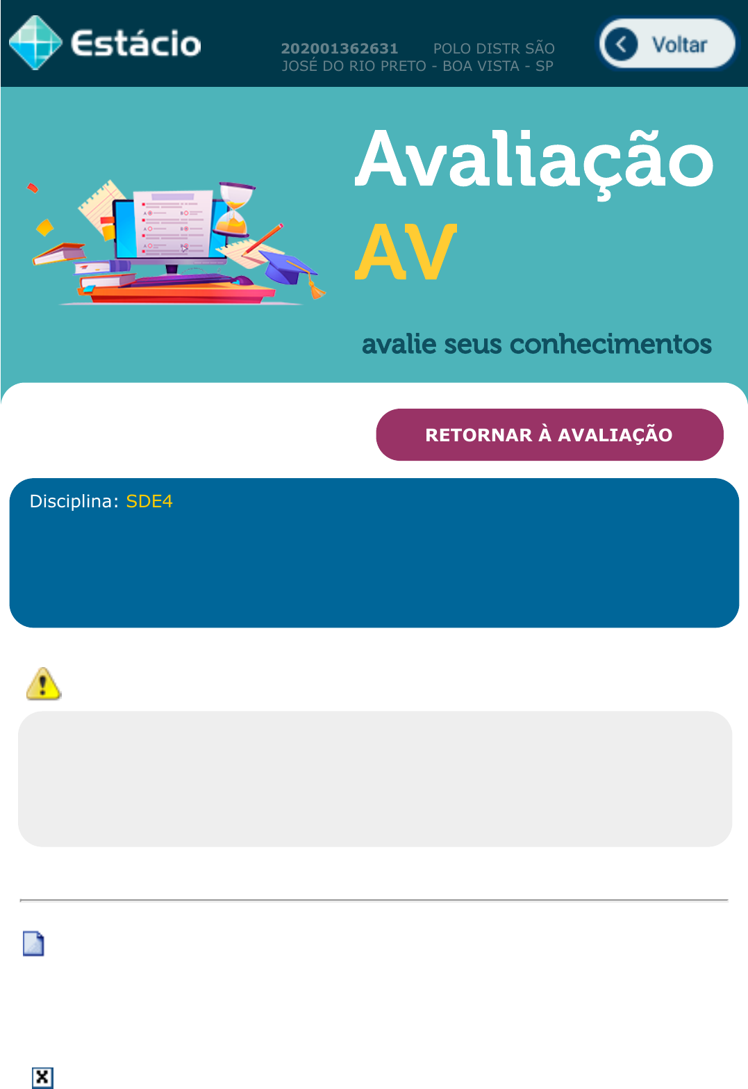 2. Caso você queira voltar à prova clique no botão "Retornar à