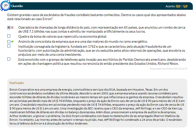 Dentre os casos apresentados abaixo, qual está relacionado ao caso Enron?