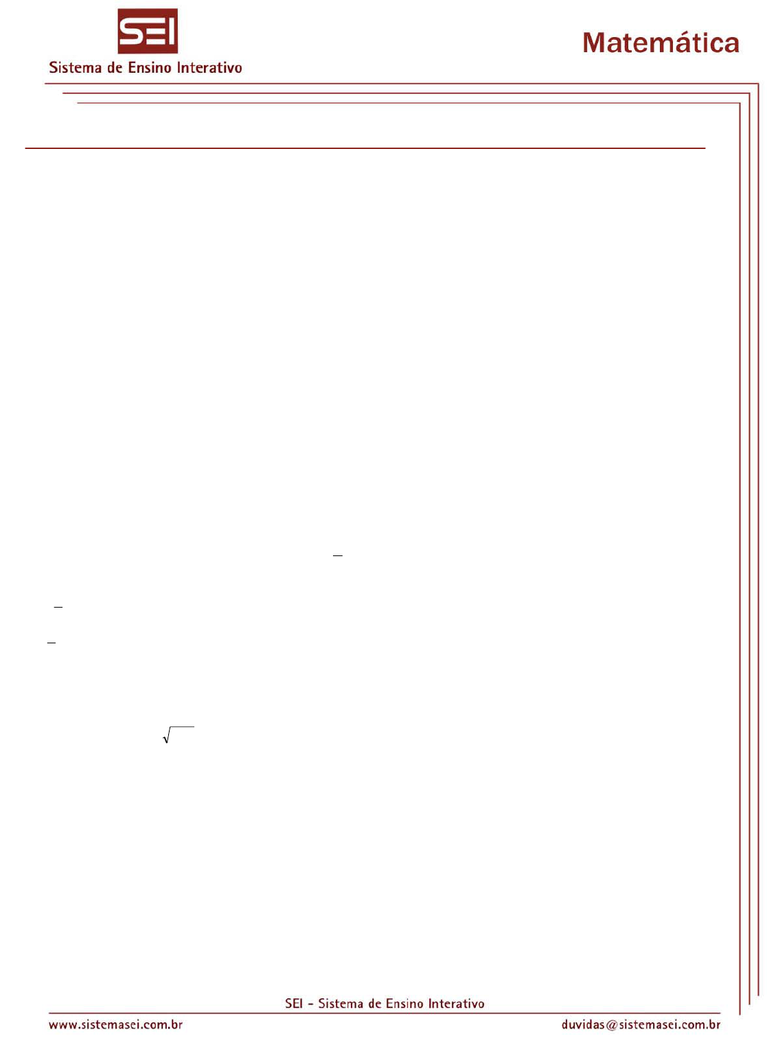 Equações - ITA 1. (ITA) Sobre a equação polinomial 2x4 + ax3 + bx2 + cx – 1 = 0, sabemos que os coefientes a, b, c são reais, duas de suas raízes são inteiras e distintas e 1/2– i/2 também é sua raiz. Então, o máximo de a, b, c é igual a (A) –1 (B) 1 (C) 2 (D) 3 (E) 4. 2. (ITA) É dada a equação polinomial(a + c + 2) x3 + (b + 3c + 1) x2 + (c – a) x + (a + b + 4) = 0 com a, b, c reais. Sabendo-se que esta equação é recíproca de primeira espécie e que 1 é uma raiz, então o produto abc é igual a (A) –2 (B) 4 (C) 6 (D) 9 (E) 12. 3. (ITA) Sendo 1 e 1 + 2i raízes da equação x3 + ax2 + bx + c = 0, em que a, b e c são números reais, então (A) b + c = 4 (B) b + c = 3 (C) b + c = 2 (D) b + c = 1 (E) b + c = 0. 4. (ITA) Se as soluções da equação algébrica 2x3 − ax2 + bx + 54 = 0, com coeficientes a, b ∈ IR, b ≠ 0, formam, numa determinada ordem, uma progressão geométrica, então, b a é igual a (A) –3. (B) – 3 1 . (C) 3 1 (D) 1. (E) 3. 5. (ITA) Considere a função f : Z \ {0} ? IR, f(x) = .1)3()9(3 x/15x2)x2/(11x22x +− ++− A soma de todos os valores de x para os quais a equação y2 + 2y + f(x) = 0 tem raiz dupla é: (A) 0 (B) 1 (C) 2 (D) 4 (E) 6. 6. (ITA) Seja k ∈ IR tal que a equação 2x3 + 7x2 + 4x + k = 0 possua uma raiz dupla e inteira x1 e uma raiz x2,distinta de x1. Então, (k + x1)x2 é igual a: (A) –6 (B) –3 (C) 1 (D) 2 (E) 8. 7. (ITA) Se a ∈ IR é tal que 3y2 – y + a = 0 tem raiz dupla, então a solução da equação 32x+1 – 3x + a = 0 é (A) log26 (B) –log26 (C) log36 (D) –log36 (E) 1 –log36. 8. (ITA) Sendo I um intervalo de números reais com extremidades em a e b, com a < b, o número real b – a é chamado de comprimento de I. Considere a inequação 6x4 – 5x3 – 7x2 + 4x < 0.A soma dos comprimentos dos intervalos nos quais ela é verdadeira é igual a (A) 4 3 (B) 2 3 (C) 3 7 (D) 6 11 (E) 6 7 . 9. (ITA) Suponha que os coeficientes reais a e b da equação x4 + ax3 + bx2 + ax + 1 = 0 são tais que a equação admite solução não real r com |r| ≠ 1. Das seguintes afirmações: I. A equação admite quatro raízes distintas, sendo todas não reais. II. As raízes podem ser duplas. III. Das quatro raízes, duas podem ser reais. é(são) verdadeira(s) (A) apenas I. (B) apenas II. (C) apenas III. (D) apenas II e III. (E) nenhuma. 10. (ITA) Suponha que a equação algébrica x11 + ∑ =+ = 10 1n 0 n n 0axa tenha coeficientes reais a0, a1, …, a10 tais que as suas onze raízes sejam todas simples e da forma β + iγn , em que β , γn ∈ IR e os γn , n =1, 2, ..., 11, formam uma progressão aritmética de razão real γ ≠ 0. Considere as três afirmações abaixo e responda se cada uma delas é, respectivamente, verdadeira ou falsa, justificando sua resposta: I. Se β = 0, então a0 = 0. II. Se a10 = 0, então β = 0. III. Se β = 0, então a1 = 0. 11. (ITA) Considere a equação x3 + 3x2 – 2x + d = 0, em que d é uma constante real. Para qual valor de d a equação admite uma raiz dupla no intervalo ]0,1 [ ? 12. (ITA) Dada a equação x3 + (m + 1) x2 + (m + 9)x + 9 = 0, em que m é uma constante real, considere as seguintes afirmações: I. Se m ∈ ]–6, 6[, então existe apenas uma raiz real. II. Se m = −6 ou m = + 6, então existe raiz com multiplicidade 2. III. , ∀ m∈ IR, todas as raízes são reais. Então, podemos afirmar que é (são) verdadeira(s) apenas (A) I (B) II (C) III (D) II e III (E) I e II. 13. (ITA) Sabendo que a equação x3 – px2 = qm, p, q > 0, q ≠ 1, m ∈ N, possui três raízes reais positivas a, b e c, então logq[abc (a2 + b2 + c2)a+b+c] é igual a (A) 2m + p logq p. (B) m + 2 p logq p. (C) m + p logq p. (D) m – p logq p. (E) m – 2 p logq p. 14. (ITA) A equação polinomial p(x) = 0 de coeficientes reais e grau 6 é recíproca de 2ª espécie e admite i como raiz. Se p(2) = – 8 105 e p(–2) = 8 255 , então a soma de todas as raízes de p(x) é igual a: (A) 10 (B) 8 (C) 6 (D) 2 (E) 1. Gabarito 1. C 2. E 3. C 4. B 5. C 6. B 7. D 8. D 9. D 10. V-V-F 11. 9 361510d −= 12. E 13. Questão errada 14. C