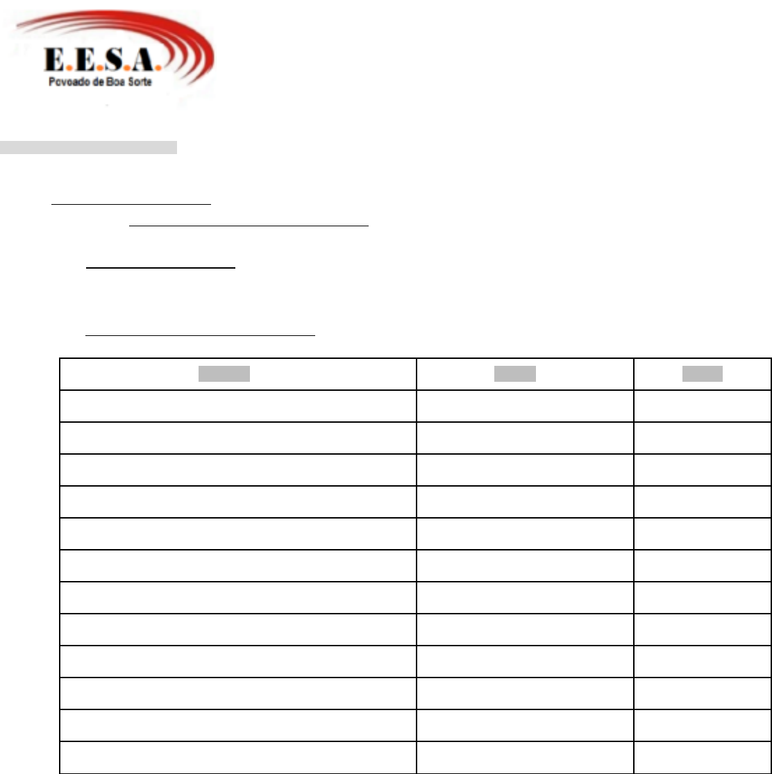 ESCOLA: ESTADUAL SANTO ANTONIO RUA: VARGEM GRANDE POVOADO: BOA SORTE CIDADE: SÃO JOÃO DO PARAISO PLANO DE DESENVOLVIMENTO INDIVIDUAL – PDI I. DADOS INSTITUCIONAIS 1. Data da elaboração: 20/04/2023 2. SRE: 22º DE MONTES CLAROS 3. Nome da escola: ESCOLA ESTADUAL SANTO ANTÔNIO 4. Código: 246255 5. Endereço: RUA VARGEM GRANDE 6. Etapas da Educação Básica oferecidas pela escola:( ) EF anos iniciais ( X ) EF anos finais ( ) EnsinoMédio 7. A Escola possui acessibilidade física: (X ) Sim ( ) Não 8. Possui Sala de recursos: ( X ) Sim ( ) Não – Escola encaminhada: 9. Diretor(a): MARIA JOSELMA FERREIRA SILVA 10.Responsáveis pela elaboração PDI: Sidineia Alves de Sousa Santos – 1412390-5 CARGO NOME MASP Especialista Edna Graciela Pereira 870776-2 Professor de Apoio (quando houver) Sidineia Alves de Sousa Santos 1412390-5 Guia Intérprete (quando houver) - - TILS (quando houver) - - Professor de Sala de Recursos (quando houver) Edna Graciela Pereira 870776-2 Regente(s) de turma/aula (Geografia) Paula Eliane Bandeira Barbosa 1233052-8 Regente(s) de turma/aula( Ciências) Cosme Miranda de Sousa 1180155-2 Regente(s) de turma/aula( Artes) Flávio Cardoso Figueiredo 1084603- 8 Regente(s) de turma/aula (Português) Francisca de Jesus Gomes Braga 966483-0 Regente(s) de turma/aula (Ens. Religioso) Mailson Kleber S. dos Santos 1369412-0 Regente(s) de turma/aula (Matemática) Elisângela Ferreira de M. Sena 1192143-4 Regente(s) de turma/aula ( Ed. Fisica) Mailson Kleber S. dos Santos 1369412-0 Regente(s) de turma/aula ( História) Carmem Lúcia de Fátima Silva 592171-3 Regente(s) de turma/aula ( lingua Inglesa) inglês Edinéia Ribeiro de Oliveira 1423743-2 II. DADOS DO(A) ESTUDANTE 1. Nome: HENRIQUE GABRIEL PEREIRA SOUSA 2. Data de nascimento: 13/11/2010 Idade: 12 ANOS 1. Responsável pelo estudante/parentesco: MARIA ELIZABETH PEREIRA DOS SANTOS (MÃE) E CARLUCIO SOARES DE SOUSA (PAI) 3. Ano de escolaridade: 7º ANO 4. Deficiência informada: HIPERATIVIDADE E DÉFICIT DE APRENDIZAGEM 5. É acompanhado por um profissional fora da escola? SIM 6. Qual especialidade? Neurologista 7. Faz uso contínuo de medicamento?Para quê?.Causa efeitos colaterais?Quais?NÃO, 8. Possui alguma necessidade específica ATENDIMENTO COM PSICOPEDAGÓGICO ESPECIALIZADO 9. 10-Tipo de atendimento: ( )GuiaIntérprete ( ) Professor deLIBRAS ( ) IntérpretedeLIBRAS ( x ) Sala de Recursos ( x ) Professor de ACLTA ( )Outro.Qual? 10. Utiliza recurso de Acessibilidade? Nao. Descreva: NÃO Como gosta de se divertir? BRINCAR DE CARRINHO E JOGAR NO CELULAR III. CONSIDERAÇÕES DA FAMILIA: Nasceu com nove meses de parto normal, foi uma gestação planejada. A criança começou a falar com 2 anos de idade, suas primeiras palavras foram papai e mamãe. Ele tinha uma pronúncia muito errada, precisou levá-la em um fonoaudiólogo que depois de fazer algumas sessões conseguiu corrigir. Engatinhou por pouco tempo, porque logo começou a andar, tem trauma de sangue quando vê chora muito, não tem horário de almoço, sua alimentação preferida é carne, pois não gosta de verduras. Segundo a mãe ele tem pesadelo à noite, quando isso a acontece vai até o quarto acordá-lo.Ele não gosta de ser contrariado quando isso acontece dar birra. A mãe disse que foi informada e orientada sobre as dificuldades do filho na escola, a mesma optou em levar o filho a um especialista para ter uma segunda opinião sobre as dificuldades que o mesmo vinha apresentando em se desenvolver na aprendizagem, o especialista orientou um acompanhamento psicopedagógico a fim de trabalhar o processo de alfabetização com o mesmo. IV. HISTÓRICO DE ESCOLARIZAÇÃO 1. Com que idade o aluno começou a frequentar a escola? 7 anos 2. Onde e como foi o percurso escolar? Entrou já na primeira série do Ensino Fundamental 3. Frequenta sala de recursos? sim 4. Qual a frequência do atendimento(dia/horas)? 02 vezes semanais, 2 horas. 5. Frequenta EducaçãoIntegral? Não V. LIMITES E AGRESSIVIDADE ( )Apresenta Auto-agressividade ( ) Apresenta indisciplina ( )Apresenta Heteroagressividade (X) Apresenta desobediência às regras e/ou combinados (X) Apresenta apatia OBS: MAIS OU MENOS VI. ASPECTOS PSICOMTORES OBSERVADOS: ASPECTOS PSICOMOTORES APRESENTA APRES. COM AJUDA NÃO APRESENTA NÃO OBSERVAD O Esquema corporal – Conhece as partes e funções do corpo? Nomeia as partes do corpo? X FUNÇÕES DO CORPO Consciência corporal –Sabe do uso específico de cada membro do corpo para a realização deatividades,mesmo nos casos em que hajal imitações de movimento. Ex.: escreve com adaptação utilizando os pés, mastem conhecimento que o membro comumente utilizado para esta atividade é a mão. X Expressão corporal – Realizar gestos expressivos (susto, grito, tristeza, raiva)? X Imagem corporal - Relação do próprio corpo com o espaço e as pessoas. Ex.: olhar no espelho eperceber o contorno do corpo. X Tônus Hipertônico – Apresenta rigidez muscular elevada? X Tônus Hipotônico - Apresenta flacidez muscular elevada? X Coordenação motora ampla – Controla os movimentos amplos do corpo? Ex.: correr, andar, rolar,pular, engatinhar, agachar. X Coordenação motora fina – Controla os pequenos músculos para exercícios refinados? Ex.:recortar, colar, encaixar, pintar, pentear, jogar bola. X Equilíbrio dinâmico – Ex.: andar na ponta dos pés, correr com copo cheio de água na mão, andarde joelhos. X Equilíbrio estático – Sustenta-se em diferentes situações? Ex.: ficar em pé parado com os olhos fechados, ficar em pé sobre um pé, ficar de cócoras. X Lateralidade – Tem capacidade motora de percepção integrada dos dois lados do corpo (direitoe esquerdo)? X Percepção gustativa – Tem a capacidade de distinguir sabores? Ex.: reconhecer alimentos pelogosto, distingue e expressa do que determinado alimento é feito. X Percepção olfativa – Tem a capacidade de distinguir odores? Ex.: discriminação de duas frutas ou mais, identificar od