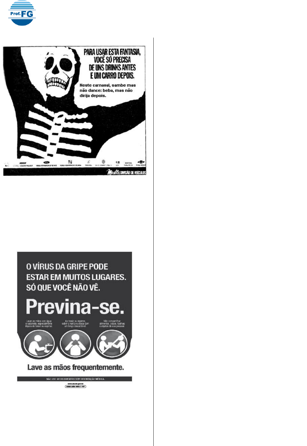 D18 - Reconhecer o efeito de sentido decorrente da escolha de uma determinada palavra ou expressão. 1 Leia o texto para responder a questão abaixo: In: O GLOBO. Rio de Janeiro. 22 de fevereiro de 1990 A expressão “sambe mas não dance” significa (A) Divirta-se sem se expor ao perigo. (B) Brinque muito no carnaval. (C) É perigoso dirigir fantasiado. (D) É preciso beber para usar fantasia. ------------------------------------------------------------ (SAERS). Leia o texto abaixo e responda. Disponível em: <http://www.portal.saude.gov.br/portal/saude>. Acesso em: 28 mar. 10. Nesse texto, a palavra “Previna-se” indica A) um elogio. B) um protesto. C) uma ordem. D) uma orientação. ------------------------------------------------------------ (SAVEAL).Leia o texto e responda. Camelô caprichado “Senhoras, senhoritas, cavalheiros! — estudantes, professores, jornalistas, escritores, poetas, juízes — todos os que vivem da pena, para a pena, pela pena! – esta é a caneta ideal, a melhor caneta do mundo (marca Ciclone!), do maior contrabando jamais apreendido pela Guardamoria! (E custa apenas 100 cruzeiros!). “Esta é uma caneta especial que escreve de baixo para cima, de cima para baixo, de trás para diante e de diante para trás! — (Observem!) Escreve em qualquer idioma, sem o menor erro de gramática! (E apenas por 100 cruzeiros!). “Esta caneta não congela com o frio nem ferve com o calor; resiste à umidade e pressão; pode ir à Lua e ao fundo do mar, sendo a caneta preferida pelos cosmonautas e escafandristas. Uma caneta para as grandes ocasiões: inalterável ao salto, à carreira, ao mergulho e ao vôo! A caneta dos craques! Nas cores mais modernas e elegantes: verde, vermelha, roxa... (apreciem) para combinar com o seu automóvel! Com a sua gravata! Com os seus olhos!... (Por 100 cruzeiros!) “Esta caneta privilegiada: a caneta marca Ciclone, munida de um curioso estratagema, permite mudar a cor da escrita, com o uso de duas tintas, o que facilita a indicação de grifos, títulos, citações de frases latinas, versos e pensamento inseridos nos textos em apreço! A um simples toque, uma pressão invisível (assim!) a caneta passa a escrever em vermelho ou azul, roxo ou cor-de-abóbora, conforme a fantasia do seu portador. (E custa apenas 100 cruzeiros!). “Adquirindo-se uma destas maravilhosas canetas, pode-se dominar qualquer hesitação da escrita: a caneta Ciclone escreve por si! Acabaram-se as dúvidas sobre crase, o lugar dos pronomes, as vírgulas e o acento circunflexo! Diante do erro, a caneta pára, emperra – pois não é uma caneta vulgar, de bomba ou pistão, mas uma caneta atômica, sensível, radioativa, (E custa apenas 100 cruzeiros: a melhor caneta, do maior contrabando). (MEIRELES, Cecília. Escolha o seu sonho. 2ª ed. Rio de Janeiro. Record, 1996. p.22-23) A expressão “todos os que vivem da pena, para pena, pela pena”, refere-se a: (A) todos aqueles que querem uma caneta colorida. (B) todos aqueles que têm o sentimento de pena. D18 - Reconhecer o efeito de sentido decorrente da escolha de uma determinada palavra ou expressão. 2 (C) todos aqueles que têm a escrita como ofício. (D) todos aqueles que compram em camelôs. ------------------------------------------------------------ Leia o texto abaixo. PAISAGEM URBANA São cinco horas da manhã e a garoa fina cai branca como leite, fria como gelo. Milhões de gotinhas d’água brilham em trilhos de ferro. “Bom dia”, diz Um Homem para o Outro Homem. “Bom dia, por quê?”, pensa o Outro, olhando para o Um. Um Homem quieto e parado é um poste, que espera o trem na estação quase vazia. [...] A máquina aparece na curva e vem lenta, grave, forte, grande, imensa. Para a máquina, desce um branco, uma mulata, o gordo e o magro, dois meninos maluquinhos. Chegada de uns, partida de outros. No meio de um cheiro áspero de fumaça e óleo diesel, o Outro Homem entra no trem. Um homem continua um poste. Rígido. Concreto. E é só quando uma moça desce a escada do vagão carregando uma mala, cabelo preso com fita e olhar de busca, que o homem- poste tem um sobressalto. Os olhares se encontram. O trem vai e os olhares vêm. O mundo é assim... Outro Homem se foi. Um Homem está feliz. FERNANDES, Maria ; HAILER, Marco Antônio. Alp novo: Análise, Linguagem e Pensamento. V. 4. São Paulo: FTD, 2000. p. 152. * Adaptado: Reforma Ortográfica. Ao usar a expressão “homem-poste”, o autor sugere que o homem está A) cansado de esperar o trem. B) desligado da realidade. C) observando o movimento. D) preocupado com a vida. ------------------------------------------------------------ (SALTO – TO/2011). LEIA O TEXTO A PRINCESA E A RÃ Era uma vez... numa terra muito distante...uma princesa linda, independente e cheia de auto-estima. Ela se deparou com uma rã enquanto contemplava a natureza e pensava em como o maravilhoso lago do seu castelo era relaxante e ecológico... Então, a rã pulou para o seu colo e disse: linda princesa, eu já fui um príncipe muito bonito. Uma bruxa má lançou-me um encanto e transformei-me nesta rã asquerosa. Um beijo teu, no entanto, há de me transformar de novo num belo príncipe e poderemos casar e constituir lar feliz no teu lindo castelo. A tua mãe poderia vir morar conosco e tu poderias preparar o meu jantar, lavar as minhas roupas, criar os nossos filhos e seríamos felizes para sempre...Naquela noite, enquanto saboreava pernas de rã sautée, acompanhadas de um cremoso molho acebolado e de um finíssimo vinho branco, a princesa sorria, pensando consigo mesma: — Eu, hein?... nem morta! Luis Fernando Veríssimo Na frase “— Eu, hein?... nem morta”!, a expressão destacada sugere que a princesa (A) pensará sobre a proposta da rã. (B) nunca aceitará a proposta da rã. (C) depois do jantar aceitará a proposta da rã. (D) um dia casará com a rã. ------------------------------------------------------------ (SALTO – 2011). LEIA O TEXTO. Re