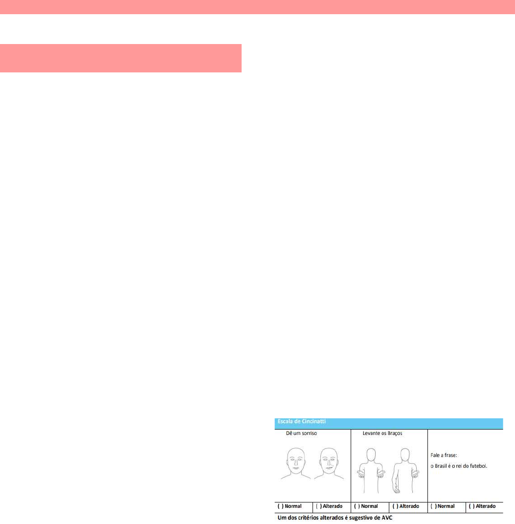 OFICINA 3 – LINHA DE CUIDADO DE ACIDENTE VASCULAR ENCEFÁLICO (AVE) NAS REDES DE ATENÇÃO À SAÚDE 1. EPIDEMIOLOGIA, FATORES DE RISCO E SINAIS CLÍNICOS DO AVC EPIDEMIOLOGIA No ano de 2020, dados do SIM – Sistema de Informações sobre Mortalidade, do Ministério da Saúde – DATASUS, mostraram 99.010 mortes por AVC no Brasil (incluindo dados de infarto cerebral, o AVC isquêmico, AVC hemorrágico, hemorragia subaracnoidea e AVC não-especificado como isquêmico ou hemorrágico De acordo com outro registro, o portal de Transparência do Registro Civil, mantido pela ARPEN Brasil (Associação Nacional dos Registradores de Pessoas Naturais), o número de óbitos por AVC no Brasil foi de 101.965, em 2019 e 102.812 em 2020, números parecidos com os dados oficiais do SUS, que podem variar um pouco de acordo com a metodologia aplicada nos critérios de busca. O AVC, de acordo com este mesmo banco de dados, já matou no ano de 2022, de 1º de janeiro até 13 de outubro, 87.518 brasileiros. O número equivale à média de 12 óbitos por hora, ou 307 vítimas fatais por dia, tornando o AVC novamente a principal causa de morte no país. No mesmo período, o infarto, por exemplo, vitimou 81.987 pessoas, e a Covid-19, 59.165 cidadãos. Portanto, o AVC, que até meados da década de 2010- 2015 era a primeira causa de morte no nosso país, passou para o segundo lugar, de forma similar ao que vemos no resto do mundo e em países mais desenvolvidos, e novamente em 2022, embora com dados menos oficiais (SIM x Registro Civil), retoma a posição de primeiro lugar em mortalidade no nosso país. Sua incidência é maior após o 65 anos, dobrando a cada década após os 55 anos de idade Apesar nos declínios das taxas de mortalidade no Brasil, o AVC continua sendo a primeira causa de morte e incapacidade no país. Dados do estudo prospectivo nacional indicaram uma incidência anual de 108 casos por 100 mil habitantes o AVC acomete principalmente indivíduos com mais de 50 anos, sendo que os homens são acometidos 19% a mais do que as mulheres. o AVC é uma doença que afeta predominantemente idosos. E no Brasil afeta principalmente mulheres idosas o AVC atinge 16 milhões de pessoas no mundo a cada ano. Dessas, seis milhões morrem A prevalência aumentou com a idade, nos menos escolarizados, residentes da zona urbana sem diferenças pela cor da pele auto-declarada. O grau de incapacidade pós-AVC não foi estatisticamente diferente segundo sexo, raça, nível de educação ou área de moradia. SINAIS CLINICOS Quadro clínico sugestivo de AVC Início súbito: • Fraqueza ou dormência em um lado do corpo • Confusão • dificuldade para falar ou entender • Dificuldade para enxergar com um ou ambos os olhos • Dificuldade para andar • tontura ou incoordenação • Cefaleia intensa e súbita sem causa aparente. Os ataques isquêmicos podem manifestar-se também com alterações na memória e na capacidade de planejar as atividades diárias, bem como a negligência. Neste caso, o paciente ignora objetos colocados no lado afetado, tendendo a desviar a atenção visual e auditiva para o lado normal, em detrimento do afetado. Aos sintomas do acidente vascular hemorrágico intracerebral podem-se acrescer náuseas, vômito, confusão mental e, até mesmo, perda de consciência. O acidente vascular hemorrágico, por sua vez, comumente é acompanhado por sonolência, alterações nos batimentos cardíacos e na freqüência respiratória e, eventualmente, convulsões. PREVENÇÕES DO AVC PREVENÇÃO PRIMARIA Fatores de risco não modificáveis: Apesar de não podermos atuar diretamente sobre os fatores de risco não modificáveis, o seu conhecimento é importante, pois eles podem agravar o risco e devem ser analisados com os fatores modificáveis na extrapolação do risco do paciente e planejamento dos cuidados a serem tomados. Os principais são: Idade: o AVC é classicamente uma doença do idoso, mas pode incidir em qualquer idade. Tanto no isquêmico como no hemorrágico, o risco aumenta progressivamente com a idade, dobrando a cada década depois dos 55 anos de idade. Sexo: o AVC acomete ambos os sexos, sendo na média mais prevalente em homens, exceto na faixa etária dos 35 aos 44 anos e acima dos 85 Raça/etnia: negros têm maior risco de todos os tipos de AVC, comparativamente aos brancos, em especial na faixa de jovens negros, quanto ao risco de hemorragia cerebral e hemorragia subaracnoidea. Genética: história familiar positiva ocorre em aproximadamente 30% dos casos; causa cardioembólica é mais prevalente quanto à hereditariedade e as mulheres são mais sensíveis do que os homens quanto ao risco genético.15,16 Rastreamento genético sistemático para a prevenção primária do AVC não é recomendado. Tratamento de determinadas doenças genéticas (exemplo: doença de Fabry) pode ser razoável, mas tem eficácia discutível e não se tem notado redução do risco de AVC. A pesquisa por métodos não invasivos de eventual aneurisma não roto em parentes com mais de dois primeiros graus de parentesco, de pacientes com hemorragia subaracnoidea aneurismática, pode ser razoável Fatores de risco modificáveis Hipertensão arterial (HA): É o principal FR para o AVC, tanto isquêmico como hemorrágico. O risco é alto, etiologicamente significante, independente, contínuo, tem relação direta com a intensidade e ocorre em todas as populações, raças e etnias. Quando confirmada, a HA deve ser imediatamente combatida, inicialmente com medidas não farmacológicas; se não houver resultado satisfatório, deve então ser introduzida medicação específica A pressão arterial (PA) sistólica deve mantida abaixo de 140 mmHg e a diastólica abaixo de 90 mmHg nos casos de pacientes com diabetes ou insuficiência renal, a PA deve ser mantida menor que 130 x 80 mmHg Os indivíduos com pré-hipertensão arterial (PA sistólica entre 120 mmHg e 139 mmHg ou PA diastólica entre 80 mmHG e 89 mmHg d
