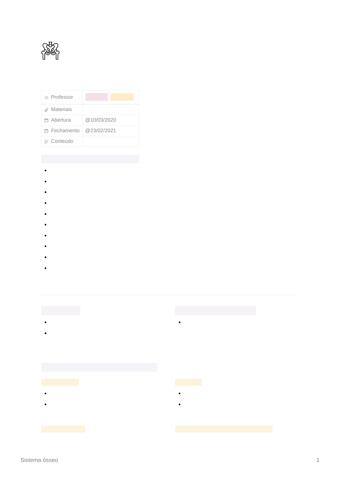 Sistema ósseo 1 Sistema ósseo Professor Robson Rodrigo Materiais Abertura Fechamento Conteúdo Sistema ósseo Questões de aprendizagem Qual é a composição dos ossos? Quantos ossos tem o corpo humano? Quais são os principais ossos do corpo? Quais são os tipos de fraturas? Como é o processo de formação e remodelação dos ossos? Qual é a nomenclatura e posicionamento relativo nos ossos? Quais são os tipos de esqueleto? Quais as funções dos tipos de ossos? Como fazer o portfólio de matriz? Onde realizar as pesquisas de materiais confiáveis? Sistema esquelético Osteologia Estudo dos ossos. Ossos são definidos como estruturas resistentes, de forma variável, que, em conjunto, constituem o esqueleto. Conceito de esqueleto Conjunto de ossos e cartilagens que se interligam para formar o arcabouço de corpo do animal e desempenhar várias funções. Funções do sistema esquelético Sustentação Sustenta tecidos moles. Fornece pontos de fixação para os tendões da maioria dos músculos. Proteção Protege muitos órgãos internos de lesões. Ex.: Caixa torácica - Coração e pulmões; Coluna vertebral - medula espinal Movimentação Armazenamento de triglicerídios @10/03/2020 @23/02/2021 Sistema ósseo 2 Tracionados por músculos, os ossos atuam na movimentação do corpo. Armazenamento de substâncias Armazenamento de diversos minerais, especialmente cálcio e fósforo, que contribuem para a resistência dos ossos. Sob ação de hormônios, os ossos liberam ninerais na corrente sanguínea de acordo com a exigência do corpo. A medula óssea amarela é composta principalmente por células adiposas. Os triglicerídeos armazenados atuam como reserva de energia. Produção de células sanguíneas Realização da hematopoese no interior de ossos que possuem medula óssea vermelha, isto é, produção de eritrócitos, leucócitos e plaquetas. Obs.: Em recém-nascidos, toda medula óssea é vermelha e está envovida na hematopoese. Com o avanço da idade, ocorre diminuição da matriz óssea vermelha e consequente aumento da matriz óssea amarela. Divisão do esqueleto Esqueleto Axial Porção mediana, forma o eixo do corpo. Composta pelos ossos da cabeça, do pescoço e do tronco (tórax e abdome). Função de proteção visceral. Principalmente medula óssea vermelha. Esqueleto apendicular Formada pelos membros. Função de movimentação. Principalmente medula óssea amarela. Obs.: A união entre estas duas porções se faz através dos cíngulos: Cíngulo do membro superior: Composto pela clavícula e pela escápula. Cíngulo do membro inferior: Composto pelos ossos do quadril. 💡 Obs.: Ossículos da audição (martelo, bigorna e estribo) não são considerados parte do esqueleto axial ou apendicular, mas sim como um grupo separado de ossos. Apesar disso, são tratados por conveniência como parte do esqueloto axial! Classificação dos ossos Osso longo Sistema ósseo 3 Comprimento consideravelmente maior que largura e espessura. Típicos do esqueleto apendicular. Diáfise: parte principal do osso, longa e cilíndrica. Epífises: são as extremidades do osso (proximal e distal). Metáfises: ponto de união entre epífise e diáfise. Em um osso em crescimento, são encontrados nas metáfises uma lâmina epifisial, que corresponde a uma fina camada de cartilagem hialina que permite o crescimento longitudinal do osso. Quando o crescimento longitudinal cessa, a cartilagem é substituida por osso e a estrutura resultante passa a se chamar linha epifisal. Cartilagem articular: fina camada cartilaginosa (hialina), que recobre parte da epífise que faz contato com outro osso. Diminui atrito e abrsorve choques. Possui reparo (em caso de lesão) limitado, uma vez que não possui pericôndrio associado. Periósteo: camada rígida de tecido conjuntivo denso não modelado que reveste os ossos em partes que não são recobertas pela cartilagem articular. Contém células formadoras do tecido ósseo, o que permite crescimento em espessura (crscimento por aposição). Além disso, protege o osso, auxilia no reparo de fraturas, ajuda na nutrição do tecido ósseo e serve como ponto de fixação para ligamentos e tendões. Camada em contato com osso : osteogênica. Cavidade medular: espaço interno da diáfise. No adulto, aloja a medula óssea amarela. Endósteo: fina membrana que reveste a cavidade medular. Contém uma fina camada de células formadoras de ossos e uma pequena quantidade de tecido conjuntivo. Ex.: Fêmur, úmero, rádio, ulna, tíbia, fíbula, falanges, metacarpais, metatarsais... Obs.: desprovido de periósteo, o osso deixa de ser nutrido e morre. 💡 A sensibilidade do osso está no perióesteo, já que é ricamente enervado. Osso plano Comprimento e largura equivalentes e predominante sobre a espessura. Ex.: Escápula, ossos do crânio, esterno. Lâmina x Díploe Díploe: osso esponjoso delimitado por lâminas quase paralelas de tecido ósseo cortical. Osso curto Possui equivalência das três dimenssões Ex.: Ossos do carpo (pisiforme é sesamoide) e do tarso (calcâneo é irregular) Sistema ósseo 4 Osso irregular Apresenta morfologia complexa que não se enquadra em classificações anteriores Ex.: Vértebras, alguns ossos da face, calcâneo. Osso pneumático Apresenta cavidade de volume variável, revestidas de mucosa e contendo ar. Ex.: Seio do maxilar. Ossos sesamóides Desenvolvem-se na substância de certos tendões (Intratendíneos) ou da cápsula fibrosa que envolve certas articulações (periarticulares). Podem ser extranumerários. Protegem tendões de desgaste excessivo. Ex.: Patela (osso sesamóide intratendíneo), pisiforme. Osso alongado Classificação especial para costelas. Não possuem canal medular. Ossos suturais Tipo adicional de osso. São pequenos ossos localizados dentro das suturas (articulações) de determinados ossos do cranio. Quantidade varia de pessoa para pessoa. Tipos de substância óssea Compacta (cortical) Lamínulas do tecido óss