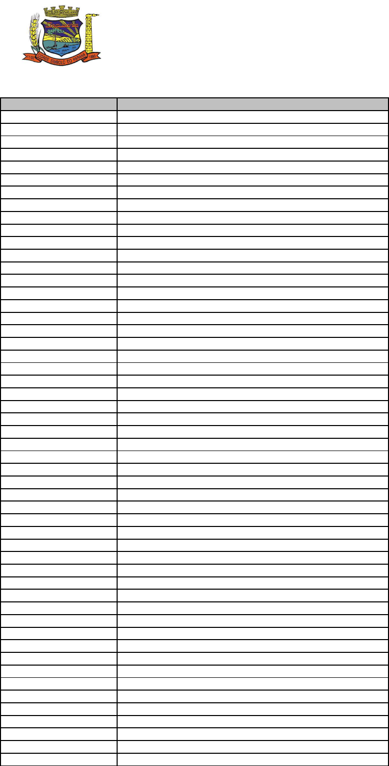 Prefeitura Municipal de Araucária Concurso Público - Edital nº 45/2011 Edital de Prosseguimento nº 071/2012 Relação Definitiva dos Candidatos ao Cargo de Técni co em Radiologia PROTOCOLO NOME DO CANDIDATO 001429 ADAIANE APARECIDA LOPATA NEVES 000207 ADELINE BUDINHESKI KWIATKOWSKI HUK 000867 ADEMAR DA SILVA 002020 ADILSON CECCON 002085 ADRIANA CUNHA LIMA 000267 ADRIANA GRAFF 000192 ADRIANA SCHIEFELBEIN 000256 ADRIANE MARCELLE MARQUES MATTOS 001579 ADRIANO DA SILVEIRA 000506 ADRIANO RIPCA LEAL 000014 ALBERT EYDY ROCHA DE LIMA SANTOS 001483 ALESSANDRA BORNATTO OLIVEIRA DIONISIO 000145 ALEXANDRA SILVEIRA MORTOLA 002073 ALEXANDRE DE SOUZA ALVES 000391 ALFREDO KAVITSKI NETO 002237 ALISON NICO DLUGOSZ 002113 AMANDA STERN BARRETO TRAPP 001145 AMELIA OPUCHKEVITCH 001216 ANA CLAUDIA BUWAI 001975 ANA CRISTINA CANDIDA BARBOSA 002638 ANA PAULA PEREIRA BARROS NOVINSKI 001707 ANDERSON RODRIGO DOS SANTOS MATTOS 000404 ANDRE CAIRO CENKO 001222 ANDRE FELIPE RIBEIRO CIPRIANO 000450 ANDRIELLY VOSS CARVALHO 001914 ANGELA APARECIDA ROCHA DE SOUZA 000320 ANGELITA FRONTCK 000601 ANTONIO DE SOUZA 001768 ANTONIO FERNANDES 000295 AQUILA PIO DA SILVA ZANARDINE 002158 ARI ALBERTI CORDEIRO NETO 001704 ARIANE DANILA TREVISANI PIZZOL 002154 ARIANNE MARINA DE SOUZA 001711 ARTHUR DE AZEVEDO NOWAKOWSKI 000796 ATALAHA CARVALHO BARCELLOS 000246 BARBARA PATRICIA HORN 000970 BRUNA ANDREUZO MARQUES 000058 BRUNNO AUGUSTO E SA 000502 CAIO FELIPE QUEIROZ 001786 CAMILA APARECIDA TARDELLI 001962 CAMILLA RENATA CORIONE 000520 CAMILLY VIEIRA RAMOS 001857 CARLA CRISTINA DA SILVA 002008 CARLA DOS SANTOS CARVALHO AMARO DO ROSARIO 000640 CARLOS EDUARDO DA SILVA ARAUJO 002047 CARLOS EDUARDO MARTINS 000172 CARLOS ROBERTO DOS SANTOS 001434 CARLOS WAGNER ANDREOLA SEVERO 001755 CAROLINA CRUZ CASTANHO 001061 CELIO AMILTON ANTUNES 000119 CELIO RICARDO DOS SANTOS 001292 CHARLENE FREITAS DOS SANTOS Página: 1 de 8 Prefeitura Municipal de Araucária Concurso Público - Edital nº 45/2011 Edital de Prosseguimento nº 071/2012 Relação Definitiva dos Candidatos ao Cargo de Técni co em Radiologia PROTOCOLO NOME DO CANDIDATO 000845 CINTYA ZAPELINI DOS SANTOS 001577 CLAUDIA ADRIANE CEBULLA 001249 CLAUDIA ELISABETE JANKOSKI SCHOGOR 000795 CLAUDIA ZOVIA 001363 CLAUDIO CARNEVALE 001493 CLEUZA APARECIDA GOMES PEREIRA 001076 CLEVERSON MARCIO DAMACENA 001321 CRISTIANE CLAUDINO DOS SANTOS 001842 CRISTIANE MEIRA SENFLE 000752 CRISTIANO GREGORIO 000732 CRISTINA APARECIDA DOS SANTOS 000794 CRYSTIANE CAVALHEIRO 000776 DAIANE EURICH COLATUSSO 000200 DAMIELE CRISTINA DREYER 000692 DANIELA MARQUES DE OLIVEIRA 002146 DANIELE DE BRITO SUCHLA 000668 DANIELI CRISTINA HEYMOWSKI 000102 DANIELI DOS SANTOS 001972 DANIELI KNAUT 000978 DARLING DA SILVA PRESTES PISSININI 001982 DAYANE VIEIRA DA SILVA 000179 DEISE KIARA ROCHA DOS SANTOS 001697 DENIR AUGUSTO 000128 DENISE SUELI FIGUEIREDO 000976 DEYSI CHERVINSKI DE CAMARGO 000262 DICLEIVE LOVANIA WILLE 000927 DIEGO BORTOLOTTI 001041 DIEGO JOSE ROCHA SANTOS 002168 DIEGO RIBEIRO DA SILVA 000644 DILAN NEGRELI 002043 DILMA RODRIGUES DA ROCHA 000625 DIOGO GABRIEL PEREIRA 001415 DIRCE TEREZINHA PALOSKI 000498 DORIVAL RIBEIRO DA SILVA 000650 DOUGLAS EUGENIO DE OLIVEIRA 002291 DOUGLAS RONALDO PINTO MAYER 000385 DUANY DOMINGUES DA SILVA 001923 DULCE REGINA TABORDA DROSDOSKI 000227 EDGAR VIEIRA STELMATCHUK 001752 EDILSON ANTUNES DE LIMA 001727 EDUARDO BERNI COGO 000208 EDUARDO DE SOUZA POLETI MOREIRA 001773 EDUARDO SILVA GARCIA 000792 ELAINE ALBINO DOS ANJOS 001992 ELAINE CRISTINA DE OLIVEIRA IANTAS MORALEJO 002093 ELAINE CRISTINA SCHEIFER FERREIRA DO CARMO 000024 ELCINIRA NOGUEIRA PACHECO 001497 ELENA INES PERALTA GARCETE 001944 ELIANE DENISE SCHMITZ 000525 ELIANI PAULA ARAUJO 000044 ELIS REGINA KRESSIN DE PAULA 000301 ELISA RAQUEL BINDEWALD Página: 2 de 8 Prefeitura Municipal de Araucária Concurso Público - Edital nº 45/2011 Edital de Prosseguimento nº 071/2012 Relação Definitiva dos Candidatos ao Cargo de Técni co em Radiologia PROTOCOLO NOME DO CANDIDATO 002539 ELISANGELA VIEIRA DA SILVA 001949 ELIZABETH PERES 002307 ELY CRISTINA OLIVEIRA FEOLA NADALINE 002376 EMANUEL JOSE BARBOZA 001117 EMERSON DA SILVA LIMA 001423 EMIDIO CARDOSO PEREIRA JUNIOR 001414 ESMERALDA APARECIDA DO CARMO 000578 ESTELA DA COSTA 001668 ESTELA REGINA GRANDO FERREIRA 001904 ESTHER POMPILIA NEVES 000637 EVANDRO BERTE LEITE 001777 EVANDRO CARNEIRO DE PAULA 000813 EVANIR BAIA LOPES 001096 EVELIZE CRISTINE GONCALVES PERUSO 000001 EVERTON EDUARDO ALVES DA SILVA 000167 EZEQUIEL FERREIRA 002163 FABIANE CARVALHO 001934 FABIANE PARANHOS 002370 FABIANO HEITOR CORREA 001602 FABIANO LUIZ FANTINATO 000773 FABIANO MARTINS DE CAMARGO 000422 FABIELE FELICIANO RODRIGUES SOARES 000862 FABIO BATISTA LEITE 000254 FABIO DA SILVA PERES 000053 FABIO NIEVOLA 001684 FABIO ROSA GALLI 000534 FABIOLA BARBOSA MARTINS 002199 FABIOLA CRISTINI SABINO 001343 FERNANDA CARDOSO CERNIAK 002153 FERNANDA KRASSINSKI SOARES 000034 FERNANDA MONTEIRO FERNANDES 000443 FERNANDA PIRES 000028 FERNANDO CESAR BLUM 002640 FERNANDO CESAR CASSOL DE CAMPOS 002576 FERNANDO MAYER RODRIGUES 000352 FLAVIA ROSANA WILLECKE 002432 FRANCIELE KEILLA MARCONDES 002651 FRANCIELI ANCIUTI FERREIRA 002334 FRANCIELLE JOYCE FUCKNER LEONEL 000761 FRANCIELLI GOTTEMS SCHWEIGHOFER 002375 FRANCISCO DE SOUZA MARTINS 000759 GABRIELA RECH BESSI 000085 GEFERSON SOUZA LUZ 001437 GENILSON KARRAS 002164 GERALDO ULCHAK 000310 GERSON DE FRANCA CARDOSO 001997 GESSICA DAYANA FRIESEN 002424 GIANNE MOTA DE OLIVEIRA 001057 GILBERTO GUIMARAES DA SILVA JUNIOR 002394 GILDA LASKA CANCELIER 000418 GILMARA APARECIDA ALMEIDA DE MOURA 000610 GILSON APARECIDO DOS SANTOS Página: 3 de 8 Prefeitura Municipal de Araucária Concurso Público - Edital nº 45/2011 Edital de Prosseguimento nº 071/2012 Relação Definitiva dos Candidatos ao Cargo de Técni co em Radiologia PROTOCOLO NOME DO CANDIDATO 001555 GIOVANE DERENEVICK FILHO 000063 GIOVANE MAURICIO PAULUK 001221 GIOVANI PIZZAIA 000368 GIOVANI VERDUM 000387 GISELE LEAL PRATS 001436 GISELE SAN