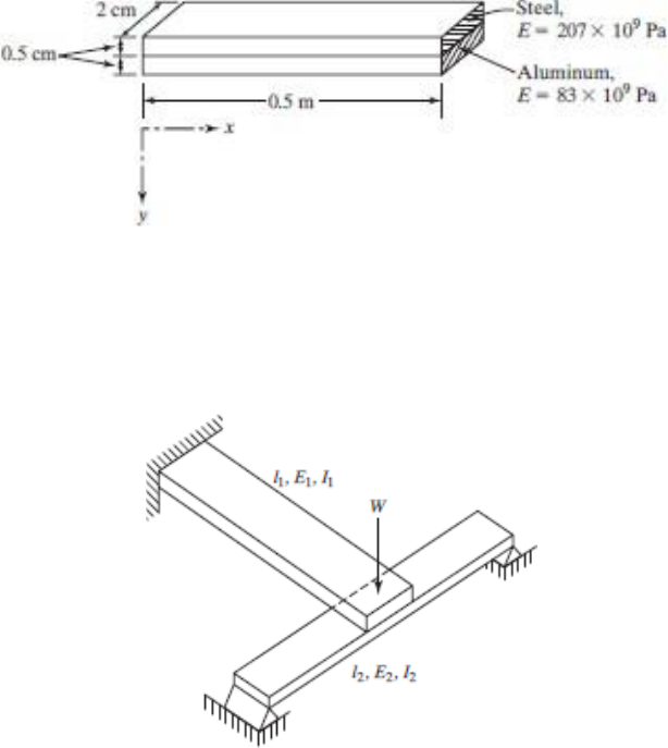 Lista de Exercícios MECÂNICA VIBRATÓRIA 1 1) Encontre a constante da mola da barra bimetalica da figura abaixo: 2) Determine a freqüência natural do sistema ao lado, em função das variáveis apresentadas na imagem. Observe que a carga W é aplicada na extremidade da viga 1 e no ponto médio da viga 2. Lista de Exercícios MECÂNICA VIBRATÓRIA 2 3) Encontre o modelo matemático dos sistemas abaixo: 4) Determine a freqüência natural do sistema de polias mostrado na figura abaixo, desprezando o atrito e as massas das polias. 5) Determine o deslocamento, velocidade e aceleração da massa no sistema massa-mola com: k = 500 N/m; m = 2kg; x0 = 0.1m e vo = 5m/s. Lista de Exercícios MECÂNICA VIBRATÓRIA 3 6) Um cilindro de massa m e momento de inércia Jo é livre para rolar, sem deslizar, mas restrito por 2 molas de dureza k1 e k2, conforme a figura abaixo. Ache a freqüência natural de vibração. Encontre também o valor de "a" que maximize a freqüência natural de vibração. 7) O peso W é suportado por 3 roldanas e uma mola de rigidez k, conforme a figura abaixo. Encontre a freqüência natural de vibração do peso W para pequenas oscilações. Obs.: desconsidere o atrito e a massa das roldanas.