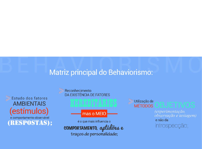 Escola psicológica: teoria behaviorista DESAFIO O behaviorismo (ou comportamentalismo) é definido como uma escola de pensamento, um movimento, uma corrente ou uma teoria psicológica. Seus principais expoentes são John B. Watson e B. F. Skinner, que buscaram explicar o comportamento humano por meio do condicionamento clássico e do condicionamento operante, respectivamente. Na imagem a seguir, você pode acompanhar os princípios do behaviorismo. A aprendizagem comportamental na perspectiva behaviorista clássica, denominada reflexo condicionado, associa um estímulo incondicionado a um estímulo neutro, resultando em uma resposta condicionada. Considerando isso, imagine a situação a seguir. Você é psicólogo e recebeu em seu consultório um paciente que realiza treinamentos presenciais para compradores que utilizam os equipamentos médicos da empresa onde trabalha. A queixa apresentada por ele é de que não está conseguindo mais ministrar os treinamentos, pois vivencia sentimentos intensos de ansiedade diante da exposição a grandes grupos de pessoas. Ao ser questionado sobre o surgimento dos sintomas relatados, ele informou que recentemente se sentiu mal durante uma apresentação, desmaiou e precisou ser resgatado por uma ambulância. Foi identificado que o desmaio ocorreu porque ficou muitas horas sem alimentação. Desde então, não conseguiu retomar suas atividades. Diante da situação relatada pelo paciente, responda: a) Como você explica o comportamento dele utilizando os princípios do condicionamento reflexo? b) Como você pode trabalhar com o paciente na modificação desse comportamento? PADRÃO DE RESPOSTA ESPERADO a) Partindo-se dos dados presentes na queixa inicial do paciente, é possível supor que antes de ter passado mal diante de um grupo de pessoas, ele não apresentava sentimentos de ansiedade, ou seja, se tratava de um estímulo neutro. Ao vivenciar uma situação de constrangimento em público por ter passado mal (estímulo incondicionado), desenvolveu crises de ansiedade, passando a evitar momentos como esse (resposta incondicionada). b) Para modificar o comportamento apresentado pelo paciente, é possível retomar a exposição diante de grupos menores de pessoas familiares, aumentando-a gradativamente a grupos maiores (estímulo condicionado). Nessas oportunidades, é importante garantir que ele se sinta confortável e receba feedbacks positivos para que minimize a ocorrência de sentimentos de ansiedade (resposta condicionada). O objetivo dessa abordagem é desassociar o estímulo incondicionado e o estímulo neutro resultantes na resposta condicionada.