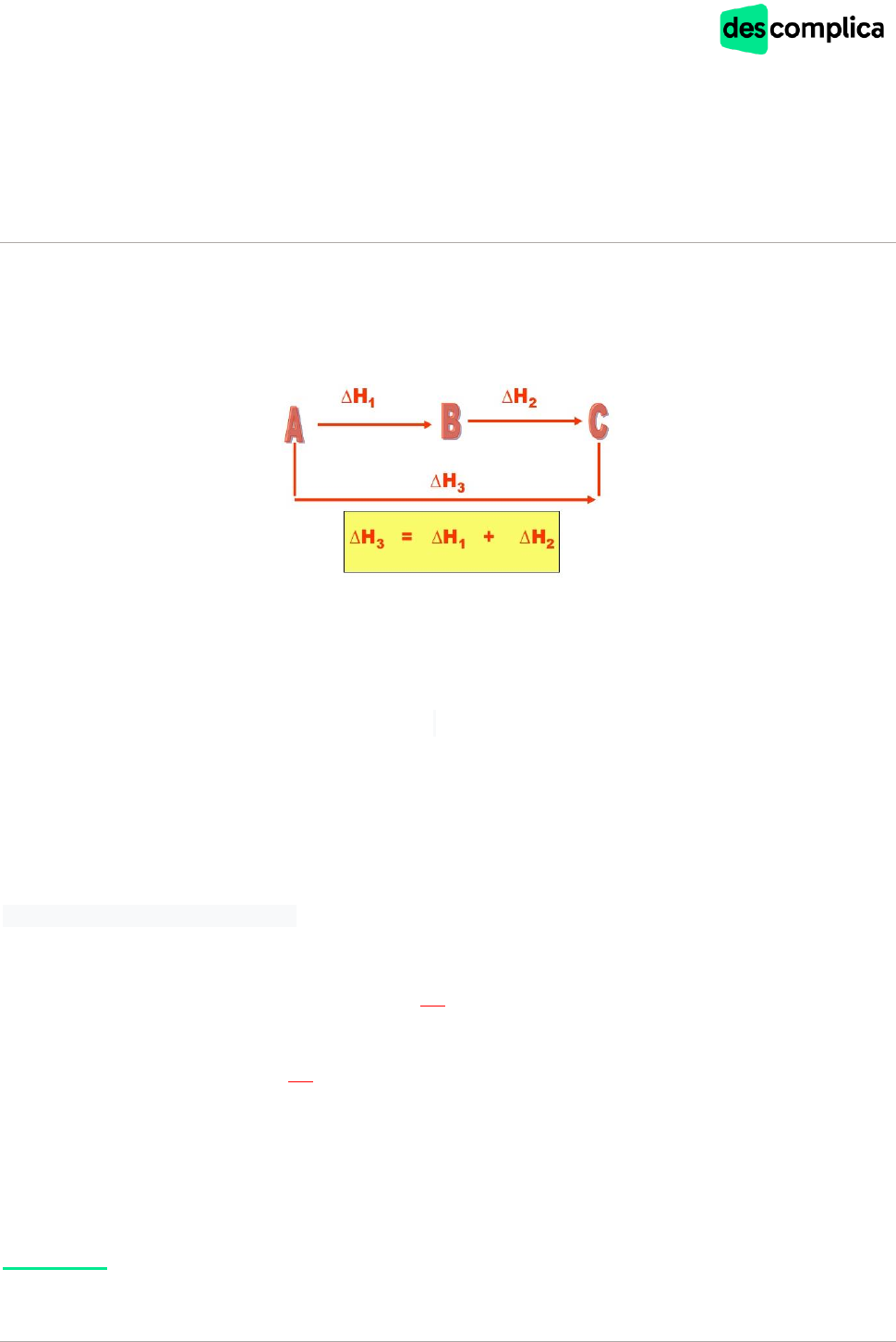 Observe que a entalpia envolvida na transformação de A para C independe se a reação foi realizada em uma