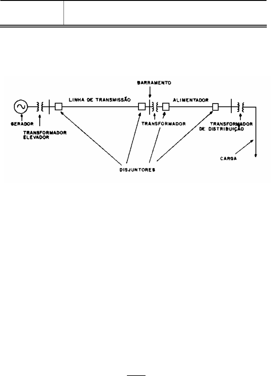 Capítulo 2 Elementos de Sistema de Potência São vários os equipamentos que compõem um sistema de energia elétrica. A Figura 2.1 apresenta um diagrama unifilar de um sistema elétrico com representação dos principais componentes do sistema. Figura 2.1. Sistema de Potência Simplificado 2.1 Geradores A geração de energia elétrica em grandes blocos processa-se pela ação de máquinas rotativas que acionadas mecanicamente por uma máquina primária (turbina hidráulica, a vapor, a gás, ou máquina de combustão interna, ou turbina eólica) produzem através de campos de indução eletromagnéticos, uma onda senoidal de tensão com freqüência fixa e amplitude definida pela classe de tensão do gerador. Os geradores síncronos trifásicos representam a máquina mais comum de geração em um sistema de potência. A palavra síncrona significa que o campo girante no entreferro tem a mesma velocidade angular que a do rotor. A freqüência f da tensão induzida é diretamente proporcional ao número de pólos e a velocidade de rotação do rotor. A freqüência é determinada por: 120 np f ⋅= [Hz] (2.1) em que ‘p’ é o número de pólos da máquina e ‘n’ o número de rotações por minuto ou velocidade (síncrona) do rotor em rpm. Profa Ruth Leão Email: rleao@dee.ufc.br Homepage: www.dee.ufc.br/~rleao 2-2 O circuito equivalente por fase de um gerador síncrono sob condição de estado permanente é mostrado na figura abaixo. Figura 2.2. Circuito Equivalente Por Fase de Gerador Síncrono. As partes principais de uma máquina girante são rotor e estator. Em uma máquina síncrona os enrolamentos de campo estão situados no rotor e os enrolamentos de armadura no estator. A corrente nos enrolamentos de campo é CC e produz um fluxo magnético constante por pólo. A rotação do rotor com relação ao estator causa a indução de tensão nos enrolamentos de armadura. Figura 2.3. Gerador Síncrono de Pólos Salientes. Os enrolamentos de armadura de um gerador trifásico podem ser associados em estrela ou triângulo. A ligação ‘estrela’ é utilizada na maioria dos geradores dos sistemas de energia elétrica. Geralmente, o neutro é aterrado neste tipo de ligação sendo este aterramento feito através de uma resistência ou reatância cuja finalidade é a de reduzir a corrente de curto circuito. Profa Ruth Leão Email: rleao@dee.ufc.br Homepage: www.dee.ufc.br/~rleao 2-3 Os geradores síncronos são construídos com dois tipos de rotores: rotores de pólos salientes e rotores de pólos lisos ou simplesmente, rotores cilíndricos. Os rotores de pólos salientes são em geral acionados por turbinas hidráulicas de baixa velocidade (entre 50 e 300 rpm) a fim de extrair a máxima potência de uma queda d’água, e os rotores cilíndricos são acionados por turbinas a vapor1 de alta velocidade (até 3600 rpm). Nas máquinas de pólos salientes porque o rotor está diretamente ligado ao eixo da turbina e o valor de freqüência nominal é de 60 Hz, é necessário um grande número de pólos. Os rotores de baixa velocidade possuem um grande diâmetro para prover o espaço necessário aos pólos. Os geradores síncronos de alta rotação são mais eficientes que seus equivalentes de baixa rotação. Para gerar a freqüência desejada o número de pólos não poderá ser inferior a dois e assim a velocidade máxima fica determinada. Para 60 Hz a velocidade máxima é de 3600 rpm. A alta velocidade de rotação produz uma alta força centrífuga, a qual impõe um limite superior ao diâmetro do rotor. No caso de um rotor girando a 3600 rpm, o limite elástico do aço impõe um diâmetro máximo de 1,2m. Por outro lado, para construir um gerador de 1000MVA a 1500MVA o volume do rotor tem de ser grande. Para isso os rotores de alta potência, alta velocidade são bastante longos. A Tabela 2.1 apresenta os dados dos geradores da usina Xingó, pertencente a CHESF. Tabela 2.1. Dados do Gerador Síncrono da Usina Xingó-CHESF. Gerador de Xingó Tipo Síncrono Vertical. Quantidade 6 Fabricante Siemens Potência instalada de cada unidade 527.000 kW Classe de isolamento rotor F Classe de isolamento do estator F Corrente nominal 16.679 A Fator de potência 0,95 Freqüência 60 Hz Tensão entre fases 18.000 V Velocidade nominal 109,1 rpm Número de pólos 66 1 O vapor possui uma significante quantidade de energia por unidade de massa (1000 a 1250Btu/lb). Profa Ruth Leão Email: rleao@dee.ufc.br Homepage: www.dee.ufc.br/~rleao 2-4 Figura 2.4. Esquemático de Sistema de Geração. 2.1.1 Controle de Freqüência e de Tensão O controle da freqüência e da tensão em um gerador síncrono é realizado por reguladores de velocidade e de tensão, respectivamente. O controle primário de freqüência2 é o controle realizado por reguladores automáticos de velocidade das unidades geradoras com o objetivo de limitar a variação da freqüência quando ocorre desequilíbrio entre a carga e a geração. Reserva de potência primária de potência ativa deve ser provida pelas unidades geradoras para efetuar o controle primário de freqüência. No Brasil, o controle primário de freqüência e a reserva de potência primária devem ser realizados por todas as unidades geradoras integrantes do Sistema Interligado Nacional – SIN, sem ônus para os demais agentes e consumidores. O controle secundário de freqüência3 é o controle realizado pelas unidades geradoras participantes do Controle Automático de Geração 2 Procedimento de Rede da ANEEL Sub-módulo 14 Administração dos Serviços Ancilares. 3 Procedimento de Rede da ANEEL Sub-módulo 14 Administração dos Serviços Ancilares. Profa Ruth Leão Email: rleao@dee.ufc.br Homepage: www.dee.ufc.br/~rleao 2-5 – CAG, destinado a restabelecer o valor programado da freqüência do sistema e a manter e/ou restabelecer os valores programados dos intercâmbios de potência ativa. As unidades de geração participantes do CAG apresentam reserva de potê