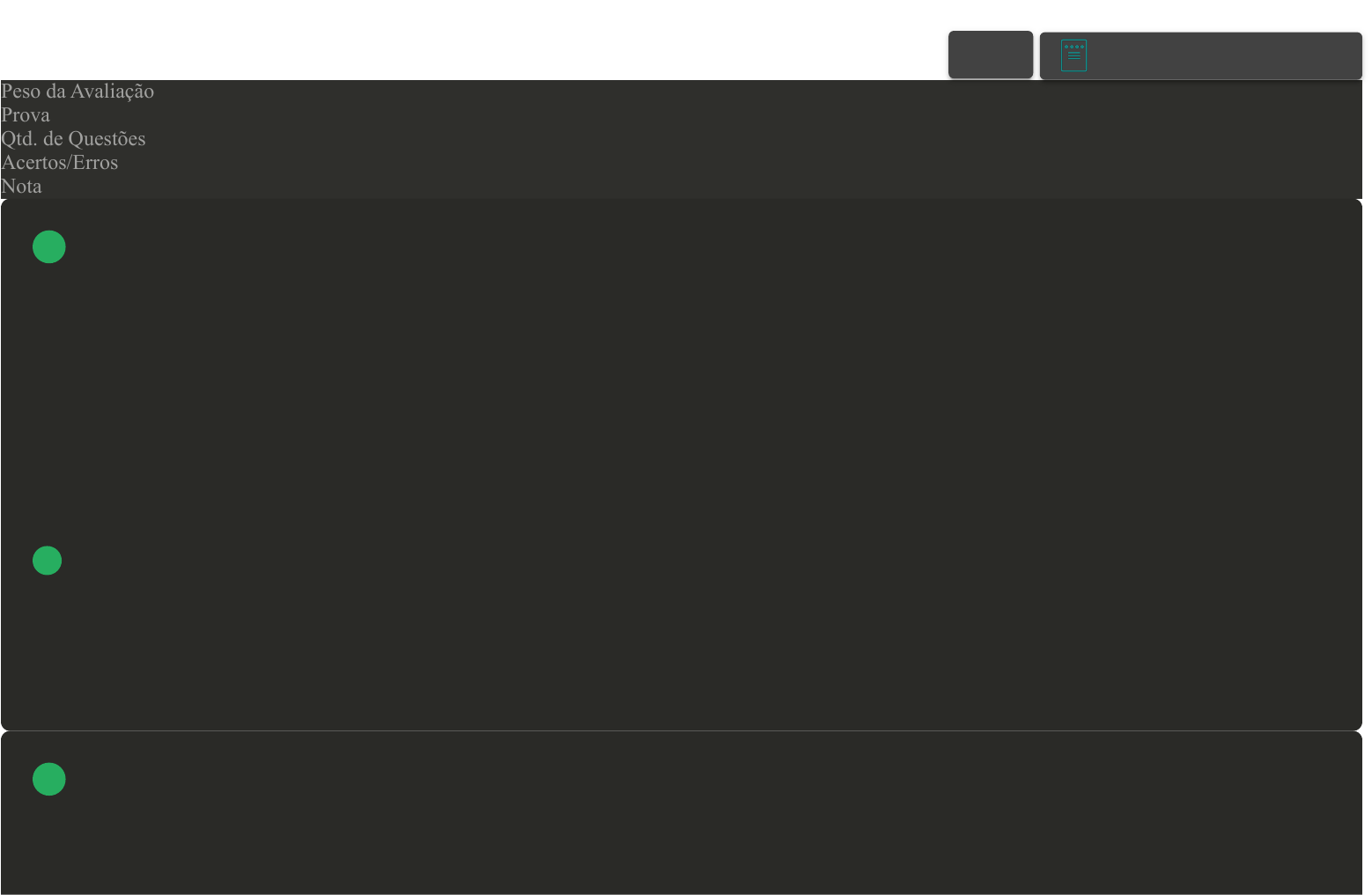 Prova Impressa GABARITO | Avaliação II - Individual (Cod.:669323) Peso da Avaliação 1,50 Prova 28662791 Qtd. de Questões 10 Acertos/Erros 7/3 Nota 7,00 Estudos relacionados à avaliação da aprendizagem têm demonstrado que a reprovação é ineficaz aos educandos enquanto instrumento de recuperação da aprendizagem, pois acaba funcionando mais como uma forma de punição, ao invés de ser um momento de reflexão dos erros que levaram à reprovação. Sobre a reprovação frente aos educandos, classifique V para as opções verdadeiras e F para as falsas: ( ) Ineficácia de alguns métodos ou maneiras de ensinar. ( ) Abalo da autoestima. ( ) A única forma de medir o conhecimento. ( ) A cultura do fracasso. Agora, assinale a alternativa que apresenta a sequência CORRETA: A F - F - V - V. B V - V - F - V. C F - V - V - F. D V - V - V - F. A avaliação tem como função diagnosticar ou levantar dados sobre o desempenho de um determinado agente do processo de ensino e aprendizagem. No entanto, tais instrumentos e práticas levam os profissionais da educação ao constante debate sobre os resultados obtidos neste processo. A avaliação quantitativa tem a preocupação de comprovar o grau em que os objetivos estabelecidos foram alcançados. Sobre as características do modelo alternativo ou abordagem qualitativa, analise as sentenças a seguir: VOLTAR A+ Alterar modo de visualização 1 2 I- A objetividade na avaliação qualitativa é sempre relativa, não pode ser o objetivo central ou prioritário. II- A avaliação qualitativa pode ser pensada como processo tecnicista desvinculado de valores. III- Pluralidade e flexibilidade metodológicas são dispensáveis na avaliação qualitativa. IV- Apenas aspectos observáveis do comportamento podem ser objeto de avaliação qualitativa. Assinale a alternativa CORRETA: A Somente a sentença I está correta. B Somente a sentença IV está correta. C Somente a sentença II está correta. D Somente a sentença III está correta. A avaliação não opera e nem existe por si mesma; está sempre a serviço de um projeto ou de um conceito teórico, ou seja, é determinada pelas concepções que fundamentam a proposta de ensino. Como chamamos o tipo de avaliação que tem como objetivo verificar o progresso do aluno no final de uma unidade didática, e que determina o nível de domínio em uma determinada área de aprendizagem? A Diagnóstica. B Singular. C Somativa. D Formativa. A avaliação é uma ação pedagógica fundamental para aferir o processo de ensino e aprendizagem e deve ser parte integrante nesse processo. A avaliação deve possuir objetivos claros e permitir mudanças no decorrer do processo. Quanto às funções da avaliação, ela deve cumprir três funções (BLOOM et al., 1973). Sobre estas funções, classifique V para as sentenças verdadeiras e F para as falsas: ( ) Diagnóstica. ( ) Somativa. 3 4 ( ) Educativa. ( ) Informativa. Assinale a alternativa que apresenta a sequência CORRETA: FONTE: BLOOM, Benjamim et al. Taxonomia dos objetivos educacionais. Porto Alegre: Globo, 1973. A V - F - F - F. B F - F - V - V. C F - V - V - F. D V - V - F - F. A avaliação tem como função diagnosticar ou levantar dados sobre o desempenho de um determinado agente do processo de ensino e aprendizagem. No entanto, tais instrumentos e práticas levam os profissionais da educação ao constante debate sobre os resultados obtidos neste processo. A avaliação quantitativa tem a preocupação de comprovar o grau em que os objetivos estabelecidos foram alcançados. Sobre as características do modelo alternativo ou abordagem qualitativa, classifique V para as sentenças verdadeiras e F para as falsas: ( ) A objetividade na avaliação é sempre relativa, não pode ser o objetivo central ou prioritário. ( ) A educação e a avaliação não podem ser pensadas como processos tecnicistas desvinculados de valores. ( ) Pluralidade e flexibilidade metodológicas são indispensáveis a uma proposta de avaliação quantitativa. ( ) Defende o princípio da objetividade na avaliação, portanto apenas aspectos observáveis do comportamento podem ser objeto de avaliação. Agora, assinale a alternativa que apresenta a sequência CORRETA: A F - F - V - V. B F - V - F - V. C V - F - V - F. 5 D V - V - F - F. Existem diversas técnicas de avaliação do conhecimento retido por parte do aluno. Uma delas é a aplicação de provas. As provas podem ser orais, dissertativas ou com questões objetivas. Quanto a formular e corrigir as provas dissertativas, classifique V para as sentenças verdadeiras e F para as falsas: ( ) Deve-se atribuir a cada questão um peso. ( ) É importante ter o máximo de objetividade possível na correção. ( ) Não há como criar um guia de correção com as possíveis respostas corretas. ( ) Deve-se corrigir prova por prova sem compará-las entre si. Assinale a alternativa que apresenta a sequência CORRETA: A F - F - F - V. B F - V - V - F. C V - V - F - F. D F - F - V - V. Durante o planejamento do curso, são definidos os instrumentos que serão utilizados e como vão ser processadas as avaliações. Essas informações são de extrema relevância, pois através desse processo é que se medirão se os objetivos do curso estão sendo alcançados e se os recursos utilizados são apropriados. Dentre as mais diversas formas de se efetuar uma avaliação, qual o tipo de prova recomendada no ensino de idiomas? A Prova mista. B Prova objetiva. C Prova dissertativa. D Prova oral. 6 7 A avaliação é um mecanismo importantíssimo no processo de ensino e aprendizagem, não podendo ter um fim em si mesma. Haydt (2001) afirma que, além de avaliar o que os alunos aprenderam, a avaliação da aprendizagem mensura também o que o próprio professor conseguiu ensinar. Com relação a estes princípios da avaliação, associe os itens, utilizando o código a seguir: I- Avaliação processual. II- Avaliação funcional. III- Avaliação ori