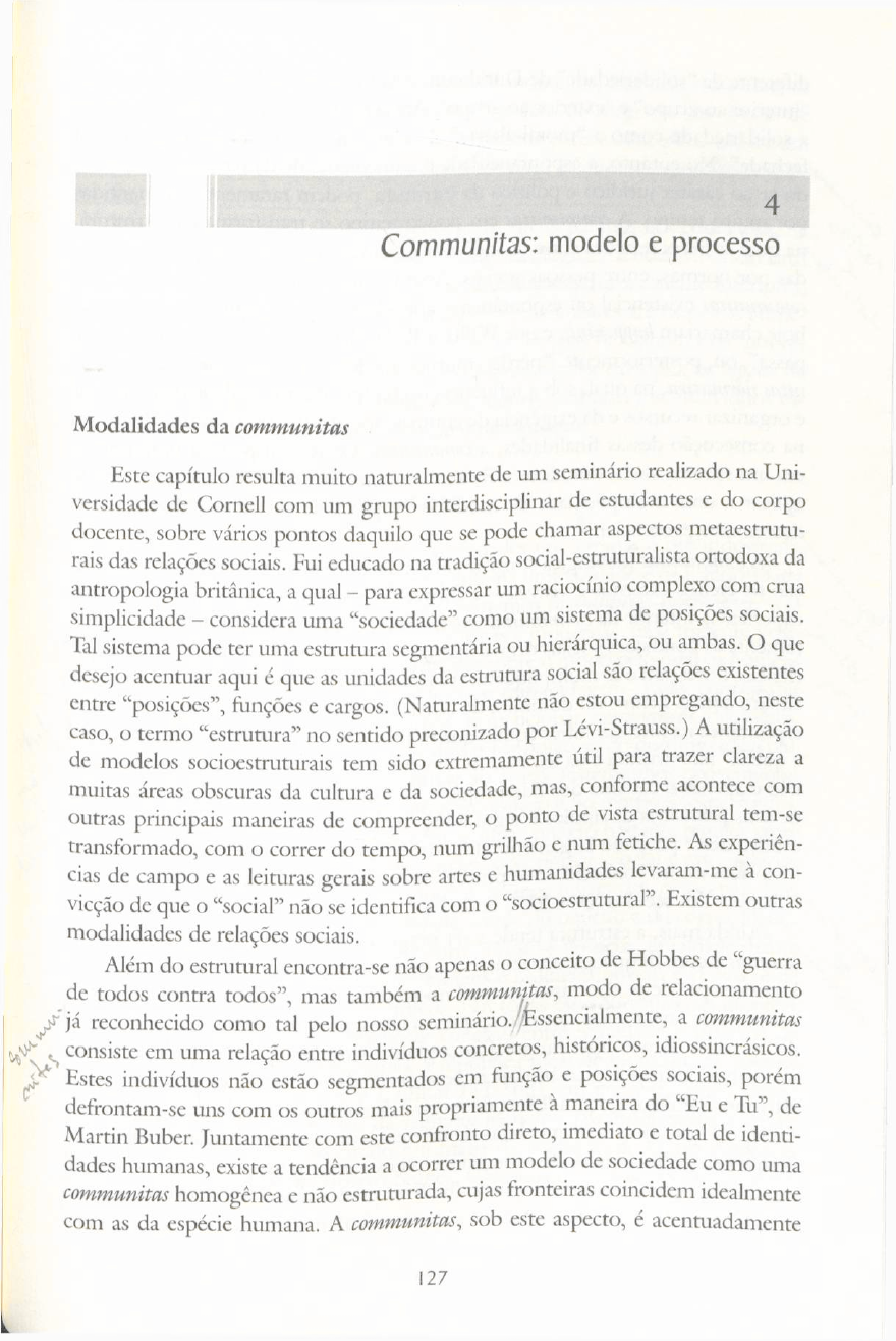 em um sistema social duradouro; 3) a communitas ideológica, rótulo que se pode