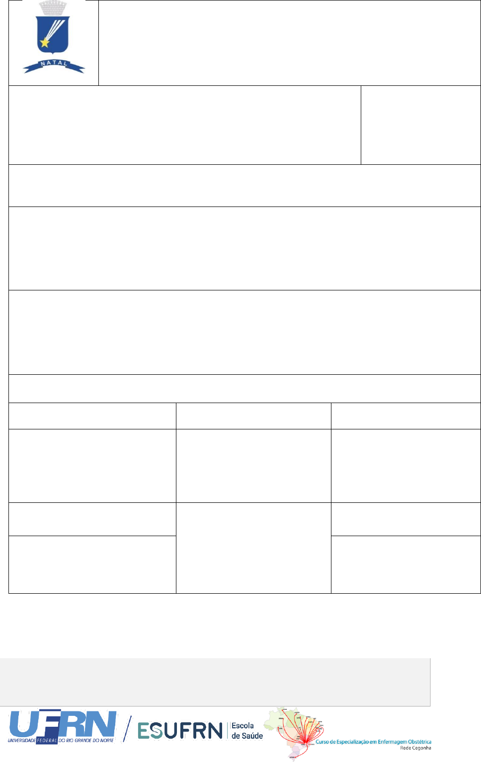 1 Produto desenvolvido no âmbito do III Curso de Especialização em Enfermagem Obstétrica - Rede Cegonha da Escola de Saúde da Universidade Federal do Rio Grande do Norte. Orientanda: Rosicler Cristine C. Severiano Albuquerque. Orientador: Prof. Dr. Flávio César Bezerra da Silva. Coorientadora: Profa. Dra. Jovanka Bittencourt Leite de Carvalho. Maio de 2019. MATERNIDADE ARAKEN IRERE PINTO PROCEDIMENTO OPERACIONAL PADRÃO (POP) Nº 001 ALEITAMENTO MATERNO DE PRIMEIRA HORA (AMPH) MACROPROCESSO: Assistência PROCESSO GERAL: cuidado de Enfermagem PROCESSO ESPECÍFICO: Unidade de Centro Obstétrico Página: 1/4 Emissão: Março/2019 Revisão: anual Validade: 2 anos 1 - OBJETIVOS: Promover o Aleitamento materno da primeira hora e contribuir para humanização do parto e redução dos índices de morbimortalidade neonatal. 2 – APLICABILIDADE: Puérperas em boas condições clínicas e Recém-Nascidos (RN) sem necessidades de intervenções emergenciais. 3 – CONTRA INDICAÇÕES ABSOLUTAS: mães portadoras do vírus HIV ou em uso de medicamentos imunossupressores. 4 –MATERIAL: Material de Proteção Individual (EPI); Gorro e manta; Cartão da gestante; Prontuário. 5 – SEQUÊNCIA/DESCRIÇÃO DAS ETAPAS AÇÕES AGENTES REFERÊNCIAS 1 – Consulte o cartão de pré-natal da gestante, observe se existe contraindicação para amamentação. Enfermeiros e Técnico de Enfermagem Prontuário e cartão pré- natal; 2 – Higienize as mãos; Equipe de Enfermagem (Enfermeiro e Técnico de Enfermagem) ANVISA, 2018 3 – Orientar as nutrizes sobre os benefícios do AMPH para mãe/filho; BRASIL, 2012; BRASIL, 2013 1Adaptado de UNIFESP (2015) 2 Produto desenvolvido no âmbito do III Curso de Especialização em Enfermagem Obstétrica - Rede Cegonha da Escola de Saúde da Universidade Federal do Rio Grande do Norte. Orientanda: Rosicler Cristine C. Severiano Albuquerque. Orientador: Prof. Dr. Flávio César Bezerra da Silva. Coorientadora: Profa. Dra. Jovanka Bittencourt Leite de Carvalho. Maio de 2019. MATERNIDADE ARAKEN IRERE PINTO PROCEDIMENTO OPERACIONAL PADRÃO (POP) Nº 001 ALEITAMENTO MATERNO DE PRIMEIRA HORA (AMPH) MACROPROCESSO: Assistência PROCESSO GERAL: cuidado de Enfermagem PROCESSO ESPECÍFICO: Unidade de Centro Obstétrico Página: 2/4 Emissão: Março/2019 Revisão: anual Validade: 2 anos 4 – Avalie, junto com Neonatologista/Pediatra, as condições do RN antes de prepará-lo para o início da amamentação. Enfermeiros BRASIL, 2012 5 – Promova conforto térmico e ambiental, proteja a cabeça do RN, aqueça-o com manta e coloque-o em contato pele a pele com sua genitora, ajude na acomodação e no estabelecimento da sucção; 6 – Estimule participação ativa do pai/familiar nas etapas da amamentação; 7 – Permaneça próxima da mãe e familiares durante o contato precoce ou amamentação, esse momento não deve ser inferior a 20 minutos, estimulando vínculos e esclarecendo dúvidas. Equipe de Enfermagem (Enfermeiro e Técnico de Enfermagem) (BRASIL, 2012; FEBRASGO, 2018) 8 – Higienizar as mãos. ANVISA, 2018 9 – Registre em prontuário todo o cuidado dispensado. Prontuário/cartão de pré-natal. 1Adaptado de UNIFESP (2015) 3 Produto desenvolvido no âmbito do III Curso de Especialização em Enfermagem Obstétrica - Rede Cegonha da Escola de Saúde da Universidade Federal do Rio Grande do Norte. Orientanda: Rosicler Cristine C. Severiano Albuquerque. Orientador: Prof. Dr. Flávio César Bezerra da Silva. Coorientadora: Profa. Dra. Jovanka Bittencourt Leite de Carvalho. Maio de 2019. MATERNIDADE ARAKEN IRERE PINTO PROCEDIMENTO OPERACIONAL PADRÃO (POP) Nº 001 ALEITAMENTO MATERNO DE PRIMEIRA HORA (AMPH) MACROPROCESSO: Assistência PROCESSO GERAL: Cuidado de Enfermagem PROCESSO ESPECÍFICO: Unidade de Centro Obstétrico Página: 3/4 Emissão: Março/2019 Revisão: anual Validade: 2 anos Riscos Avaliação (G;P)1 Mitigação/Diminuição (Nº, ações) De cunho assistencial Não execução do procedimento de: Conferência de restrições Orientar as nutrizes com relação as vantagens do AMPH. De cunho legal Ausência ou deficiência no registro da assistência prestada ou de intercorrências identificadas durante o cuidado. (4;1) (2;1) (3;2) (1) (3; 5; 6 e 7) (9) 1 Gravidade (G): 1 a 4; Probabilidade (P): 1 a 4 Observações O Aleitamento materno de primeira hora é um poderoso subsídio/alternativa para estimular o prolongamento da amamentação, pois possibilita contato precoce mãe-filho como também é o período em que o RN está alerta e com os reflexos de sucção aguçados favorecendo a produção hormonal de ocitocina e prolactina, os hormônios da lactação. Nesse contexto, cabe a equipe de saúde envolvida na assistência ao parto construir uma ambiência para que o AMPH aconteça em harmonia, um cenário propicio não somente a amamentação como também ao fortalecimento do vínculo mãe-bebe. Referências BRASIL, Ministério da Saúde. Secretaria de Atenção à Saúde. Departamento de Ações Programáticas Estratégicas. Atenção à saúde do recém-nascido: guia para os profissionais de saúde/Ministério da Saúde. Secretaria de Atenção à Saúde. Departamento de Ações Programáticas Estratégicas. – 2. Ed. – Brasília-DF: Ministério da Saúde, 2012. BRASIL, Ministério da Saúde. Secretaria de Atenção à Saúde. Gravidez, parto e nascimento com saúde, qualidade de vida e bem-estar /Ministério da Saúde. Secretaria de Atenção à Saúde. Departamento de Ações Programáticas Estratégicas. Área Técnica de Saúde da Criança e Aleitamento Materno, Área Técnica de saúde da Mulher. Brasília: Editora do Ministério da Saúde, 2013. 1 Adaptado de (UNIFESP, 2015) 4 Produto desenvolvido no âmbito do III Curso de Especialização em Enfermagem Obstétrica - Rede Cegonha da Escola de Saúde da Universidade Federal do Rio Grande do Norte. Orientanda: Rosicler Cristine C. Severiano Albuquerque. Orientador: Prof. Dr. Flávio César Bezer