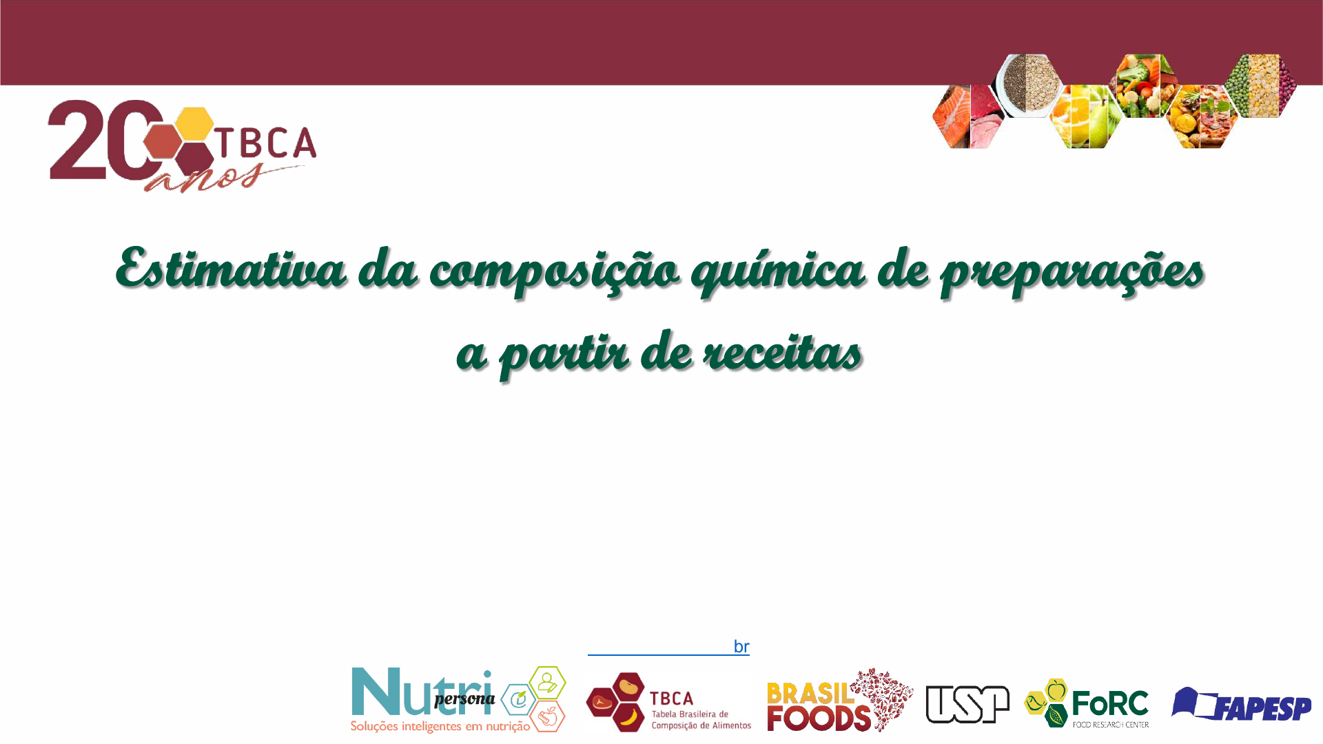 1 Kristy Soraya Coelho, PhD Nutritionist Clinical Nutrition Specialist (UNOPAR) Masters' degree in Health Technology (PUCPR) PhD in Applied Human Nutrition (FCF/USP) Post-doc position in FCF/USP Researcher at Food Research Center (FoRC) Management of Brazilan Food Composition Table (TBCA) Technical collaborator in the Family Budget Survey - Analysis of Personal Food Consumption in Brazil 2017-2018 (POF/IBGE, 2020) Regional Technical Committee of LATINFOODS Users (2022-2024) kristycoelho@usp.br mailto:kristycoelho@usp.br Cardápio Dados de composição e Sistema de Informação Conceitos relacionados ao cálculo de receitas Métodos para estimativa da composição química Exemplos de cálculos Cálculos e análises isoladas Requisitos para consulta em nutrição Armazenamento, processamento e recuperação das informações coletados Sistemas de informação (dado e informação) Ferramentas computacionais de apoio à nutrição clínica Presenter Presentation Notes Slide 4 - Riqueza de informações na área de nutrição constitui um farto material a ser empregado no campo da informática em nutrição – ferramentas computacionais. Avaliação da ingestão de nutrientes individual (comparação entre a ingestão do paciente/cliente e as recomendações dietéticas estabelecidas), além da prescrição de planos alimentares. Deve-se considerar a origem da tabela de composição de alimentos presentes nessas ferramentas, sendo que elas devem corresponder à realidade do local ao qual estão sendo utilizadas as ferramentas. Alimentos apresentados não possuem dados abrangentes de composição e informações sobre o método de preparo e ingredientes Exemplo de informação sobre a composição do alimento disponível na base de dados de uma ferramenta computacional Presenter Presentation Notes Slide 11 – As ferramentas computacionais disponíveis no Brasil, oferecem informações de diferentes origens, com diferentes quantidades de informações sobre os nutrientes dos alimentos. Os dois exemplos de preparações foram obtidos da base de dados de uma ferramenta computacional disponível no Brasil, devem ser dados de rótulo, mas não podemos afirmar por não apresentar informações suficientes. Observa-se que as informações de nutrientes não são abrangentes ou suficientes para a avaliação da ingestão de nutrientes ou planejamento de cardápio. Se esses dados de composição forem utilizados, tanto a avaliação quanto a elaboração da dieta podem ser subestimadas. Além disso, não é possível identificar como preparar ou adicionar outros ingredientes, como óleo, temperos e sal. Slide 5 - O número de preparações consumidas pela população é infinito, o que impossibilita a obtenção de dados analíticos para tudo o que a população consome. Também nem sempre é possível ou necessário decompor cada preparação em seus ingredientes para calcular a ingestão de nutrientes pela população, nas Pesquisas de Consumo Alimentar. Portanto, é importante estimar a composição química preparações consumidos pela população e disponibilizá-las em TCA. As ferramentas computacionais de apoio à nutrição clínica, disponíveis no Brasil, oferecem informações de diferentes fontes, bem como diferentes quantidades de informações sobre componentes. Este slide mostra dois exemplos de informações de composição de alimentos disponíveis em banco de dados de ferramentas computacionais no Brasil: Ambos os exemplos de preparações podem ser de rótulos de alimentos industrializados, mas não podemos afirmar isso, pois não fornecem informações abrangentes. Nenhum deles apresenta todas as informações de composição química necessárias para a avaliação da ingestão de nutrientes ou elaboração de planos alimentares. Se esses dados de composição forem usados, tanto a avaliação quanto a elaboração de planos alimentares podem ser subestimadas. Além disso, não é possível identificar o método de preparo e os ingredientes adicionados, como óleo, tempero e sal. Coelho et al. (2019) Presenter Presentation Notes Slide 6 - Diante da realidade dos softwares não apresentarem informação de forma adequada, e considerando a necessidade das pesquisas de consumo alimentar, começamos a trabalhar com o desenvolvimento de uma BD, que permitisse avaliar esses dados, com informações abrangentes e preferencialmente nacionais. Essa BD precisa ser abrangente em termos de alimentos e nutrientes. A partir da versão 6.0, lançada em 2017, já disponibilizamos dados de 34 componentes, para cerca de 1900 alimentos, sendo 700 preparações. Atualmente estamos na versão 7.1, com cerca de 5300 alimentos, e 3200 preparações, classificação sobre o tipo de alimento incluindo, preparações com alteração de textura, sem gluten, sem lactose e veganas/vegatarianas. Além disso, apresenta sal e açúcar de adição para essas preparações. Dados de composição química prioritariamente nacionais e completos TBCA (2021) Arroz, polido, cozido, c/ óleo, cebola e alho, c/ sal Arroz, polido, cozido, c/ óleo, cebola e alho, s/ sal Arroz, polido, cozido, c/ óleo, cebola e alho, outros ingredientes Presenter Presentation Notes Slide 13 - Este é um exemplo de um alimento pronto para consumo, sem óleo e sal, mas com um perfil abrangente de nutrientes, com a medida doméstica correspondente (colher de servir). Se não estiver listado, é porque no banco de dados era "zero" ou "valor de rastreio". Além do exemplo, outras preparações também estão disponíveis, como os 3 exemplos citados aqui. Destaco a importância dessas outras opções de preparação, tanto para atender a necessidade de pesquisas de consumo alimentar, como também para nutricionistas durante seu atendimento (avaliação e prescrição dietética). “Para avaliar a evolução do consumo de macro e micronutrientes comparando a pesquisa atual com a de 2008-2009 os bancos de dados foram compatibilizados e a pes