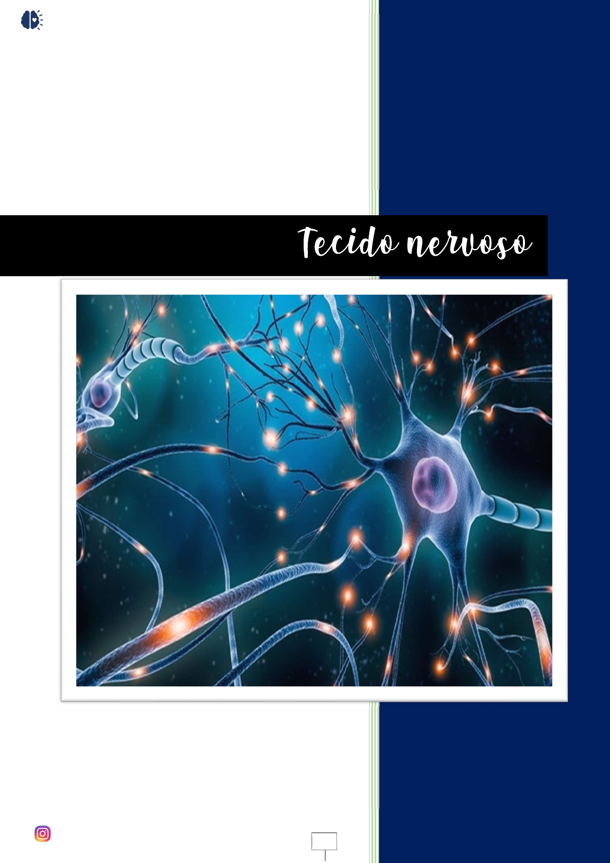 BMF4- Bloco 1- Conceitos gerais- Aula 2.2 – Tecido nervoso @braozinnn- Abraão Filipe – T5C- Uninove- Osasco 1 RESUMO BMF 4 BMF4- Bloco 1- Conceitos gerais- Aula 2.2 – Tecido nervoso @braozinnn- Abraão Filipe – T5C- Uninove- Osasco 2 Tecido nervoso Caro leitor, aqui nesse material daremos enfoque aos neurônios, pois as células da glia serão abordadas em um resumo específico. O tecido nervoso é dividido em neurônios e neuróglia (células da glia); Neurônios Definição Células nervosas responsáveis pela recepção e processamento de informações, atividades que terminam com a transmissão de sinalização por meio da liberação de neurotransmissores e outras moléculas informacionais. Os neurônios têm morfologia complexa, mas apresentam três componentes: dendritos, corpo celular, soma ou pericário e axônio. Corpo celular Também chamado de pericário ou soma, é a parte onde tem o núcleo e o citoplasma. É o centro trófico, mas que também tem função receptora e integradora de estímulos, na qual recebe estímulos excitatórios ou inibitórios. O núcleo é esférico e pouco corado, indicando alta atividade sintética. Cada núcleo apresenta apenas um nucléolo, em geral. Rico em RER, onde existem numerosos polirribossomos livres. E o conjunto de cisternas e ribossomos são vistas como manchas espalhadas pelo citoplasma, os chamados corpúsculos de Nissl. A quantidade de RER é maior em neurônios motores. O complexo de Golgi é formado por várias cisternas em volta do núcleo. As mitocôndrias existem em quantidade moderada. Citoesqueleto apresenta neurofilamentos que são os filamentos intermediários, além de apresentar microtúbulos. Pode haver grânulos de melanina e lipofuscina (resíduos de material parcialmente digerido pelos lisossomos). Neurônio. Observe seus componentes principais. As setas indicam um espesso prolongamento. O tecido em torno do neurônio é constituído por grande quantidade de prolongamentos de outros neurônios e de células da glia, que não podem ser individualizados neste tipo de preparado. Os outros núcleos pertencem, em sua maioria, a células da glia e, em menor número, a células endoteliais de capilares. (Microscopia óptica. Hematoxilina-eosina [HE]. Médio aumento.) Dendritos Recebem impulsos nervosos trazidos por numerosas terminações axonais de outros neurônios. Citoplasma parecido ao do corpo celular, mas sem complexo de Golgi. BMF4- Bloco 1- Conceitos gerais- Aula 2.2 – Tecido nervoso @braozinnn- Abraão Filipe – T5C- Uninove- Osasco 3 Pequenas projeções: espinhos, espículas ou gêmulas dendríticos, essas são um importante local de recepção de sinalização dos impulsos nervosos que chega à membrana dos dendritos. Axônios Os axônios são prolongamentos efetores que transmitem estímulos a outros neurônios ou a células efetoras. Cada neurônio contém apenas um axônio. Neurônios dos núcleos motores do SNC: neurônios do tipo I de Golgi mais de 1 metro até os alvos efetores no musculo esquelético. Interneurônios do SNC: (neurônios do tipo II de Golgi) apresentam axônios muito curtos. O axônio origina-se do cone axônico ou cone de implantação que se projeta do corpo celular, esse trecho é chamado de segmento inicial e não é recoberto por mielina (local em que é gerado potencial de ação). Por ter poucas organelas em seu axoplasma ele é mantido pela atividade sintética do pericário. Muitos axônios originam ramificações próximo a sua terminação, denominadas colaterais, sendo essa terminação ramificada e chamada de teloendro. Nesse se concentram pequenas dilatações citoplasmáticas, denominadas de botões sinápticos ou botões terminais, regiões onde se acumula sinalizadores químicos e os axônios estabelecem sinapses com outras células. Classificação dos neurônios Morfologicamente Neurônios bipolares: um dendrito e um axônio; Neurônios multipolares: vários dendritos e um axônio Neurônios pseudounipolares: junto ao corpo celular um prolongamento único que logo se divide em dois um para a periferia e outro para o SNC. Localização Bipolares: gânglios cocleares e vestibular, retina e mucosa olfatória. Pseudounipolares: gânglios espinais (raízes dorsais dos nervos espinais) e nos gânglios cranianos. Funcionalmente Motores: controlam órgãos efetores, como glândulas exócrinas e endócrinas e fibras musculares. Do SNC ou gânglios para as células efetoras. Fibras nervosas eferentes somáticas (musculo esquelético) e eferentes viscerais (m. liso, cels de condução cardíaca e glândulas). Sensoriais/sensitivos: recebem estímulos sensoriais do meio ambiente e do próprio organismo. Fibras aferentes somáticas (dor, temperatura, tato e pressão) e aferentes viscerais (dor, outras sensações a partir de órgãos internos, das mucosas, das glândulas e vasos sanguíneos). BMF4- Bloco 1- Conceitos gerais- Aula 2.2 – Tecido nervoso @braozinnn- Abraão Filipe – T5C- Uninove- Osasco 4 Interneurônios: estabelecem conexões entre neurônios. BMF4- Bloco 1- Conceitos gerais- Aula 2.2 – Tecido nervoso @braozinnn- Abraão Filipe – T5C- Uninove- Osasco 5 Referências