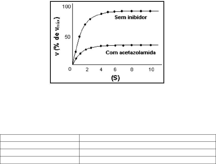 Lista de Exercício – Enzimologia Industrial 1) A anidrase carbônica, enzima que participa na regulação do conteúdo de bicarbonato e do pH de muitos fluidos do corpo, é fortemente inibida pela acetazolamida. A figura a seguir ilustra a variação da velocidade da reação em função da concentração de substrato para a reação catalisada pela anidrase carbônica. Quando o experimento é repetido na presença de acetazolamida, obtém-se a curva inferior. Observando as duas curvas e a partir do seu conhecimento das propriedades cinéticas de inibidores competitivos e não - competitivos, determine a natureza da inibição provocada pela acetazolamida. Explique. 2) Um pesticida inibe a reação catalisada por uma determinada enzima E. No laboratório foram determinadas as velocidades (em g.L-1.min-1) da reação para diferentes concentrações de substrato (em g.L-1), na presença e na ausência do pesticida. A partir dos dados, foram obtidas as equações apresentadas na tabela. Concentração do inibidor Equação I= 0,75 g.L-1 𝑦 = 13,5. 𝑥 + 1,5 I= 1,51 g.L-1 y= 18,0𝑥 + 2,01 I= 3,02 g.L-1 Y= 27,01𝑥 + 3,03 a) Qual o tipo de inibição? Explique. b) Determine os valores dos parâmetros Km; Vmáx; KI; V’máx c) Faça um esboço do gráfico de 1/v versus 1/s para representar o tipo de inibição observado. Identifique no gráfico os valores de I.