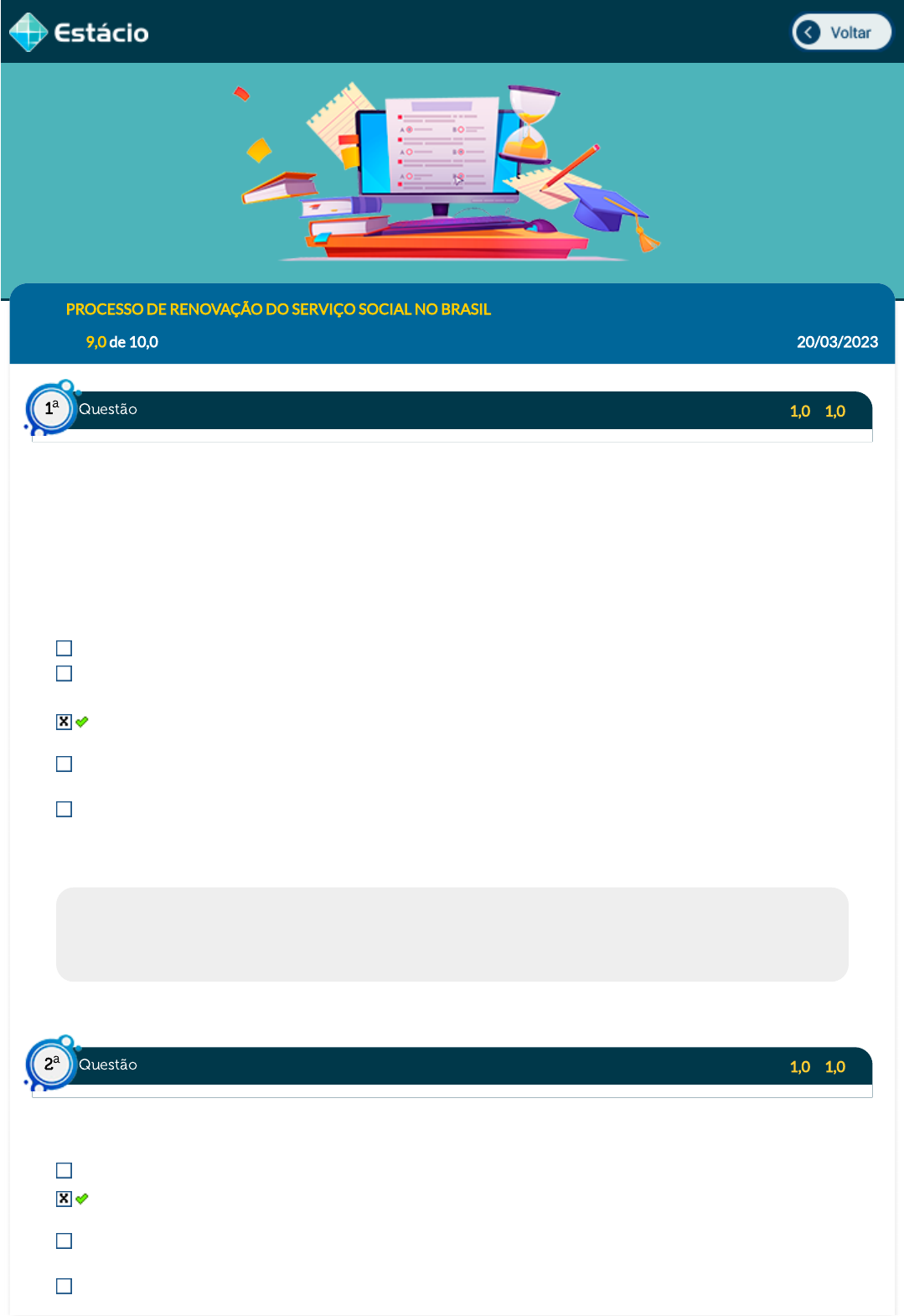 Disc.: PROCESSO DE RENOVAÇÃO DO SERVIÇO SOCIAL NO BRASIL Acertos: 9,0 de 10,0 20/03/2023 Acerto: 1,0 / 1,0 "O que assistimos atualmente no mundo capitalista é muito mais do que uma simples crise �nanceira, ou creditícia (...). Assistimos, na atualidade, ao início do processo de colapso de uma etapa especí�ca do capitalismo. A crise �nanceira iniciada nos Estados Unidos, no setor imobiliário dos subprime, e a qual se estendeu a todo o sistema �nanceiro e ao setor da economia real, é só o princípio desse processo". CARCANHOLO, R. A. A atual crise do capitalismo. Crítica Marxista, n.29, 2009. p.49 (adaptado). Durante a análise sobre a crise �nanceira do capitalismo, o autor a�rma que ela "se estendeu a todo o sistema �nanceiro e ao setor da economia real". Isso signi�ca dizer que a crise econômica em questão: Manifesta-se em setores especí�cos da economia, não afetando o seu macrofuncionamento. Poderia ser evitada se houvesse uma maior integração entre o capitalismo �nanceiro e o capitalismo real. Materializa-se tanto na esfera especulativa das bolsas de valores quanto no campo das atividades econômicas básicas. É resultante das trocas comerciais não só do sistema capitalista, mas de toda a estrutura da sociedade moderna. Ocorre na esfera especulativa, gerando prejuízos apenas no campo da economia dos bens materiais. Respondido em 20/03/2023 17:04:23 Explicação: A resposta certa é: Materializa-se tanto na esfera especulativa das bolsas de valores quanto no campo das atividades econômicas básicas. Acerto: 1,0 / 1,0 O presidente dos Estados Unidos, Barack Obama, não consegue passar como um presidente vinculado à ascensão da esquerda, mas dialoga com governos latino-americanos, como podemos ver na medida: Rompimento com o Brasil e com o governo Bolsonaro. Estabelecimento de acordos de cooperação e bilaterais com diversos países como Brasil e Argentina, apesar da resistência deles. Trouxe a público os documentos do período das ditaduras, reconhecendo que articulou e se desculpando. Negociação com a Revolução de El Salvador, reconhecendo sua autonomia. Questão1 a Questão2 a https://simulado.estacio.br/alunos/inicio.asp javascript:voltar(); Demissão e indicação de um novo diretor para CIA, evitando e se desculpando por abusos. Respondido em 20/03/2023 17:02:09 Explicação: A resposta certa é: Estabelecimento de acordos de cooperação e bilaterais com diversos países como Brasil e Argentina, apesar da resistência deles. Acerto: 0,0 / 1,0 Na época da crise econômica de 2008, �cou famosa a entrevista do presidente Lula dizendo que dizia que "o tsunami da crise mundial no Brasil não passou de uma marolinha" (GALHARDO, R. Lula: crise é tsunami nos EUA e, se chegar ao Brasil, será ''''''''marolinha''''''''. O globo. Publicado em: 4 out. 2008.). Sobre as medidas para conter os impactos da crise de 2008 no Brasil, avalie as assertivas: I. O Brasil foi fortemente impactado pela crise econômica, seguindo o movimento natural da crise mundial e o apagão do crédito privado. II. O governo brasileiro fez um movimento anticíclico, utilizando os bancos públicos e o próprio tesouro nacional para garantir a manutenção da oferta de créditos. III. Utilizando a estabilidade inerente ao tesouro nacional, o Brasil estimulou a liquidez em sua economia. IV. Houve um aumento na arrecadação de impostos, compensando os investimentos públicos. Marque a alternativa correta: Somente I, II e IV estão corretas. Somente II e III estão corretas. Somente II, III, e IV estão corretas. Somente I e II estão corretas. Somente I e IV estão corretas. Respondido em 20/03/2023 16:59:29 Explicação: A equipe econômica brasileira não acompanhou o movimento natural da crise, que consistia em permitir o apagão do crédito privado. Ao invés disso, o governo brasileiro fez um movimento anticíclico, utilizando os bancos públicos e o próprio tesouro nacional para garantir a manutenção da oferta de créditos. A grande novidade do governo brasileiro foi ter negado a ideia de que emitir crédito era uma operação de risco. Utilizando a estabilidade inerente ao tesouro nacional, o Brasil estimulou a liquidez em sua economia, ou seja, a disponibilidade de dinheiro para emprestar às famílias e aos agentes econômicos como empresas e indústrias. O resultado foi a manutenção do consumo familiar e da atividade produtiva em níveis altos, o que aumentou a arrecadação de impostos, compensando os investimentos público, em um verdadeiro "ciclo virtuoso". Acerto: 1,0 / 1,0 "O capitalismo é intrinsecamente instável, mas uma crise tão profunda e danosa quanto a atual era desnecessária: poderia ter sido evitada se o Estado democrático tivesse sido capaz de resistir à desregulação dos mercados �nanceiros. (¿) A crise global de 2008 começou como costumam começar as crises �nanceiras em países ricos e foi causada pela desregulação dos mercados �nanceiros e pela especulação selvagem que essa desregulação permitiu". PEREIRA, L. C. B. A crise �nanceira global e depois: um novo capitalismo? Novos Estudos. n.86, mar. 2010. pp. 51-72. Questão3 a Questão4 a Ao atribuir a responsabilidade pela crise econômica atual do capitalismo à desregulamentação dos mercados pelo Estado, o autor do texto tece uma crítica ao intervencionismo do Estado. ao neoliberalismo econômico. à corrupção dos governos. à mercantilização da sociedade. ao capitalismo �nanceiro. Respondido em 20/03/2023 16:58:27 Explicação: Quando o autor responsabiliza a desregulação dos mercados pela ausência do Estado democrático, ele critica a ausência de intervenção do Estado sobre a economia, uma das premissas básicas do sistema neoliberal. Dessa maneira, ainda que o capitalismo �nanceiro e a mercantilização da sociedade também integrem o fenômeno da crise, elas decorrem da política econômica neoliberal. Acerto: 1,0 / 1,0 Os consumidores e as 