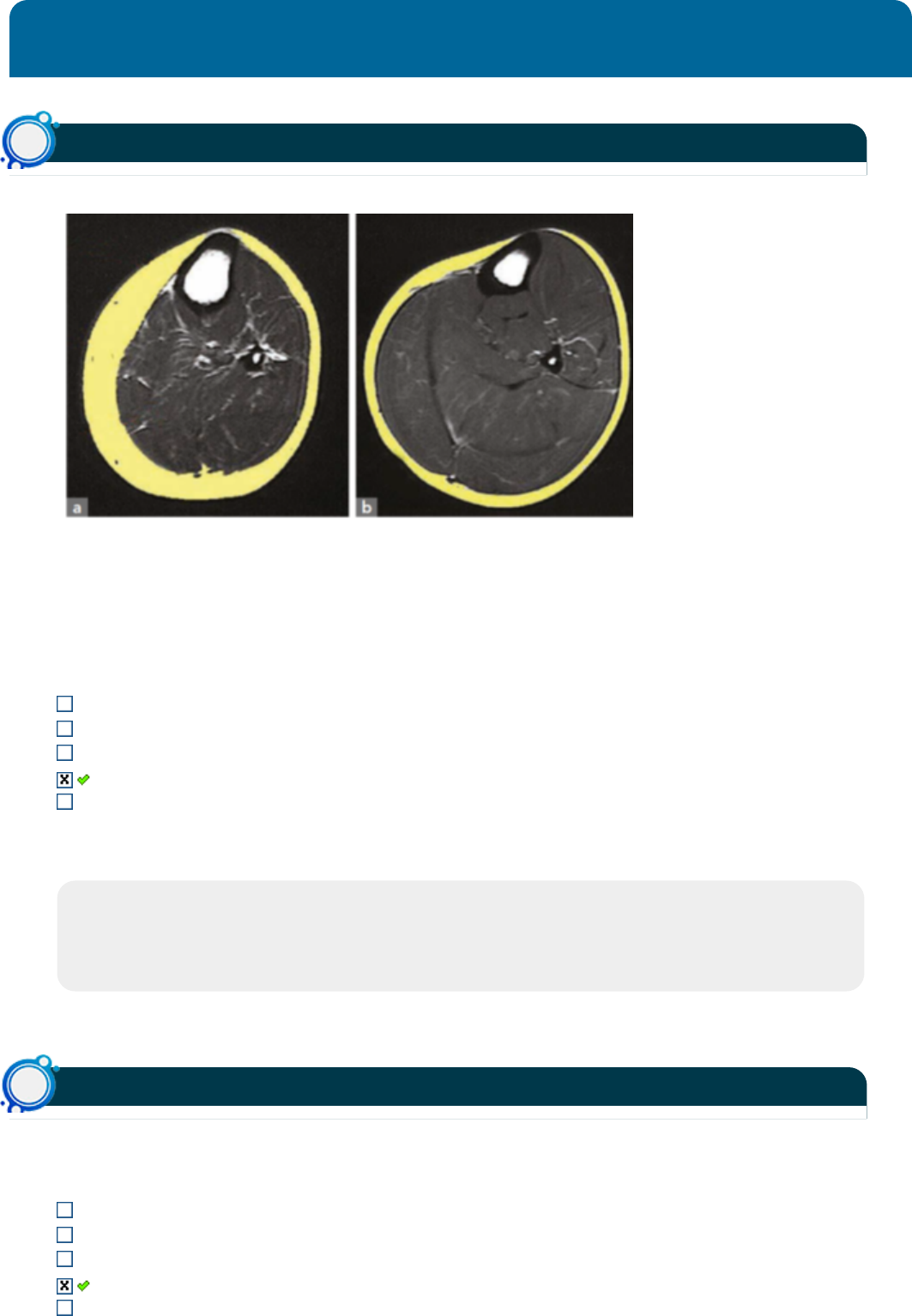 Acertos: 10,0 de 10,0 09/05/2023 Acerto: 1,0 / 1,0 Observe a imagem comparativa de duas ressonâncias magnéticas a seguir: BROWN, L E. Strength Training. 2nd ed. Champaign, IL: Human Kinetics, 2017. P. 48 Nas figuras a e b está ilustrado um corte transversal do membro superior de uma mulher submetida ao treinamento (a - pré-treinamento; b - pós-treinamento). Em amarelo envolvendo a estrutura observa-se uma camada externa de tecido adiposo (gordura corporal) e, em cinza, a massa muscular. Tendo em vista o que pode ser observado na imagem, assinale a opção que apresenta a adaptação ocorrida em resposta ao treinamento realizado: Força pela adaptação neural. Hipertrofia pela redução da quantidade de tecido adiposo. Força pelo aumento da área de secção transversa. Hipertrofia muscular pelo aumento da área de secção transversa. Hipertrofia pelo aumento do número de células musculares. Respondido em 09/05/2023 15:53:48 Explicação: Através do corte transversal da imagem fica evidente o aumento da área de secção transversa do músculo, o que corresponde à hipertrofia muscular. A imagem não ilustra adaptações neurais. A redução do tecido adiposo corresponde ao emagrecimento. O aumento do número de células é denominado hiperplasia. Acerto: 1,0 / 1,0 A hipertrofia muscular é uma adaptação crônica decorrente do treinamento de força, e que está associada a outros fatores como a alimentação e o descanso. Dentre os fatores abaixo, marque a resposta que não está relacionada com a hipertrofia muscular. O aumento da síntese de proteínas. As células satélites. O aumento da área de secção transversa do músculo. O aumento da frequência de disparo neural. A dependência da testosterona. Questão1a Questão2a Respondido em 09/05/2023 15:56:13 Explicação: A hipertrofia muscular é o aumento da área de secção transversa do músculo e depende da testosterona que aumenta a síntese de proteínas contráteis. Além disso, as células satélites também contribuem para o processo de hipertrofia. Portanto, a frequência de disparo neural é o único fator associado ao componente neural da força e não ao hipertrófico. Acerto: 1,0 / 1,0 Conhecer os movimentos articulares é importante para a atuação do professor de Educação Física. Assinale a opção que contém a região da coluna vertebral que não realiza movimentos. Torácica. Cervical. Atlanto-occipital. Sacro. Lombar. Respondido em 09/05/2023 15:56:38 Explicação: O sacro é a região da coluna vertebral formada por 5 vértebras fundidas, o que faz com que esta região não se movimente. As demais regiões da coluna vertebral produzem movimentos. Acerto: 1,0 / 1,0 Sobre o exercício abdominal usando rolo, a pessoa pode permanecer apoiada sobre seus joelhos enquanto segura as extremidades de um rolo, que a ajudará fazer os movimentos de vai e vem (para frente e para trás). Ao trazer o rolo para próximo ao corpo, assinale a opção correta: Cotovelos fazem flexão. Ombros realizam extensão. Ombros realizam abdução. Ombros fazem flexão. Punhos fazem flexão. Respondido em 09/05/2023 15:57:45 Explicação: Nesse exercício, punhos e cotovelos ficam estáveis em extensão, enquanto os ombros flexionam para trazer o rolo para próximo ao tronco. Acerto: 1,0 / 1,0 O conhecimento sobre os exercícios do treinamento de força e suas variações é fundamental para o profissional de educação física. Com relação aos exercícios de abdução de quadril e suas variações, assinale a alternativa CORRETA. Questão3a Questão4a Questão5a Os apoios da cadeira abdutora se localizam na parte medial dos joelhos e coxas. Na fase excêntrica da abdução de quadril os membros inferiores se afastam um do outro. Diversas variações podem ser realizadas com caneleiras, polia alta, faixas elásticas, na posição de pé e no solo em decúbito lateral. O limite do movimento é determinado pela flexibilidade dos flexores de quadril. A fase concêntrica ativa principalmente glúteo médio e glúteo mínimo. Respondido em 09/05/2023 16:00:01 Explicação: Gabarito: A fase concêntrica ativa principalmente glúteo médio e glúteo mínimo. Justificativa: No exercício de abdução de quadril, a fase concêntrica ativa principalmente o glúteo médio e glúteo mínimo gerando o afastamento entre os membros inferiores, sendo que, limite do movimento é determinado pela flexibilidade dos abdutores de quadril. Na fase excêntrica os membros inferiores se aproximam. Quando realizado na cadeira abdutora os o apoio de localiza na parte lateral dos joelhos e coxas. Por fim, é um exercício que pode ser realizado com diversas sobrecargas como: caneleira, polia baixa e não polia alta e faixas elásticas e nas posições sentada, em pé e em decúbito lateral. Acerto: 1,0 / 1,0 O conhecimento sobre os exercícios do treinamento de força e suas variações é fundamental para o profissional de educação física. Com relação ao exercício de cadeira adutora, assinale a alternativa correta. Na posição inicial os joelhos encontram-se paralelos entre si. Na posição inicial o quadril encontra-se em abdução. O movimento realizado é o de abdução de quadril. A fase concêntrica promove o afastamento dos joelhos. O movimento realizado é o de adução de quadril. Respondido em 09/05/2023 16:06:42 Explicação: Gabarito: Na posição inicial o quadril encontra-se em abdução. Justificativa: Na posição inicial do exercício de cadeira adutora o quadril encontra-se em flexão e abdução, com os joelhos afastados om do outro. O movimento realizado é a adução horizontal de quadril que promove a aproximação dos joelhos. Acerto: 1,0 / 1,0 O volume e a intensidade utilizados tradicionalmente eram insuficientes para alguns pesquisadores do treinamento desportivo, pois não eram capazes de considerar as diferenças em relação ao estresse metabólico gerado pelo treinamento. Dessa forma além do volume e da intensida