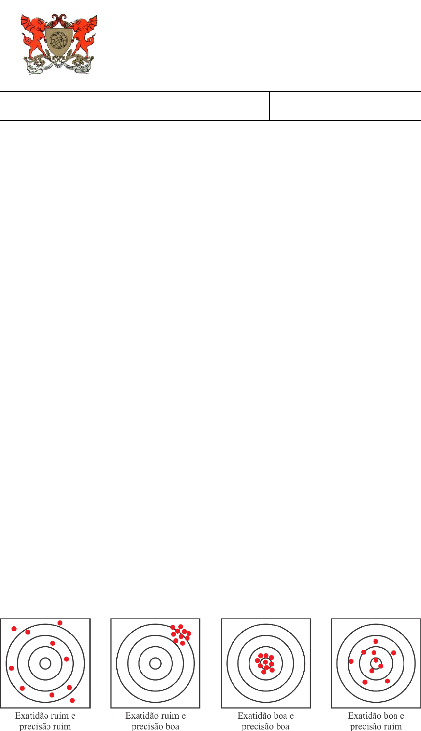 1. O conceito de precisão e exatidão são frequentemente usados como sinônimos erroneamente. Em medidas experimentais, há uma distinção entre ambos. De acordo com o “Vocabulário Internacional de Metrologia: Conceitos fundamentais e gerais e termos associados (VIM 2012). Duque de Caxias, RJ: INMETRO, 2012.”, a exatidão de medição é definida como: “Grau de concordância entre um valor medido e um valor verdadeiro dum mensurando.” E a precisão de medição é definida como: “Grau de concordância entre indicações ou valores medidos, obtidos por medições repetidas, no mesmo objeto ou em objetos similares, sob condições especificadas.”. Além disso, o Vocabulário Internacional de Metrologia ainda adiciona algumas notas acerca de tais conceitos como: A “exatidão de medição” não é uma grandeza e não lhe é atribuído um valor numérico. Uma medição é dita mais exata quando fornece um erro de medição menor. O termo “exatidão de medição” não deve ser utilizado no lugar de veracidade de medição, assim como o termo “precisão de medição” não deve ser utilizado para expressar exatidão de medição, o qual, contudo, está relacionado a ambos os conceitos. A precisão de medição é geralmente expressa numericamente por características como o desvio-padrão, a variância ou o coeficiente de variação, sob condições especificadas de medição. A precisão de medição é utilizada para definir a repetibilidade de medição, a precisão intermediária de medição e a reprodutibilidade de medição. O termo “precisão de medição” é algumas vezes utilizado, erroneamente, para designar a exatidão de medição. Portanto, a exatidão significa o quão próximo podemos chegar do valor mais provável de uma grandeza mediante um instrumento de medida. E a precisão representa a dispersão estatística em torno de um valor medido (repetibilidade do resultado e concordância de valores numéricos). Uma menor dispersão estatística para uma grandeza significa um maior número de algarismos significativos. Entretanto, uma alto grau de precisão não significa um alto grau de exatidão. Pode-se, então, realizar uma analogia, considerando alvos como na figura abaixo, para ilustrar os conceitos de exatidão e precisão. O valor mais provável para uma grandeza em tal analogia é o centro do alvo. LISTA DE EXERCÍCIOS 1 UNIVERSIDADE FEDERAL DE VIÇOSA CENTRO DE CIÊNCIAS EXATAS E TECNOLÓGICAS DEPARTAMENTO DE FÍSICA 1.1. Duas medidas independentes resultam em valores diferentes para o número π. Foram utilizadas as medidas do diâmetro e da circunferência para a determinação do número π, as quais resultaram nos valores 3,140 e 3,143. Considerando-se o valor mais provável como 3,142, qual valor possui um grau maior de exatidão? Justifique a sua resposta. 1.2. Dois experimentos independentes fornecem um conjunto de dados, cujos resultados acompanhados por suas incertezas são 2,5 ± 0,1 cm e 2,5 ± 0,2 cm. Qual experimento fornece um resultado mais preciso? Justifique a sua resposta. 2. Expresse os números listados abaixo com três algarismos significativos. Na primeira coluna, use a notação usual e na segunda coluna use potências de dez (10). 0,524 = 5280 = 15,08 = 0,060 = 14,3468 = 82,453 = 0,500 = 0,00010 = 0,0500 = 2.700.000.000 = 3. Um corpo de massa 5,00 kg move-se com uma velocidade constante de 3,050 m/s. Cal- cule o momento linear e escreva a sua resposta com o número de algarismos significativos correto. 4. Um corpo possui 63,9 cm3 de volume e 173,22 g de massa. Calcule a sua densidade e escreva a sua resposta com o número de algarismos significativos correto. 5. Considere um pêndulo simples como na ilustração ao lado, cujo período é dado por 𝑇 = 2𝜋√𝑙/𝑔, em que 𝑙 = 𝐿 + 𝑑/2 é o comprimento efetivo do pêndulo. Supondo-se que foram realizadas as seguintes medidas: 𝑇 = 1,72 s; 𝐿 = 72,54 cm e 𝑑 = 1,8453 cm. Calcule a aceleração da gravidade local 𝑔 e escreva a sua resposta com o número de algarismos signi- ficativos correto e mostre explicitamente como os algarismos foram avaliados durante o cálculo. 6. Um bloco retangular de madeira possui dimensões 11,2 cm x 3,4 cm x 4,10 cm. Deter- mine o volume do bloco com o número de algarismos significativos correto e mostre explicitamente como os algarismos foram avaliados durante o cálculo. 7. Em um experimento para determinar o valor do número π, um cilindro foi medido resul- tando em um valor médio para diâmetro e para a sua circunferência de 4,25 cm e 13,39 cm, respectivamente. Considerando-se tal experimento, qual é o valor experimental do número π com o número correto de algarismos significativas? Se o valor mais provável para o número π é 3,1416, qual é o desvio relativo percentual do valor experimental? 𝑑 𝐿 𝑙 8. Considere as quatro situações a seguir e escreva na forma correta de apresentação o valor da medida M, isto é, (m ± ∆m) u. Para isso, você deve avaliar a melhor estimativa para o resultado, juntamente com o intervalo provável. (i) Um carpinteiro relatou a medida de uma porta e declarou que sua melhor esti- mativa foi 210 cm e que ele estava seguro de que a altura estava entre 205 e 215 cm. (ii) Pode-se determinar razoavelmente o comprimento de um objeto utilizando uma régua (com marcações separadas por 1 mm). O comprimento é mais próximo de 36,0 mm do que 35,0 ou 37,0 mm, o qual possui um intervalo provável de 35,5 a 36,5 mm. (iii) As marcações de um voltímetro apresentam uma medida, cuja melhor estimativa é 5,3 volts e intervalo provável de 5,2 a 5,4 volts. (iv) É realizada apenas uma medida do período de um pêndulo, cujo valor é 2,3 s. A partir de uma medição fica difícil obter uma informação mais correta sobre a incerteza do experimento. Portanto, repetindo-se a medida, chega-se a uma se- quência de medida dada por: 2,3 s; 2,4 s; 2,5 s; 2,4 s. 9. Considere que u
