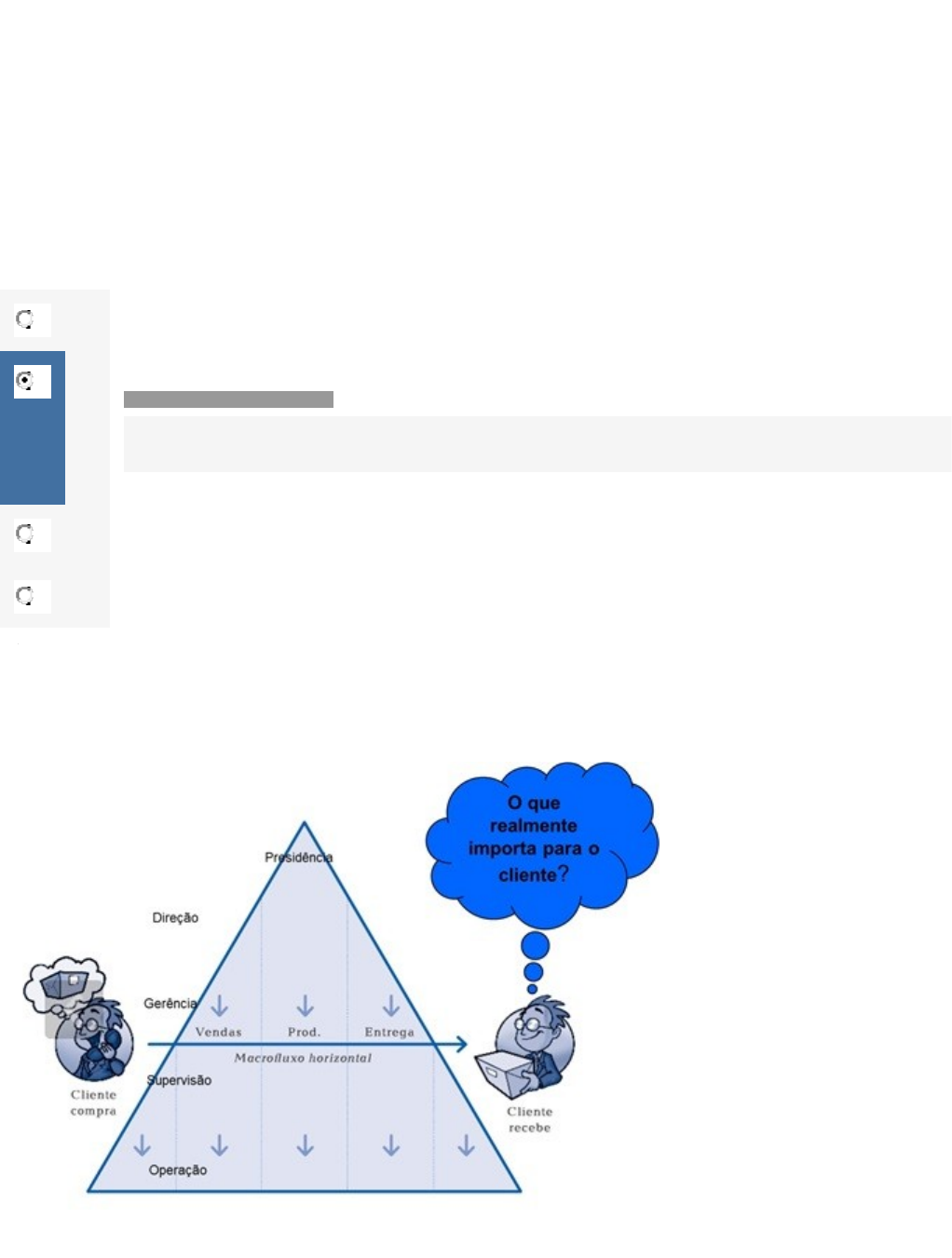 Questão 1/5 SEGURANÇA NO TRABALHO E ERGONOMIA Você foi recém contratado para trabalhar em uma indústria e, durante a sua entrevista, disseram-lhe que o número de acidentes de trabalho vêm crescendo. A sua função será implantar os conceitos e conhecimentos sobre segurança do trabalho, dar palestras sobre o tema e acompanhar as rotinas diárias para verificar se os conceitos estão sendo aplicados. Há uma maneira considerada ideal para iniciar sua atividade e atingir seu objetivo com sucesso. Analise as seguintes possibilidades e assinale a alternativa correta: A conversar, primeiramente, com os operadores e montadores para saber como ocorrem os acidentes. B conversar, inicialmente, com os diretores para conhecer a rotina de trabalho e entender onde estão as falhas. Você assinalou essa alternativa (B) Você acertou! Aula 1 - Tema 1 C conversar com todos juntos, patrões e empregados para entender o funcionamento da indústria. D espalhar cartazes instrutivos para que todos possam ler e tomar as devidas precauções. Questão 2/5 Verifique a figura abaixo. Fonte: Adaptado de M. Paranhos Filho (2007), pg. 51. A figura apresenta os fluxos de processos que podem ocorrer dentro das empresas. Baseado no que já foi visto nos parágrafos anteriores, a(s) principal(is) mensagem(ns) desta ilustração é(são): I. Mostrar a importância do cliente em conhecer os fluxos de processo da empresa da qual pretende adquirir um produto; II. Definir que o centro da mudança organizacional está no foco da empresa; III. Mostrar que o macro fluxo de processo horizontal na ilustração representa a organização por processos; IV. Salientar que a estrutura funcional deve ser conduzida através da integração entre cliente, departamentos e hierarquia vertical. Assinale a alternativa abaixo que contém apenas afirmações verdadeiras: A II e III estão corretas B Apenas a afirmativa II é correta C I e IV estão corretas D Apenas a afirmativa III está correta Você assinalou essa alternativa (D) Você acertou! O grande desafio para gestão das empresas está na dificuldade de romper barreiras entre um modelo tradicional de estrutura funcional (visão vertical da empresa) para um modelo de organização por processos (visão horizontal). Texto da Aula 4 - Tema 1 - Pg. 6 Questão 3/5 SEGURANÇA NO TRABALHO E ERGONOMIA As atividades da OIT precisaram ser interrompidas devido ao início da Segunda Guerra Mundial. Com isso, a sua sede em Genebra foi transferida para Montreal e, antes do final da guerra, a OIT adotou a Declaração da Filadélfia como parte de seus princípios e objetivos. Qual das alternativas traz corretamente alguns desses princípios e objetivos? A O trabalho é fonte de dignidade e todos têm direito ao trabalho. Você assinalou essa alternativa (A) Você acertou! Aula 1, Tema 1 B A pobreza jamais será tratada como ameaça à prosperidade. C O trabalho, entendido como uma mercadoria, deve ser fonte de dignidade. D O trabalho, como fonte de dignidade, pode ser tratado como mercadoria. Questão 4/5 SEGURANÇA NO TRABALHO E ERGONOMIA Como você já sabe, a OIT surgiu em 1919 em Genebra (Suíça) e o Brasil foi um dos membros fundadores e participa assiduamente das Conferências Internacionais. Durante a conferência inicial já adotaram-se seis convenções e até 1939, já eram 67 convenções. Em uma de suas conferências a OIT adotou a Declaração dos Direitos e Princípios Fundamentais no Trabalho. Em que conferência esse fato ocorreu e o que estabelecia essa Declaração? Assinale a alternativa correta. A Na 67a Conferência e a Declaração estabelecia o respeito à liberdade sindical e a abolição do trabalho infantil. B Na 87a Conferência e a Declaração estabelecia o respeito à liberdade sindical e a abolição do trabalho feminino. C Na 87a Conferência e a Declaração estabelecia o respeito à liberdade de trabalho e a liberdade sindical. D Na 87a Conferência e a Declaração estabelecia o respeito à liberdade sindical e a eliminação do trabalho forçado. Você assinalou essa alternativa (D) Você acertou! Aula 1 - Tema 1. Questão 5/5 A empresa Vanguarda (nome fictício) é uma indústria fabricante de produtos têxteis (roupas masculinas e femininas para o público jovem). Para atender a entrada da estação da primavera, um cliente que representa uma grande loja de departamentos fêz uma solicitação ao departamento comercial para criação e produção de uma coleção exclusiva para estação da primavera que se iniciaria em 6 meses. O departamento comercial, solicitou ao departamento de criação o desenvolvimento da coleção. Paralelo, foi solicitado ao departamento de manufatura a produção das roupas. Para que fossem confeccionadas estas roupas, foi necessário a compra de insumos para produção (tecidos, linhas, botões, zíperes, etc.). O departamento financeiro, através de suprimentos realizou a compra dos insumos para pagamento em 28 dias. Até este determinado ponto, tudo ocorria dentro da normalidade, porém alguns problemas vieram a ocorrer: 1. Atraso na entrega dos produtos para o cliente; 2. Discrepância no fluxo de caixa da empresa; 3. Erros na combinação (“mix”) dos produtos. Segue abaixo o fluxo organizacional da empresa (resumo): Fonte: Elaborado pelo Autor Como ocorre na maioria das empresas, a gestão ocorre de maneira funcional. De acordo com o fluxo estabelecido e com as informações acima, um dos motivos que “pode” ter causado estes problemas foi: A Comunicação ineficiente da presidência. B Falta de poder de barganha junto ao cliente. C Ausência de uma gestão de processos. Você assinalou essa alternativa (C) Você acertou! Texto da Aula 4 - Tema 1 - Pg. 8 D O ocorrido é inerente a qualquer organização. Questão 1/5 SEGURANÇA NO TRABALHO E ERGONOMIA Sempre que falamos em segurança e saúde do trabalhador, devemos ter em mente que a responsabilidade em fornecer meios que possibilitem o trabalho seguro é do e