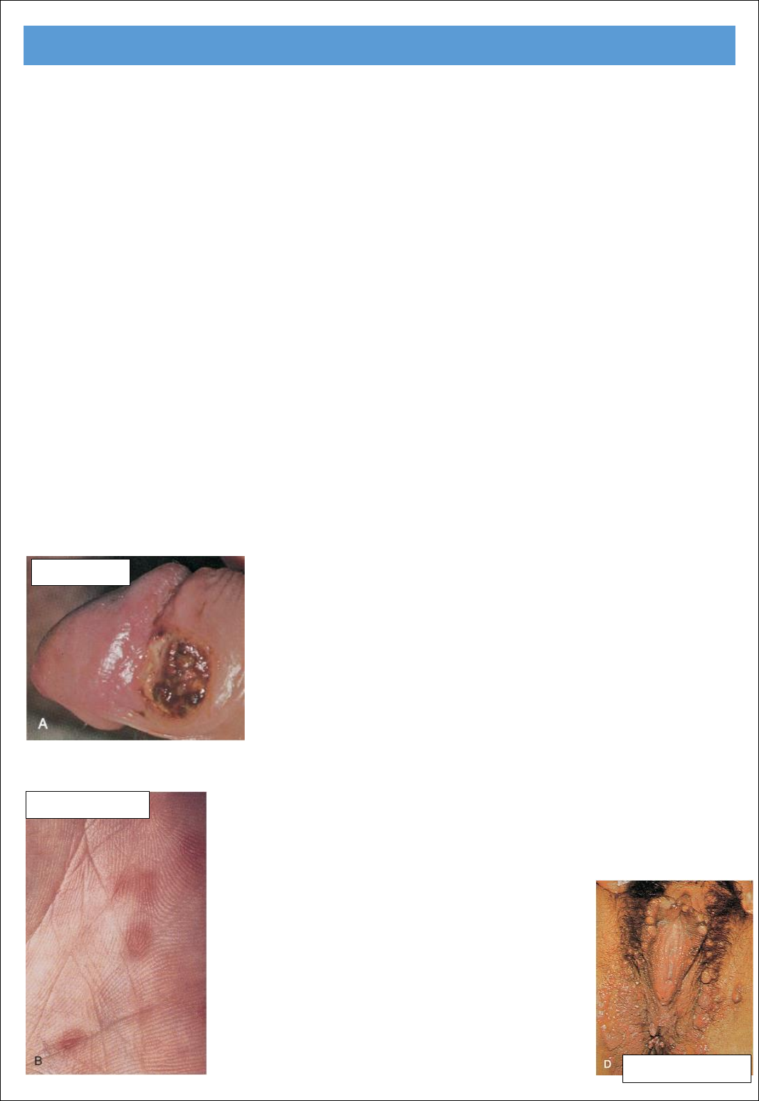 SÍFILIS A sífilis é uma infecção bacteriana sistêmica, crônica, curável e exclusiva do ser humano. Seu agente etiológico é o Treponema pallidum. Quando não tratada, evolui para estágios de gravidade variada, podendo acometer diversos órgãos e sistemas do corpo; as formas mais graves acometendo, especialmente, os sistemas nervoso e cardiovascular. Sua transmissão se dá principalmente pelo contato sexual, contudo, pode ser transmitida verticalmente para o feto durante a gestação de uma mulher com sífilis não tratada ou tratada de forma não adequada. Na gestação, pode ocorrer consequências severas, como abortamento, prematuridade, natimortalidade, manifestações congênitas precoces ou tardias e/ou morte do recém-nascido. O Brasil apresenta uma reemergência da doença. TRANSMISSÃO Transmissibilidade maior nos estágios iniciais, devido riqueza de treponemas nas lesões que são comuns na sífilis primaria (cancro duro) e secundaria (lesões muco-cutâneas) essas lesões se tornam raras ou inexistentes a partir do segundo ano da doença. A transmissibilidade diminui gradualmente com o passar do tempo (sífilis latente recente/tardia). As espiroquetas penetram diretamente nas membranas mucosas ou entram por abrasões na pele. A transmissão vertical pode ocorrer intraútero (80%) ou durante o parto vaginal se a mãe apresentar alguma lesão sifilítica. CLASSIFICAÇÃO CLÍNICA DA SÍFILIS Sífilis primária Incubação de 10 a 90 dias. A primeira manifestação é o cancro duro: úlcera indolor, de base endurecida e limpa, borda bem definida e regular são em sua maioria únicos e aparecem no local da possível inoculação do espiroqueta, a lesão não tratada desaparece após três a oito semanas e deixa cicatriz tênue. O cancro está habitualmente associado à adenopatia regional, que pode ser unilateral ou bilateral. Sífilis secundária Ocorre entre seis semanas e seis meses após a cicatrização do cancro. Inicialmente apresenta-se uma erupção macular eritematosa pouco visível (roséola) principalmente no tronco e raiz dos membros progridem para lesões mais evidentes, papulosas e eritemato- acastanhadas, que podem atingir todo o tegumento, sendo frequentes nos genitais; habitualmente, atigem a região plantar e palmar, com um colarinho de escamação característico, em geral não pruriginosa. São comuns as placas mucosas, assim como lesões acinzentadas e pouco visíveis nas mucosas. Podem ser identificados condilomas planos nas dobras mucosas, especialmente na área anogenital lesões úmidas e vegetantes. Cancro duro Lesões palmares Condiloma plano São comuns sintomas inespecíficos como febre baixa, mal-estar, cefaleia e adinamia. A sintomatologia desaparece em alguns dias, trazendo a falsa impressão de cura. OBS.: toda erupção cutânea sem causa determinadas deve ser investigada com testes para sífilis. Sífilis latente Não se observa nenhum sinal ou sintoma 25% dos pacientes não tratados intercalam lesões de secundarismo com períodos de latência. Dividida em latente recente (até um ano de infecção) e latente tardia (mais de um ano de infecção). O diagnóstico se faz exclusivamente pela reatividade dos testes treponêmicos e não treponêmicos. Sífilis terciária Ocorre após um período variável de latência entre 1 e 40 anos depois do início da infecção. Verifica-se a formação de gomas sifilíticas (tumorações com tendência a liquefação). A inflamação causada pela sífilis nesse estágio provoca destruição tecidual acometendo sistema nervoso, sistema cardiovascular, pele, mucosas, ossos ou qualquer tecido. As lesões podem causar desfiguração, incapacidade e até a morte. MÉTODOS DIAGNÓSTICOS Os testes utilizados para diagnóstico de sífilis são divididos em duas categorias: Exames diretos e testes imunológicos. Exames diretos: pesquisa ou detecção do T. pallidum em amostras coletadas diretamente das lesões. Exame em campo escuro Pesquisa direta com material corado Placas mucosas Testes imunológicos: realização de pesquisa de anticorpos em amostras de sangue total, soro ou plasma. São subdivididos em duas classes, os treponêmicos e os não treponêmicos. Testes treponêmicos: detectam anticorpos específicos produzidos contra os antígenos de T. pallidum. São os primeiros a se tornarem reagentes e em 85% dos casos permanecem reagentes por toda a vida, mesmo após o tratamento não são indicados para o monitoramento da resposta ao tratamento. São práticos e de fácil execução, com amostras de sangue total colhidas por punção digital ou venosa. Testes não treponêmicos: detectam anticorpos anticardiolipina não específicos para os antígenos do T. pallidum. Permite a análise qualitativa e quantitativa; observada a reatividade no teste, a amostra deve ser diluída em um fator dois de diluição, até a última diluição em que não haja mais reatividade no teste. Os testes não treponêmicos são utilizados para o diagnóstico e também para o monitoramento da resposta ao tratamento e controle de cura tornam-se reagentes cerca de uma a três semanas após o aparecimento do cancro duro, sendo que pessoas com títulos baixos sem registro de tratamento e sem data de infecção conhecida, são consideradas como portadoras de sífilis latente tardia e devem ser tratadas. DIAGNÓSTICO Escolha dos testes imunológicos Sempre que possível iniciar a investigação por um teste treponêmico pois tornam-se reagente primeiro. A combinação de testes sequenciais tem por objetivo aumentar o valor preditivo positivo de um resultado reagente no teste inicial. Interpretação dos testes imunológicos e conduta TRATAMENTO Benzilpenicilina benzatina é o medicamento de escolha única droga com eficácia documentada durante a gestação. Doxiciclina e ceftriaxona são opções para não gestantes, mas o acompanhamento clínico e laboratorial deve ser rigoroso para garantir resposta clínica e cura sorológi