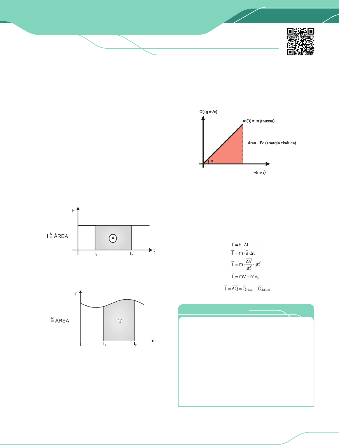 FÍSICA I PRÉ-VESTIBULAR 271SISTEMA PRODÍGIO DE ENSINO IMPULSO E QUANTIDADE DE MOVIMENTO21 IMPULSO DE UMA FORÇA CONSTANTE Defi ne-se impulso ( I ) de uma força de módulo constante como sendo o produto da força (F) pelo intervalo de tempo (∆t) durante o qual ela agiu sobre o corpo. I F t= ⋅∆ O módulo do impulso ou impulsão de uma força constante é obtido pelo produto do módulo da força pelo valor do intervalo de tempo. Como ∆t é sempre positivo, a direção e o sentido do impulso serão os mesmos da força. Unidade de impulso no SI: [ I ] = N ⋅ s GRÁFICO F × T Através do gráfi co da força em função do tempo, podemos calcular o impulso aplicado através do cálculo da área abaixo da curva. • Força constante Para o cálculo do impulso aplicado por forças de intensidade variáveis, devemos utilizar a propriedade do gráfi co da força em função do tempo. • Força variável QUANTIDADE DE MOVIMENTO QUANTIDADE DE MOVIMENTO DE UM PONTO MATERIAL Quando um ponto material de massa m possui velocidade V dizemos que ele possui uma quantidade de movimento ou momento linear (Q) dada pelo produto de sua massa (m) pela sua velocidade (V) . Sua direção e seu sentido são os mesmos de sua velocidade. Q m V= ⋅ A unidade da quantidade de movimento é: [ Q ] = kg⋅m/s TEOREMA DO IMPULSO Quando um corpo tem sua velocidade alterada, tem também sua quantidade de movimento alterada. Para que a velocidade seja alterada, é necessária a atuação de uma força resultante diferente de zero durante um certo intervalo de tempo, dessa forma, podemos afi rmar que aplicou-se um impulso ao corpo. Através do Teorema do Impulso, sabemos que a variação da quantidade de movimento é igual ao impulso aplicado. 01. (UNICAMP) Beisebol é um esporte que envolve o arremesso, com a mão, de uma bola de 140 g de massa na direção de outro jogador que irá rebatê-la com um taco sólido. Considere que, em um arremesso, o módulo da velocidade da bola chegou a 162 km/h, imediatamente após deixar a mão do arremessador. Sabendo que o tempo de contato entre a bola e a mão do jogador foi de 0,07 s, o módulo da força média aplicada na bola foi de a) 324,0 N b) 90,0 N c) 6,3 N d) 11,3 N e) 4,8 N EXERCÍCIO RESOLVIDO PRÉ-VESTIBULAR272 FÍSICA I 21 IMPULSO E QUANTIDADE DE MOVIMENTO SISTEMA PRODÍGIO DE ENSINO Resolução: B Dados: m = 140g = 0,14 kg; V0 = 0; V 162km/h = 45m/s Como não há variação na direção do movimento durante o processo de aceleração, podemos usar o Teorema do Impulso na forma modular: F m v 0,14 45I Q F t m v F t 0,07 F 90 N. ∆ × = ∆ ⇒ ∆ = ∆ ⇒ = = ⇒ ∆ = 02. (PUC-PR) A figura a seguir ilustra uma visão superior de uma mesa de sinuca, onde uma bola de massa 400 g atinge a tabela com um ângulo de 60º com a normal e ricocheteia formando o mesmo ângulo com a normal. A velocidade da bola, de 9 m/s, altera apenas a direção do movimento durante o choque, que tem uma duração de 10 ms. A partir da situação descrita acima, a bola exerce uma força média na tabela da mesa de: a) 360 N b) 5400 N c) 3600 N d) 4000 N e) 600 N Resolução: A Para a resolução da questão usaremos o teorema do Impulso I Q= ∆ (1) I = impulso da força média em N/s; Q∆ = variação da quantidade de movimento em kg m/s que é calculada vetorialmente, como vemos nas figuras: f iQ Q Q∆ = − (2) EXERCÍCIO RESOLVIDO Nota-se que o triângulo formado é equilátero, pois todos os ângulos internos são iguais entre si, sendo assim, a variação da quantidade de movimento Q∆ é exatamente igual à quantidade de movimento inicial iQ e final fQ , isto é, em módulo i m mQ Q m v 0,4kg 9 3,6kg s s ∆ = = ⋅ = ⋅ = Sabendo que o módulo do Impulso é dado por: mI F t= ⋅ (3) Juntando as equações (3) e (1), temos: mF t Q⋅ = ∆ (4) De onde sai a força média da colisão da bola com a tabela, em módulo: m 3 Q 3,6NsF 360N t 10 10 s− ∆ = = = ⋅ ↓ 10 ms = 10⋅10-3 segundos 03. (UFRGS) Um bloco de massa 1 kg move-se retilineamente com velocidade de módulo constante igual a 3 m/s, sobre urna superfície horizontal sem atrito. A partir de dado instante, o bloco recebe o impulso de sua força externa aplicada na mesma direção e sentido de seu movimento. A intensidade dessa força, em função do tempo, é dada pelo gráfico abaixo. A partir desse gráfico, pode-se afirmar que o módulo da velocidade do bloco após o impulso recebido é, em m/s, de a) -6. b) 1. c) 5. d) 7. e) 9. PRÉ-VESTIBULAR 21 IMPULSO E QUANTIDADE DE MOVIMENTO 273 FÍSICA I SISTEMA PRODÍGIO DE ENSINO Resolução: E O Impulso recebido é numericamente igual à “área” entre a linha do gráfi co e o eixo t. F F 2 1I 4 I 6 N s. 2 + = × ⇒ = ⋅ Se a referida força é a resultante, podemos aplicar o Teorema do Impulso. ( ) ( )0R RI Q I m v v 6 1 v 3 v 9 m/s. = ∆ ⇒ = − ⇒ = − ⇒ = O aluno não deve esquecer que, como a quantidade de movimento é uma grandeza vetorial, a subtração (∆Q = QF– QI) deverá ser feita vetorialmente. PRINCÍPIO DA CONSERVAÇÃO DA QUANTIDADE DE MOVIMENTO Num sistema isolado, a quantidade de movimento permanece constante. ANTES DEPOISQ Q= Um sistema mecânico é considerado isolado de forças externas quando a resultante das forças externas que atuam sobre ele for igual a zero, portanto: Vale mais uma vez lembrar que a quantidade de movimento se trata de grandeza vetorial, e por isso o seu módulo, direção e sentido devem permanecer constantes. Sistemas Mecanicamente Isolados e Sistemas Conservativos Sistema Isolado: a quantidade de movimento do sistema é constante. Sistema cujas forças externas são nulas. Sistema Conservativo: a energia mecânica do sistema é constante, não há trabalho de forças dissipativas. Um sistema pode ser isolado e conservativo, isolado e não conservativo, não isolado e conservativo, não isolado e não conservativo. Perceba que ser isolado e ser conservativo são casos independentes. PROEXPLICA QUANTIDADE