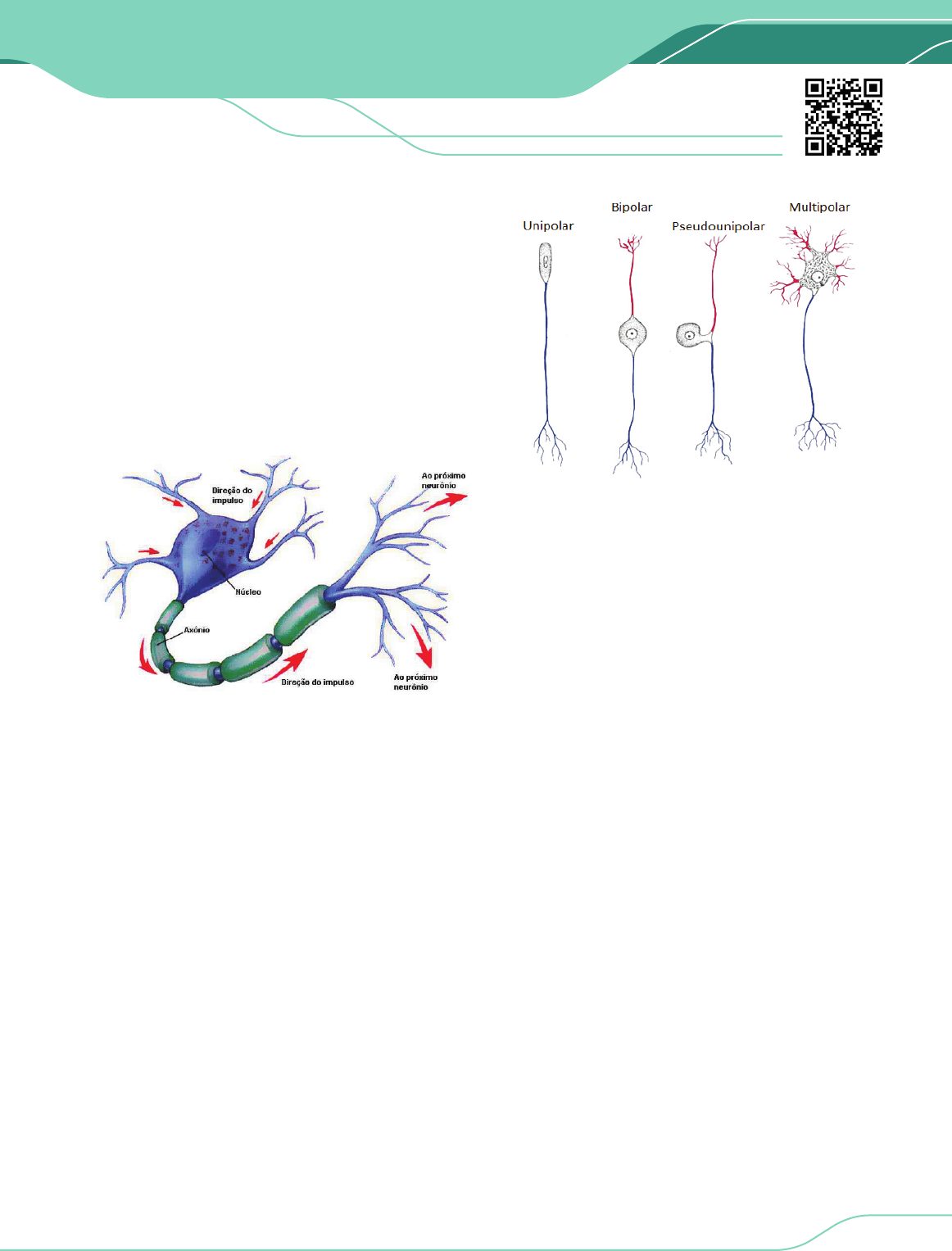 BIOLOGIA I PRÉ-VESTIBULAR 157SISTEMA PRODÍGIO DE ENSINO TECIDO NERVOSO23 A capacidade de perceber estímulos internos e externos ao nosso organismo é característica fundamental para nos mantermos em equilíbrio fisiológico. Esta função, desempenhada pelos órgãos do sistema nervoso, tem como principal ator o tecido nervoso que se espalha como uma rede por todo o nosso corpo, captando e emitindo sinais que controlam atividades desde a movimentação até a produção de energia. NEURÔNIOS São células extremamente especializadas que, desta forma, apresentam baixíssimo potencial mitótico. Sua morfologia, rica em prolongamentos, possibilita a conexão com os mais variados tipos celulares, pertencentes ou não ao próprio tecido nervoso. Como modelo genérico para um neurônio devemos imaginar uma célula dividida em três porções: dendritos, corpos celular e axônio. • Dendritos: prolongamentos numerosos, espe cializados na função de receber os estímulos do meio ambiente, de células epiteliais sensoriais ou de outros neurônios. • Corpo celular: região na qual se encontra o núcleo da célula, apresenta elevada capacidade de processamento de informações metabólicas que culminam na síntese de proteínas específicas que ditam o comportamento da célula. • Axônio: prolongamento único e, em geral, mais comprido, é especializado na condução de impulsos que transmitem informações de um neurônio a outra célula. • Bainha de mielina: atua como um isolamento elétrico e aumenta a velocidade de propagação do impulso nervoso ao longo do axônio. TIPOS DE NEURÔNIOS Nem sempre as regiões de um neurônio são tão bem definidas como no modelo geral descrito anteriormente. Assim, é possível encontrar neurônios com diferentes morfologias que são classificados como: unipolares, bipolares, pseudounipolares e multipolares. Neurônios unipolares apresentam uma região bem definida de corpo celular, mas não possuem dendritos, sendo seu único prolongamento responsável por uma função axonal. Os neurônios bipolares possuem um corpo celular localizado entre dois prolongamentos, um dendrítico e outro axonal. Neurônios pseudounipolares parecem apresentar um único prolongamento, porém, como este sofre uma bifurcação, uma de suas extremidades atua como dendrito e outra como axônio. Por fim, neurônios mutipolares, mais típicos, apresentam um corpo celular rodeado por prolongamentos, sendo a maioria de dimensões reduzidas e função dendrítica, e um único mais comprido de função axonal. Veremos neste módulo que propagação de um impulso nervoso dependa da troca de íons entre o citoplasma e o meio extracelular. Estes íons acabam por atuar, de uma forma simplificada, como cargas elétricas. Assim, quanto maior for a região do axônio onde estas trocas de cargas elétricas precisem ocorrer, mais tempo o impulso demorará para atingir a extremidade da célula. É no contexto de classificação dos neurônios quanto à velocidade de propagação do impulso nervoso que reparamos na presença da bainha de mielina. Esta substância de característica lipídica, produzida a partir de células especializadas conhecidas como células de Schwann (sistema nervoso periférico) ou oligodendrócitos (sistema nervoso central), reveste os axônios de maneira descontínua e acaba por “encurtar” a região a ser percorrida pelo impulso. Desta forma, neurônios mielinizados acabam por apresentar maior velocidade na condução de um impulso nervoso quando comparados a neurônios não mielinizados. Repare que no neurônio mielinizado representado a seguir, as únicas regiões de seu axônio nas quais há trocas de cargas elétricas são os espaços de descontinuidade entre regiões da bainha de mielina, os nódulos de Ranvier. Como o impulso nervoso não percorre todo o axônio de neurônios mielinizados, o caracterizamos como um impulso saltatório, em oposição ao impulso contínuo característico dos neurônios não mielinizados. PRÉ-VESTIBULAR158 BIOLOGIA I 23 TECIDO NERVOSO SISTEMA PRODÍGIO DE ENSINO CÉLULAS DA GLIA Como qualquer tipo de tecido, o tecido nervoso também apresenta diferentes tipos celulares. Apesar do grande destaque dado aos neurônios, seu grau de especialização é tão grande que mesmo funções básicas de sobrevivência acabam sendo desempenhadas por células de suporte fisiológico, as células da glia: • Oligodendrócito: responsável pela síntese da bainha de mielina no sistema nervoso central. • Célula de Schwann: responsável pela síntese da bainha de mielina no sistema nervoso periférico. • Microglia: responsável pela defesa do tecido contra patógenos e pela reciclagem de moléculas provenientes de células mortas. • Astrócito: responsável pela conexão entre neurônios e vasos sanguíneos, possui inúmeros prolongamentos que aumentam sua superfície de contato e viabilizam sua função de nutrição. TRANSMISSÃO DO IMPULSO NERVOSO A função de um impulso nervoso é promover a liberação de mensageiros químicos (neurotransmissores) que se encontram em vesículas membranosas no interior do citoplasma dos neurônios. Esta liberação, no entanto, é facilitada pela desorganização da estrutura da membrana através da rápida passagem de íons do meio extracelular para o meio intracelular e vice-versa. É este fluxo de íons que, na verdade, batizamos de impulso nervoso. Para compreender as bases moleculares de um impulso devemos lembrar que um neurônio, como toda célula em nosso corpo, é polarizado. Isso significa dizer que sua membrana plasmática é carregada positivamente em sua face extracelular e negativamente na face citoplasmática. A diferença de polarização é causada pela variação da concentração de íons de sódio (Na+) e potássio (K+) dentro e fora da célula. Esta diferença estável é mantida à custa do ATP, pois o sódio é forçado a sair da célula enquanto o potássio é forçado a 