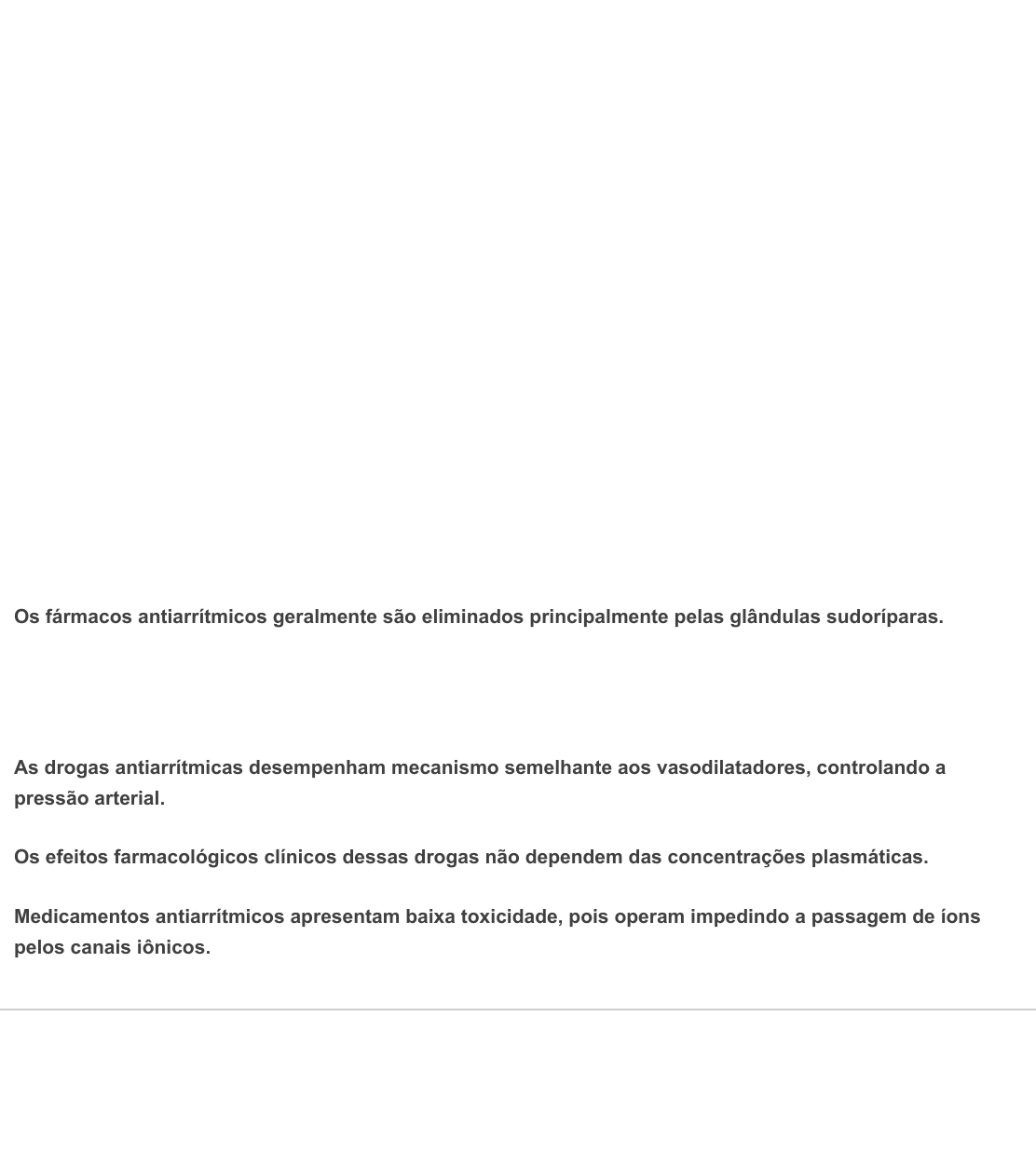 13/04/2023, 19:44 Comentários https://sereduc.blackboard.com/ultra/courses/_156006_1/outline/assessment/_7529679_1/overview/attempt/_25954662_1/review/inline-feedback… 1/8 Ocultar opções de resposta Pergunta 1 0 / 0 Leia o excerto abaixo: “Os benefícios da terapia medicamentosa antiarrítmica são claramente evidentes no cenário agudo, quando um paciente apresenta uma arritmia altamente sintomática, nesses casos a terapia medicamentosa termina em minutos. Nesse cenário, os benefícios sintomáticos são óbvios e o risco é minimizado porque os pacientes são monitorados e expostos ao medicamento apenas por breves períodos de tempo. Por outro lado, com a terapia crônica, o equilíbrio entre risco e benefício é mais difícil de avaliar. A terapia crônica em um paciente com doença cardíaca pode ser eficaz em um determinado momento, mas a eficácia pode ser perdida posteriormente devido a uma mudança no substrato. A terapia antiarrítmica crônica não é satisfatoriamente eficaz nos ensaios clínicos mais controlados, as consequências da recorrência da arritmia são clinicamente importantes e o risco de efeitos adversos graves parece aumentar ao longo do tempo.” RODEN, D. M.; DARBAR, D.; KANNANKERIL, P. J. Antiarrhythmic drugs. In: WILLERSON, J. T. et al. (eds.) Cardiovascular Medicine. London: Springer, 2007. As drogas antiarrítmicas são importantes moduladores de canais iônicos. Considere as informações presentes no texto e marque a alternativa que descreve corretamente o mecanismo de ação dessas drogas. Os fármacos antiarrítmicos geralmente são eliminados principalmente pelas glândulas sudoríparas. Resposta correta Bloqueadores de canais de iônicos com especificidade têm sido amplamente utilizados para o desenvolvimento de novos medicamentos antiarrítmicos. As drogas antiarrítmicas desempenham mecanismo semelhante aos vasodilatadores, controlando a pressão arterial. Os efeitos farmacológicos clínicos dessas drogas não dependem das concentrações plasmáticas. Medicamentos antiarrítmicos apresentam baixa toxicidade, pois operam impedindo a passagem de íons pelos canais iônicos. Pergunta 2 0 / 0 Leia o excerto abaixo: “Os diuréticos aumentam a taxa do débito e volume urinário e, consequentemente, a excreção de eletrólitos. Os diuréticos têm diferentes usos clínicos, já que possuem diferentes mecanismos de ação. Produzem diurese por inibição da reabsorção de sódio, e as diferentes classes atuam em segmentos distintos do sistema tubular renal. O aumento da eficácia terapêutica resulta do bloqueio de múltiplos locais do néfron, uma vez que um segmento pode compensar a reabsorção de sódio diminuída em outro. Dessa forma, os diuréticos têm sido recomendados para o tratamento de hipertensão arterial, hipervolemia, insuficiência cardíaca e distúrbios eletrolíticos.” 13/04/2023, 19:44 Comentários https://sereduc.blackboard.com/ultra/courses/_156006_1/outline/assessment/_7529679_1/overview/attempt/_25954662_1/review/inline-feedback… 2/8 Ocultar opções de resposta Ocultar opções de resposta ALMEIDA, L. M. et al. Diuréticos: um artigo de revisão. Revista Científica FAGOC-Saúde, v. 2, n. 1, p. 78-83, 2017. Diuréticos utilizados no tratamento de hipertensão arterial podem ser divididos em quatro grandes grupos. Considerando os diferentes agentes diuréticos utilizados na farmacologia clínica, marque a opção que descreve corretamente características dos diuréticos de alça. Os diuréticos de alça, como a furosemida, são os menos frequentemente prescritos. Os diuréticos de alça inibem a reabsorção de sódio na porção inicial do túbulo contornado distal. Esses diuréticos inibem a reabsorção ativa do sódio. Os diuréticos de alça não apresentam a ação natriurética. A farmacologia clínica dos diuréticos de alça ainda não foi elucidada, por isso, essa classe tem sido pouco utilizada. Resposta correta Os diuréticos de alça apresentam ação natriurética, bloqueando o transportador cloreto de sódio-potássio. Pergunta 3 0 / 0 Leia o excerto abaixo: “A Hipertensão Arterial Sistêmica é uma situação clínica de natureza multifatorial caracterizada por níveis de pressão arterial elevados. Apresenta alta prevalência na população mundial e no Brasil, com estimativa de que cerca de 15% dos indivíduos adultos podem ser considerados hipertensos. Diversas classes de anti-hipertensivos já demonstraram reduzir o risco cardiovascular e, na maioria dos casos, é necessário associar fármacos com mecanismos de ação diferentes. Além da evidência de benefício clínico, a escolha do anti-hipertensivo deve considerar diversos fatores, como as comorbidades do paciente, o perfil de efeitos adversos, interação medicamentosa, posologia e até mesmo o preço do fármaco no mercado.” MARTELLI, A.; LONGO, M. A. T.; SERIANI, C. Aspectos clínicos e mecanismo de ação das principais classes farmacológicas usadas no tratamento da hipertensão arterial sistêmica. Estudos de Biologia, v. 30, n. 70/72, 2008. Cada classe de drogas anti-hipertensivas apresenta um mecanismo de ação característico. Considerando as diferentes classes de anti-hipertensivos, marque a alternativa que descreve corretamente o mecanismo de ação do respectivo fármaco anti-hipertensivo. Resposta correta O mecanismo de ação dos diuréticos se relaciona inicialmente aos seus efeitos diuréticos e natriuréticos. 13/04/2023, 19:44 Comentários https://sereduc.blackboard.com/ultra/courses/_156006_1/outline/assessment/_7529679_1/overview/attempt/_25954662_1/review/inline-feedback… 3/8 Ocultar opções de resposta Os bloqueadores adrenérgicos são drogas que promovem a redução da resistência vascular periférica por diminuição da concentração de cálcio nas células musculares lisas vasculares. Bloqueadores dos canais de cálcio atuam na inibição simpática periférica, provocando diminuição do volume e