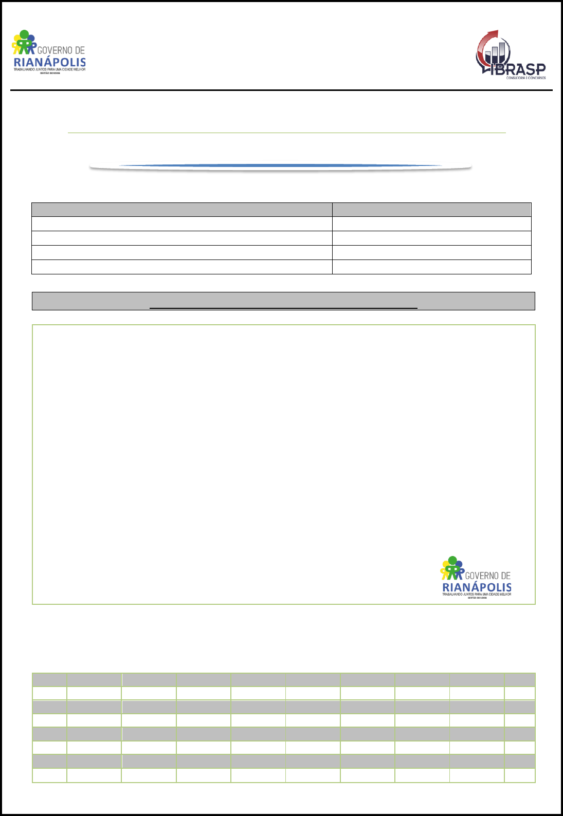 Página 1 de 8 PREFEITURA MUNICIPAL DE RIANÁPOLIS - GOIÁS CONCURSO PÚBLICO EDITAL Nº 001/2019 NÍVEL SUPERIOR CARGO: PROFESSOR P-I LICENCIATURA PLENA ESSE CADERNO CONTÉM 40 QUESTÕES COM AS SEGUINTES DISCIPLINAS; DISCIPLINAS QUANTIDADE DE QUESTÃO 01. LÍNGUA PORTUGUESA 01 a 10 02. GEO - HISTÓRIA DO BRASIL E DE GOIÁS 11 a 20 03. NOÇÕES DE DIREITO 21 a 30 04. CONHECIMENTOS ESPECÍFICOS 31 a 40 LEIA COM ATENÇÃO AS INSTRUÇÕES ABAIXO I. Verifique seu nome e números de inscrição se estão corretos no cartão de respostas. Se houver erro, notifique o fiscal. II. Assine e preencha o cartão de respostas nos locais indicados, somente com caneta azul ou preta. III. Verifique se a impressão, a paginação e a numeração das questões estão corretas. Caso observe qualquer erro, notifique o fiscal. IV. Você dispõe de 03 (três) horas para fazer esta prova. Reserve os 20 (vinte) minutos finais para marcar o cartão respostas. V. O candidato só poderá retirar –se do setor de prova 1 (uma) hora após seu início. VI. O candidato só poderá levar o caderno de provas quando estiver faltando 30 (trinta) minutos para o término. VII. Marque o cartão de respostas cobrindo fortemente o espaço correspondente à letra a ser assinalada, conforme o exemplo no próprio cartão de respostas. VIII. A leitora óptica não registrará as respostas em que houver falta de nitidez e/ou marcação de mais de uma alternativa. IX. O cartão de respostas não poderá ser dobrado, amassado, rasurado ou manchado. Exceto sua assinatura, nada deve ser escrito ou registrado fora dos locais destinados às respostas. X. Ao terminar a prova, entregue ao fiscal o cartão de repostas e este caderno. As observações ou marcações registradas no caderno não serão levadas em consideração. XI. É terminantemente proibido o uso de telefone celular, pager ou similares. Boa Prova! --------------------------------------------------------------------------------------------------------------------------------------------- DESTAQUE AQUI GABARITO DO CANDIDATO – RASCUNHO 01 02 03 04 05 06 07 08 09 10 11 12 13 14 15 16 17 18 19 20 21 22 23 24 25 26 27 28 29 30 31 32 33 34 35 36 37 38 39 40 Página 2 de 8 Página 3 Caderno de Questões – IBRASP – PROFESSOR P-I LICENCIATURA LÍNGUA PORTUGUESA Questão 01 Analise o trecho a seguir: A prevenção do câncer de mama não é totalmente possível em função da multiplicidade de fatores relacionados (1) ao surgimento da doença (2) e ao fato de vários deles não serem modificáveis. De modo geral, a prevenção (3) baseia-se no controle dos fatores de risco e no estímulo aos fatores protetores, especificamente aqueles considerados modificáveis (4). Os principais fatores de risco comportamentais relacionados ao desenvolvimento do câncer de mama são: excesso de peso corporal, falta de atividade física e consumo de bebidas alcoólicas. Com relação ao trecho acima, dos termos em destaque, referem-se ao Câncer de Mama: A) 1 e 3, apenas. B) 2 e 4, apenas. C) 1, 2 e 3, apenas. D) 1, 2, 3, 4. Questão 02 Leia o texto abaixo e escolha a opção que complete os espaços em branco corretamente, levando em consideração o emprego da crase. AMANDA NUNES MANTÉM O CINTURÃO COM MAIS UM NOCAUTE NO UFC Brasileira mandou _____ lona a ex-campeã Holly Holm. A baiana Amanda Nunes chegou _____ Las Vegas na madrugada desse domingo. A brasileira nocauteou a norte-americana Holly Holm no primeiro round, impedindo-a de lhe roubar o cinturão da categoria peso- galo (61kg). A Leoa é campeã também no peso-pena (66kg). O desempenho de Amanda Nunes no UFC faz dela, na atualidade, a melhor lutadora de MMA do mundo — muitos já a consideram a melhor da história por ter vencido, em sequência, _____ ex-campeãs Valentina Shevchenko, Miesha Tate, Ronda Rousey, Cris Cyborg e agora Holly Holm. Amanda chegou _____ marca de dez vitórias seguidas na organização. Além disso, ela conquistou o sétimo triunfo em lutas valendo o cinturão no UFC e superou _____ norte-americana Ronda Rousey, que tem seis. adaptado de: https://www.nsctotal.com.br/noticias/amanda-nunes-mantem-o- cinturao-com-mais-um-nocaute-no-ufc A) à, à, as, a, à. B) à, à, as, à, a. C) a, à, as, a, a. D) à, a, as, à, a. Questão 03 Analise os itens abaixo: I – Análise. II – História. III – Mágica. IV – Proverá. V – Empresários. Quais das palavras acima, ao perder o acento agudo, deixam de existir, na Língua Portuguesa? A) I, II e III, apenas. B) IV e V, apenas. C) III e V, apenas. D) I, II e IV, apenas. Questão 04 Considere os trechos da música “Uma canção pra você” do grupo, As Bahias e a Cozinha Mineira, e assinale a alternativa que não contenha sentido conotativo: A) Eu vou cantar Uma canção pra você Feita da tua imagem Diante da minha face [...] B) A jaqueta amarela Sobre a cama Você sabe qual é! Você sabe qual é! C) A jaqueta amarela E a dor do teu abraço não sentiu O frio... Através da janela. D) Cada carro Cada barro de pele num jarro de flor Cada sarro que mera pinga Cada cama que não me ama! Ama! Ama! Ama! Questão 05 Leia: “O homem é o único animal que ri! (Millôr Fernandes)” A pronominalização, na oração acima, ocorre por uso de: A) Pessoais. B) Demonstrativos. C) Relativos. D) Oblíquos. Questão 06 Qual das relações, abaixo, indica fim e começo? A) Epílogo e Prólogo. B) Conclusão e Síntese. C) Despedida e Saudade. D) Grosseria e Educação. https://www.nsctotal.com.br/noticias/amanda-nunes-mantem-o-cinturao-com-mais-um-nocaute-no-ufc https://www.nsctotal.com.br/noticias/amanda-nunes-mantem-o-cinturao-com-mais-um-nocaute-no-ufc Página 4 Caderno de Questões – IBRASP – PROFESSOR P-I LICENCIATURA Questão 07 Estão, corretamente, acentuadas, as seguintes palavras, exceto: A) Magnética. B) Enjôo. C) Emblemática. D) Corruptível. Questão 08 A única palavra que não se escreve com “sc” encontra- se em: A) adolescente. B) discípulo. C)
