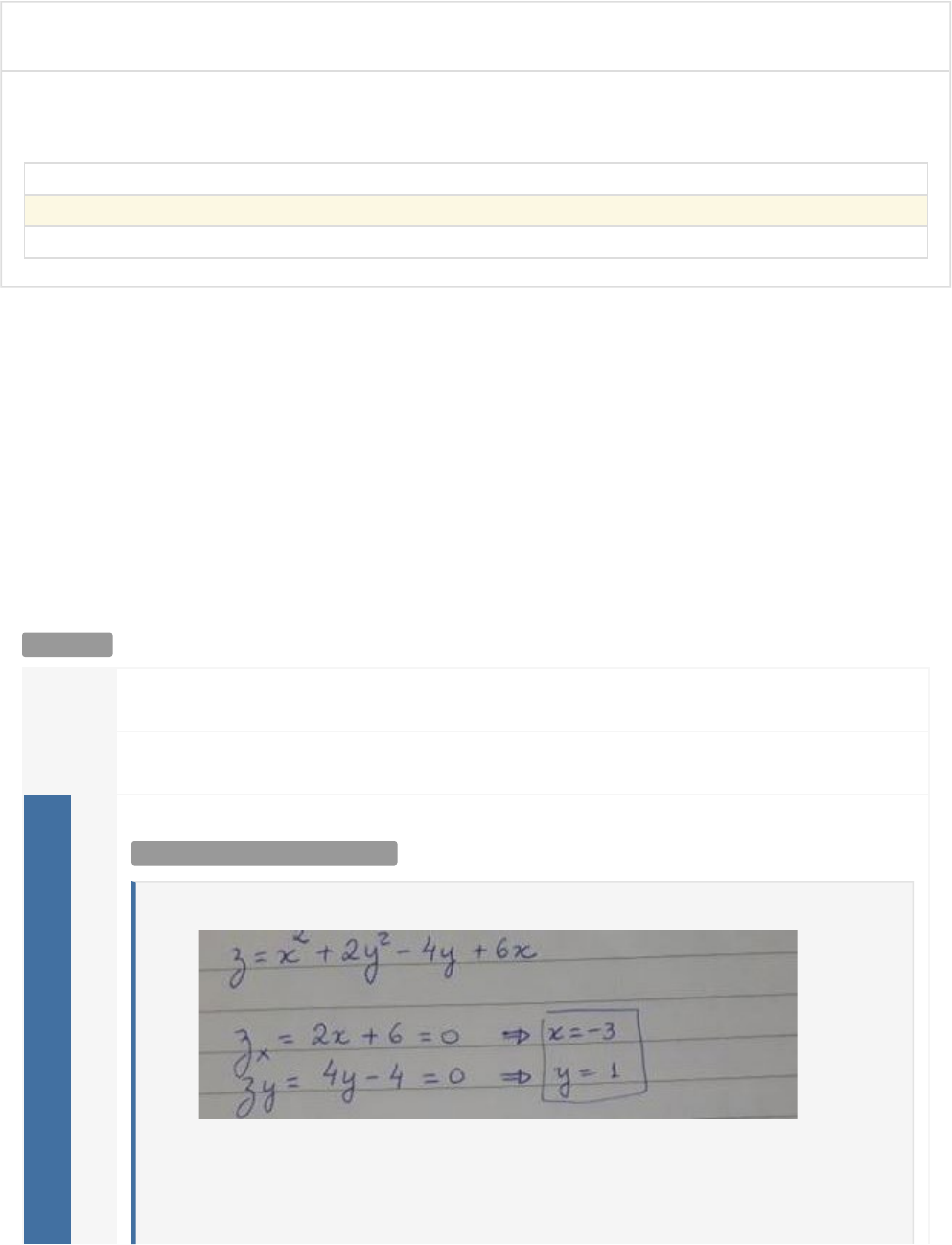 CURSO: BACHARELADO EM ENGENHARIA DE PRODUÇÃO - DISTÂNCIA Nota: 100 Disciplina(s): Cálculo Diferencial e Integral a Várias Variáveis Data de início: Prazo máximo entrega: Data de entrega: Questão 1/10 - Cálculo Diferencial e Integral a Várias Variáveis Determine e classifique os extremos da função z = x + 2 y - 4 y + 6 x Nota: 10.0 A Ponto de máximo em P (3 ; 1 ; 5) B Ponto de Sela em P (-3 ; 1; 5) C Ponto de Mínimo em P ( -3; 1 ;-11) Você assinalou essa alternativa (C) 2 2 Você acertou! . D Ponto de mínimo em P ( 0; 1; 5) Questão 2/10 - Cálculo Diferencial e Integral a Várias Variáveis . Nota: 10.0 A . B . C . Você assinalou essa alternativa (C) D . Você acertou! . Questão 3/10 - Cálculo Diferencial e Integral a Várias Variáveis . Nota: 10.0 A . B . Você assinalou essa alternativa (B) C . D . Questão 4/10 - Cálculo Diferencial e Integral a Várias Variáveis Considere a função . Determine o domínio: Nota: 10.0 A Todo o plano xy. B Plano xy, onde y<3x ou à direita da reta y=3x. Você assinalou essa alternativa (B) Você acertou! . Você acertou! C Plano xy, onde y>3x ou à esquerda da reta y=3x. D Somente na reta y=3x. Questão 5/10 - Cálculo Diferencial e Integral a Várias Variáveis . Nota: 10.0 A . B . C . D . Você assinalou essa alternativa (D) Questão 6/10 - Cálculo Diferencial e Integral a Várias Variáveis Determine e classifique os extremos da função: z = x + y - 3 x y Nota: 10.0 A Sela em P ( 0; 0; 0) e màximo em P ( 1; 1; -1) B Sela em P ( 1; 1; -1) e máximo em P ( 0; 0; 0) C Sela em P ( 0; 0; 0) e mínimo em P ( 1; 1; -1) Você assinalou essa alternativa (C) Você acertou! . 3 3 Você acertou! . D Mínimo em P ( 0; 0; 0) Questão 7/10 - Cálculo Diferencial e Integral a Várias Variáveis Considerando a função . Quais são as expressões das primeiras derivadas? Nota: 10.0 A B C Você assinalou essa alternativa (C) D Você acertou! Questão 8/10 - Cálculo Diferencial e Integral a Várias Variáveis Determine as derivadas parciais de primeira ordem para a função implícita Nota: 10.0 A . B . C . Você assinalou essa alternativa (C) D . Questão 9/10 - Cálculo Diferencial e Integral a Várias Variáveis Você acertou! . Nota: 10.0 A . B . Você assinalou essa alternativa (B) C . D . Questão 10/10 - Cálculo Diferencial e Integral a Várias Variáveis . Nota: 10.0 A 20t + 4s + 2 B 18t + 6s + 4 Você assinalou essa alternativa (B) Você acertou! . C 8t + 6s + 2 D 9t + 3s + 3 Você acertou! http://www.uninter.com/ CURSO: BACHARELADO EM ENGENHARIA DE PRODUÇÃO - DISTÂNCIA Nota: 100 Disciplina(s): Cálculo Diferencial e Integral a Várias Variáveis Data de início: Prazo máximo entrega: Data de entrega: Questão 1/10 - Cálculo Diferencial e Integral a Várias Variáveis Determine e classifique os extremos da função z = x + 2 y - 4 y + 6 x Nota: 10.0 A Ponto de máximo em P (3 ; 1 ; 5) B Ponto de Sela em P (-3 ; 1; 5) C Ponto de Mínimo em P ( -3; 1 ;-11) Você assinalou essa alternativa (C) 2 2 Você acertou! . D Ponto de mínimo em P ( 0; 1; 5) Questão 2/10 - Cálculo Diferencial e Integral a Várias Variáveis . Nota: 10.0 A . B . C . Você assinalou essa alternativa (C) D . Você acertou! . Questão 3/10 - Cálculo Diferencial e Integral a Várias Variáveis . Nota: 10.0 A . B . Você assinalou essa alternativa (B) C . D . Questão 4/10 - Cálculo Diferencial e Integral a Várias Variáveis Considere a função . Determine o domínio: Nota: 10.0 A Todo o plano xy. B Plano xy, onde y<3x ou à direita da reta y=3x. Você assinalou essa alternativa (B) Você acertou! . Você acertou! C Plano xy, onde y>3x ou à esquerda da reta y=3x. D Somente na reta y=3x. Questão 5/10 - Cálculo Diferencial e Integral a Várias Variáveis . Nota: 10.0 A . B . C . D . Você assinalou essa alternativa (D) Questão 6/10 - Cálculo Diferencial e Integral a Várias Variáveis Determine e classifique os extremos da função: z = x + y - 3 x y Nota: 10.0 A Sela em P ( 0; 0; 0) e màximo em P ( 1; 1; -1) B Sela em P ( 1; 1; -1) e máximo em P ( 0; 0; 0) C Sela em P ( 0; 0; 0) e mínimo em P ( 1; 1; -1) Você assinalou essa alternativa (C) Você acertou! . 3 3 Você acertou! . D Mínimo em P ( 0; 0; 0) Questão 7/10 - Cálculo Diferencial e Integral a Várias Variáveis Considerando a função . Quais são as expressões das primeiras derivadas? Nota: 10.0 A B C Você assinalou essa alternativa (C) D Você acertou! Questão 8/10 - Cálculo Diferencial e Integral a Várias Variáveis Determine as derivadas parciais de primeira ordem para a função implícita Nota: 10.0 A . B . C . Você assinalou essa alternativa (C) D . Questão 9/10 - Cálculo Diferencial e Integral a Várias Variáveis Você acertou! . Nota: 10.0 A . B . Você assinalou essa alternativa (B) C . D . Questão 10/10 - Cálculo Diferencial e Integral a Várias Variáveis . Nota: 10.0 A 20t + 4s + 2 B 18t + 6s + 4 Você assinalou essa alternativa (B) Você acertou! . C 8t + 6s + 2 D 9t + 3s + 3 Você acertou! http://www.uninter.com/ CURSO: BACHARELADO EM ENGENHARIA DE PRODUÇÃO Nota: 90 Disciplina(s): Cálculo Diferencial e Integral a Várias Variáveis Data de início: Prazo máximo entrega: Data de entrega: Questão 1/10 - Cálculo Diferencial e Integral a Várias Variáveis . Nota: 10.0 A B C D Você assinalou essa alternativa (D) Você acertou! Questão 2/10 - Cálculo Diferencial e Integral a Várias Variáveis Qual valor obtém-se para a integral : Nota: 10.0 A 125 B 98 Você assinalou essa alternativa (B) C 89 D 102 Questão 3/10 - Cálculo Diferencial e Integral a Várias Variáveis Considere R sendo a região definida entre as curvas x = 0 e 2 x = 4 - y Considerando x>= 0, calcule a integral abaixo sobre esta região: Nota: 0.0 A 10 / 3 Você assinalou essa alternativa (A) Você acertou! 2 2 B 11 / 2 C 8 / 3 D 11 / 3 Questão 4/10 - Cálculo Diferencial e Integral a Várias Variáveis . Fórmula: Nota: 10.0 A Você assinalou essa alternativa (A) B Você acertou! C D Quest