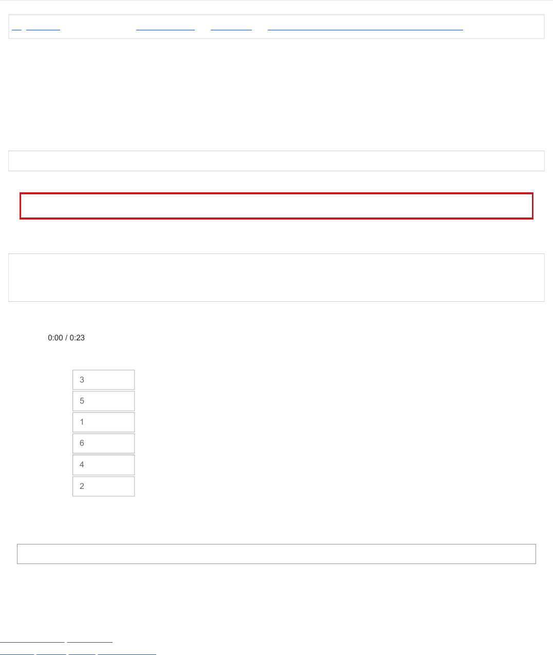 16/05/2023, 15:37 2.14 Teste seus conhecimentos: Christine's often sick: Revisão da tentativa https://aprendamais.mec.gov.br/mod/quiz/review.php?attempt=1717489&cmid=30008 1/1 Resumo de retenção de dados Obter o aplicativo para dispositivos móveis Página inicial / Meus cursos / INGLÊS52023A / 2 I feel sick / 2.14 Teste seus conhecimentos: Christine's often sick Iniciado em terça, 16 mai 2023, 15:35 Estado Finalizada Concluída em terça, 16 mai 2023, 15:36 Tempo empregado 50 segundos Notas 1,00/1,00 Avaliar 10,00 de um máximo de 10,00(100%) Informação Questão 1 Correto Atingiu 1,00 de 1,00 Christine is talking to Rosa about her diseases in the past year. Listen to her and number the diseases in the order they appear. earache flu mumps pneumonia diarrhea stomachache 0:000:00 / 0:23/ 0:23 3 5 1 6 4 2 ◄ 2.13 Time expressions Seguir para... 2.15 Was and Were ► https://aprendamais.mec.gov.br/admin/tool/dataprivacy/summary.php https://download.moodle.org/mobile?version=2020110904&lang=pt_br&iosappid=633359593&androidappid=com.moodle.moodlemobile https://aprendamais.mec.gov.br/ https://aprendamais.mec.gov.br/course/view.php?id=702 https://aprendamais.mec.gov.br/course/view.php?id=702#section-2 https://aprendamais.mec.gov.br/mod/quiz/view.php?id=30008 https://aprendamais.mec.gov.br/mod/page/view.php?id=30007&forceview=1 https://aprendamais.mec.gov.br/mod/page/view.php?id=30010&forceview=1
