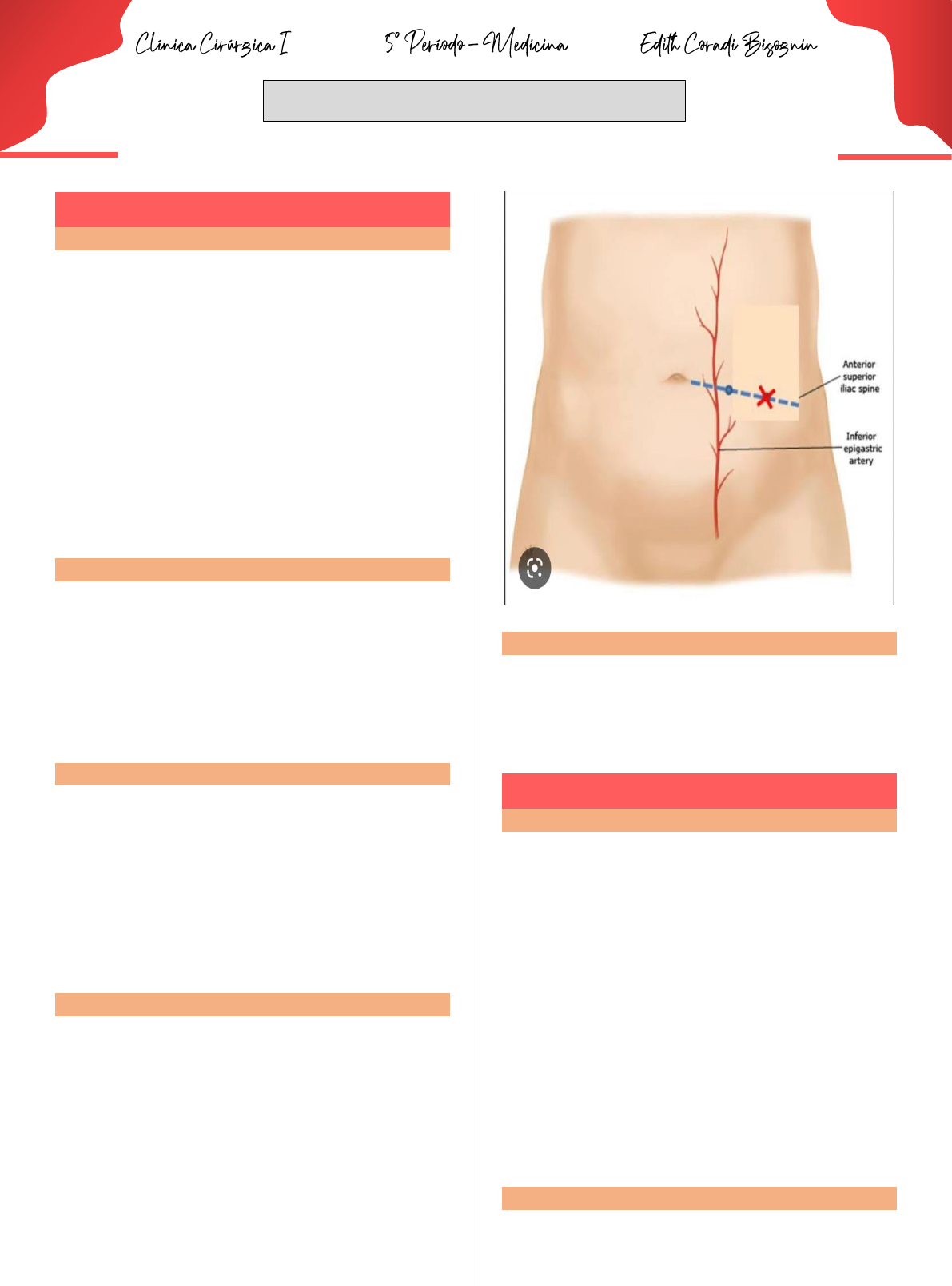 Paracentese, Toracocentese e drenagem pleural fechada PARACENTESE: Características: • Consiste na punção da cavidade abdominal para retirada de líquido ascético • Pode ser realizada a beira do leito • O diagnóstico se dá através da retirada de pequena quantidade para diagnóstico bioquímico e citológico • Tem caráter terapêutico também quando há retirada maior de líquido para aliviar o sintomas das grandes ascites (principalmente dor abdominal e dispneia pela compressão do líquido ascético) Indicações: • Avaliação do conteúdo ascético • Ascite de repetição ou grande volume • Avaliação do paciente com ascite e sinais de deterioração hemodinâmica (febre, dor abdominal, encefalopatia hepática • Suspeita de peritonite bacteriana espontânea Contraindicações: • Pacientes com coagulação intravascular disseminada • Distúrbios graves de coagulação • Hematomas ou infecções no sítio da punção • Cicatriz previa no local da punção/aderências intestinais • Gestação Técnica operatória: • Paciente em decúbito lateral • Antissepsia e materiais estéreis • Punção com agulha de grosso calibre no quadrante esquerdo do abdomen em uma linha imaginaria traçada da espinha ilíaca antero superior até a cicatriz umbilical • Anestesia com lidocaína • Inserção da agulha fazendo aspiração até saída do líquido Complicações: • Vazamento de líquido ascitico • Perfuração intestinal e de outros órgãos • Infecção • Sangramento TORACOCENTESE: Características: Procedimento para drenagem de líquido pleural Consiste no acesso a cavidade pleural para se realizar punção de agulha com objetivo de drenar líquido da cavidade pleural (derrame pleural) O RX deve ser realizado antes e após procedimento (antes para analisar a extensão e após para descartar ocorrência de complicações e avaliação da drenagem, se foi retirado líquido suficiente Sob anestesia local (lidocaína) Realizado a beira do leito Indicações: Pode servir para 1) Diagnostico: pesquisa de etiologia Clínica Cirúrgica I – Aula 9 2) Terapêutico: alívio dos sintomas (diminuição do comprometimento ventilatório) OBS: nas toracocenteses de alívio não pode se drenar mais de 1.500ml por vez devido ao risco de colapso pulmonar (edema pulmonar de expansão) e hipotensão. Contraindicações: • Coagulopatias • Ventilação mecânica com pressão ventilatória final positiva (PEEP) elevada • Pequenos derrames Técnica operatória: • Paciente sentado com braços cruzados em frente ao corpo apoiado em suporte firme • Pacientes que não podem ficar sentados ficam em decúbito lateral • Determinar o nível do derrame pela percussão (macicez) • Antissepsia do local a ser puncionado e anestesia local • Puncionar com agulha um espaço intercostal abaixo do nível do derrame, na porção superior da costela inferior e ao puncionar o líquido retirar a agulha e manter o cateter que poderá ser aspirado ou conectado ao tubo de drenagem • Após o término remover cateter e fazer curativo Complicações: • Pneumotórax • Infecção • Sangramento local • Tosse • Dor torácica • Hemotórax DRENAGEM PLEURAL FECHADA: Características: • Consiste em procedimento cirúrgico para restaurar ou manter a negatividade do espaço pleural, por meio da eliminação de qualquer conteúdo anômalo • O dreno é colocado através da parece torácica, resultando em drenagem do espaço pleural • Procedimento para drenagem contínua de líquido pleural através de um tubo inserido na cavidade pleural, conectado a um sistema de vácuo • O conteúdo anômalo a ser drenado pode ser pus, sangue, ar; qualquer um que comprometa a pleura comprimindo-a Indicações: Quando há necessidade de drenagem prolongada de um derrame pleural como em casos de: • Derrame pleural infectado • Empiema (pus na cavidade pleural) • linfa na cavidade pleural • pneumotórax • hemotórax • quilotórax • derrame pleural recidivante e sintomático • pós-operatório Técnica operatória: • Paciente em decúbito dorsal com braço ipsilateral estendido acima e flexionado no cotovelo • Antissepsia e campos estéreis • Identificar o local de inserção do dreno (5º espaço IC entre as linhas axilar anterior e média • Anestesia local incluindo periósteo da costela: bordo superior da costela inferior • Incisão com bisturi 2 a 3cm, paralela às costelas no local pré-determinado; • Divulsão dos tecidos até chegar a pleura parietal • Perfurar a pleura parietal com a ponta da pinça hemostática e fazer a digitalização do orifício • Avançar a colocação do dreno, direcionando- o posterior e ao ápice pulmonar; • Fixação do dreno à parede torácica • Conectar o dreno a um conector em “selo dágua” • Curativo estéril • Raio x tórax Complicações: • Pneumotórax • Infecção • Deslocamento do tubo • Hemorragia
