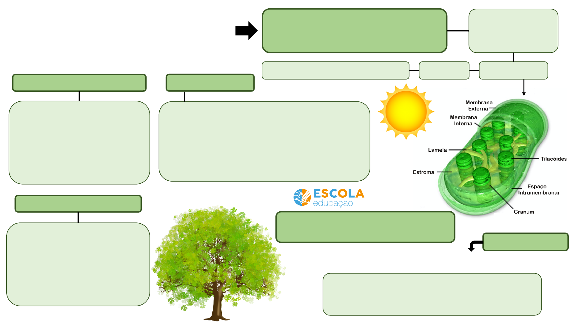 Fotossíntese Processo de produção de energia utilizado pelos seres clorofilados, chamados de fotossintetizantes Plantas, algas verdes, cianobactérias CloroplastosClorofilaAbsorve e armazena luz solar Fase fotoquímica (clara) Fase química (escura) Acontece nos tilacoides Absorção de luz solar Fotólise da água para liberar O2 Fotofosforilização acíclica e cíclica Produção de ATP Produção de NADPH Acontece no estroma Síntese da glicose Ocorre a fixação de CO2 com ajuda da enzima rubisco Produção de ADP e NAD para serem utilizados na fase fotoquímica 6 CO2 + 12 H2O + energia luminosa → C6H12O6 + 6 O2 + 6 H2O Equação geral A fotossíntese e a respiração celular são processos integrados. A energia gerada em uma é usada como reagente da outra e vice-versa. Na fotossíntese a energia luminosa do Sol é transformada em energia química A água provém do solo e o gás carbônico da atmosfera Condução de água é feita pelo xilema Condução de fotoassimilados é feita pelo floema. Características A fotossíntese produz glicose e libera gás oxigênio para a atmosfera