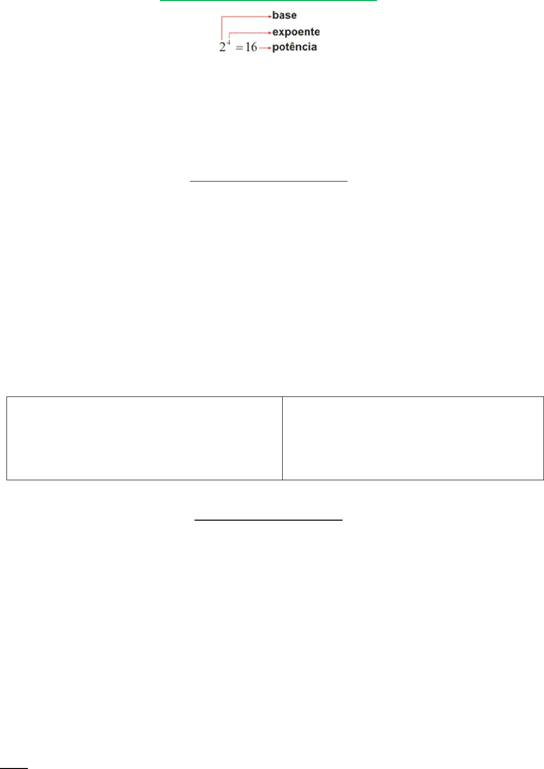Potenciação de Números inteiros Relativos Já vimos essa operação, só que agora iremos trabalhar com sinais negativos também. A regra de sinais é a mesma da multiplicação. Exemplos: a) ( - 2 )3 = ( - 2 ) . ( - 2 ) . ( - 2 ) = - 8 b) ( + 3 )2 = ( + 3 ) . ( + 3 ) = + 9 Obs: Multiplica – se os números e aplica-se a regra de sinais. Casos Particulares da Potência · Todo número elevado ao expoente 1 é igual à própria base. Ex: 91= 9 121= 12 · Todo número elevado ao expoente 0 (zero) é igual a 1 (um). Ex: 80= 1 470= 1 · Potência de base 10: repetimos o número 1 e colocamos os zeros de acordo com o expoente. Ex: 103 = 1000 106 = 1000000 Regra Prática Se o expoente for par, o resultado será sempre positivo. Exemplo: (+ 3 )2= (+ 3). ( + 3 ) = + 9 ( - 3 )2 = ( - 3 ) . ( - 3 ) = + 9 Regra Prática Se o expoente for ímpar, o resultado será sempre negativo. Exemplo: (- 2 )3= (-2). (-2) . (-2)= -8 Propriedades da Potenciação · Produto de potências de mesma base: Exemplo: ( +5)2.( +5)3 = ( +5)2 + 3 = ( +5)5 ( -6)12 . ( -6)3 . ( -6)4= ( -6)12+3+4 = ( -6)19 · Divisão de potências de mesma base: Exemplo: ( -8)7 : ( -8)5 = ( -8)7- 5 = ( -8)2 ( +4)6 : ( +4)6 = ( +4)6 – 6 = ( +4)0 = 1 · Potência de potência: Exemplo: ( -83 )4 = ( -8 )3.4 = ( -8)12 [ ( + 92)3]2 = ( + 9)2 . 3 . 2 = ( + 9 )12 OBS: Quando não tiver nenhum expoente em cima da base, esse expoente vale 1. Exemplo: (3)4. (3). (3)2 = (3)7 ATIVIDADES 1) Calcule as potências e aplique as regras de sinais: a) (+3) ² = f) (-3)4 = k) (+31) º = b) (+5) ³ = g) (-1)6 = l) (-9) ¹ = c) (+7) ² = h) (-2)8 = m) (+2) ³ = d) (-11) ² = i) (-9) º = n) (-7)4= e) (-5) ³ = j) (+6) ¹ = o) (-9) ³ = 2) Calcule as potencias, sempre aplicando a regra de sinais: a) (- 2) 5 = f) (+ 10)³ = k) (- 50) º = b) (+3) ³ = g) (-6)² = l) (-28) ¹ = c) (- 50) 1 = h) (-10)8 = m) (+1) ³ = d) (- 7) ² = i) (-247) º = e) (-1) 9 = o) (0) ³ = 3) Aplique a propriedade da potência: a) (+5) ⁷. (+5) ² = b) (+6) ². (+6) ³ = c) (-3) ⁵. (-3) ² = d) (-4) ². (-4) = e) (+7). (+7) ⁴ = g) (-5)³ . (-5) . (-5) ² = h) (+3). (+3) . (+3) ⁷ = i) (-6) ². (-6) . (-6) ² = j) (+9) ³. (+9) . (+9) ⁴ = 4) Aplique a propriedade da potência estudada: a) (-3) ⁷: (-3) ² = b) (+4) ¹⁰: (+4) ³ = c) (-5) ⁶: (-5) ² = d) (+3) ⁹: (+3) = e) (-2) ⁸: (-2) ⁵ = f) (-3) ⁷: (-3) = g) (-9) ⁴: (-9) = h) (-4) ²: (-4) ² = 5) Aplique a propriedade de potência de potência. a) [(-4) ²] ³ = b) [(+5) ³] ⁴ = c) [(-3) ³] ² = d) [(-7) ³] ³ = e) [(+2) ⁴] ⁵ = f) [(-7) ⁵] ³ = g) [(-1) ²] ² = h) [(+2) ³] ³ = i) [(-5) ⁰] ³ = 6) Calcule o valor das expressões (resolve-se primeiro as potências): a) 7² - 8 = b) 2³ + 15 = c) 5² - 9 = d) 6² + 9⁰= e) 5⁰+ 5³= f) 2³+ 2⁴ = g) 10³ - 10² = h) 80¹ + 1⁸⁰ = i) 5² - 3² = j) 1⁸⁰ + 0⁷⁰ = 7) Calcule a potência: a) 3² = i) 40² = a) 11² = b) 8² = j) 32² = b) 20² = c) 2³= k) 15³ = c) 17² = d) 3³ = d) 30³= d) 0² = e) 6³ = c)15³ = e) 0¹ = f) 2⁴ = e) 11⁴ = f) 1⁶ = p) 17² = h) 101² = h) 470¹ = 8) Sendo x = 2, y = 3 e z = 4, calcule: a) x² = b) y³ = c) z5 = d) xy= e) yx= f) xz = g) 3x= h) 4z = 9) Resolva e dê a nomenclatura: 4² = Base = Expoente = Potência = 10) Responda: a) Na potenciação sempre que a base for 1 a potência será igual a: b) Todo número natural não-nulo elevado à zero é igual à: c) Qual o resultado de 43 ? d) Todo número natural elevado a 1 é igual a _______________