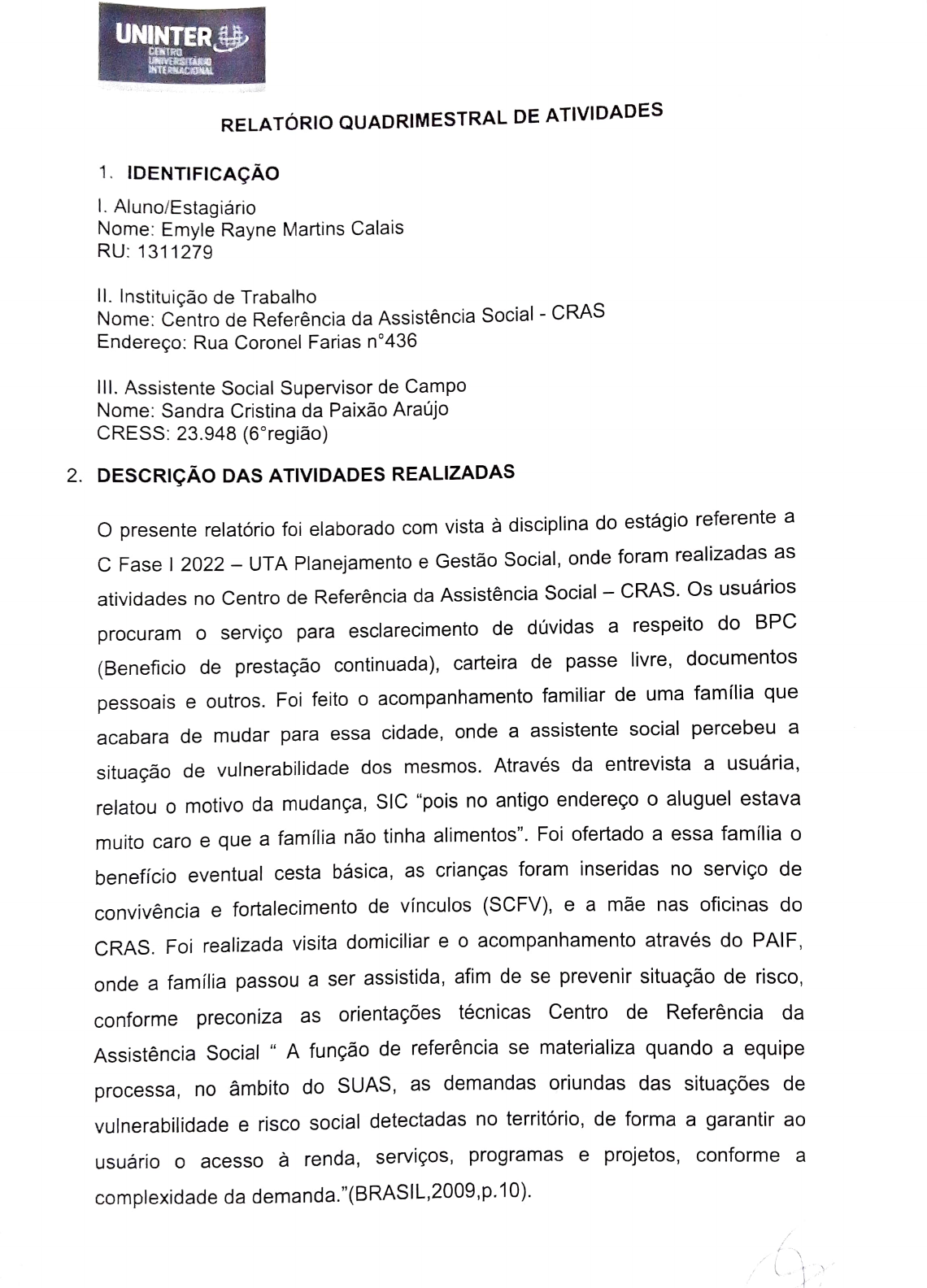 2. DESCRIÇÃO DAS ATIVIDADES REALIZADAS