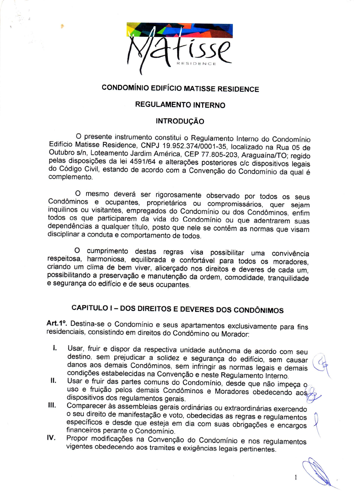 REGULAMENTO INTERNO - ED. MATISSE RESIDENCE