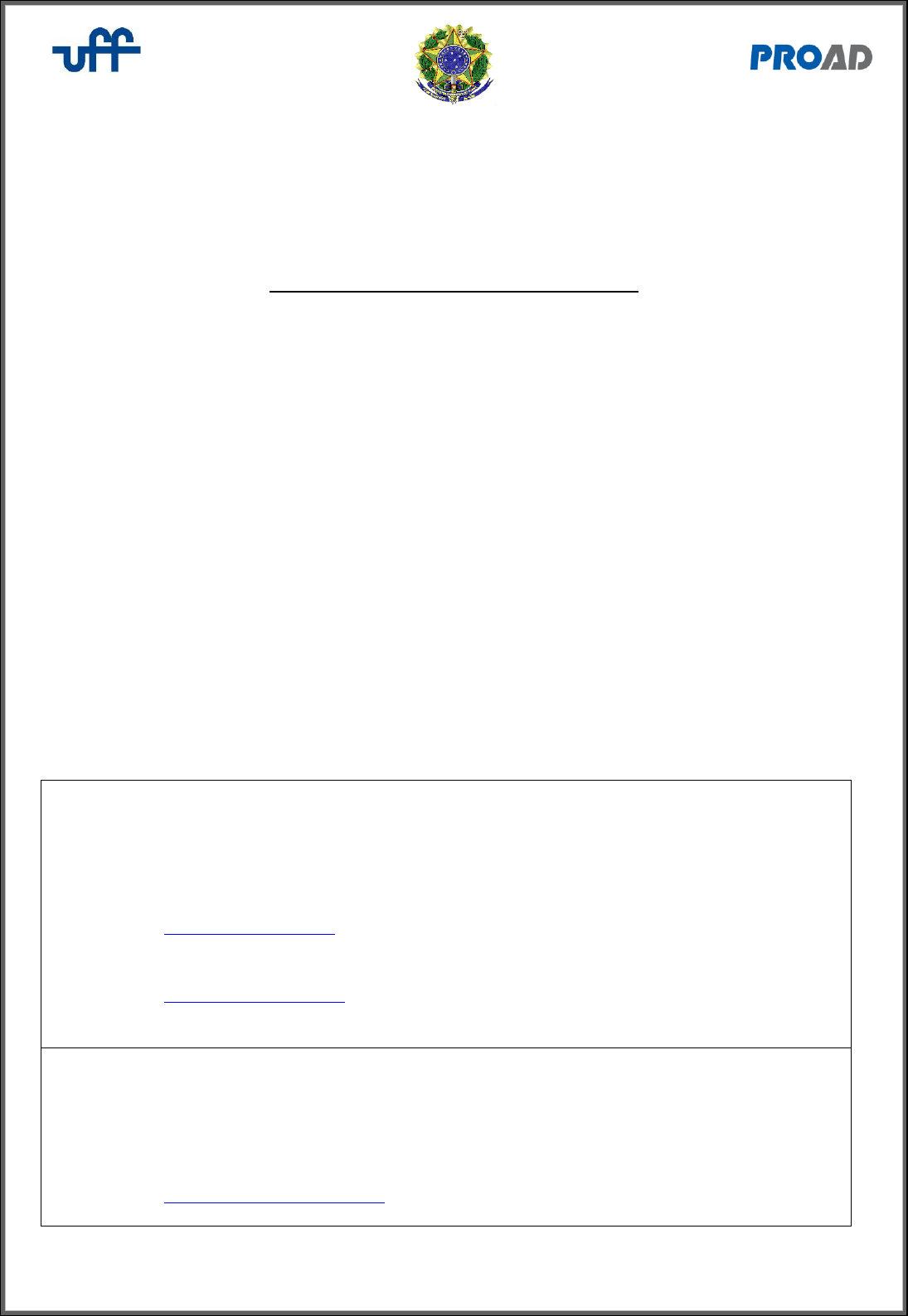 ____________________________________________________________________ Anexo I-B – Locais de Entrega Pág. 1/5 MINISTÉRIO DA EDUCAÇÃO UNIVERSIDADE FEDERAL FLUMINENSE PRO REITORIA DE ADMINISTRAÇÃO ANEXO I-B DO EDITAL DO PREGÃO ELETRÔNICO PROCEDIMENTOS PARA ENTREGA DE MATERIAIS 1. Observar na nota de empenho a Razão Social e o CNPJ da UFF para a emissão da Nota Fiscal; 2. Encaminhar cópia da nota de empenho junto à Nota Fiscal; 2.1. A Contratada regularmente optante pelo Simples Nacional, nos termos da Lei Complementar nº 123, de 2006, não sofrerá a retenção tributária quanto aos impostos e contribuições abrangidos por aquele regime. No entanto, o pagamento ficará condicionado à apresentação de comprovação, por meio de documento oficial, de que faz jus ao tratamento tributário favorecido previsto na referida Lei Complementar. 3. Constar na Nota Fiscal o número da nota de empenho e seus dados bancários (número do banco, agência e conta corrente); 4. Entrar em contato com o responsável para, se necessário, agendar a entrega para evitar o retorno do material; 5. O endereço de faturamento dos dados das Unidades da UFF é diferente dos endereços dos locais de entrega. 6. CONTATOS DAS UASGs PRÓ-REITORIA DE ADMINISTRAÇÃO/UFF (PROAD) – Unidade Gerenciadora CNPJ – 28.523.215/0039-89 UASG – 150182 COORDENAÇÃO DE MATERIAL Tel.: (21) 2629-5390 E-mail: compras.proad@id.uff.br COORDENAÇÃO DE ADMINISTRAÇÃO FINANCEIRA Tel.: (21) 2629-5385 E-mail: financeiro.proad@id.uff.br PRÓ-REITORIA DE PESQ. PÓS-GRADUAÇÃO E INOVAÇÃO (PROPPI) – Unidade Participante (se for o caso) CNPJ – 28.523.215/0033-93 UASG – 153248 GERÊNCIA PLENA FINANCEIRA/PROPPI Tel.: (21) 2629-5462 E-mail: financeiro.proppi@gmail.com mailto:compras.proad@id.uff.br mailto:financeiro.proad@id.uff.br mailto:financeiro.proppi@gmail.com ____________________________________________________________________ Anexo I-B – Locais de Entrega Pág. 2/5 7. LOCAIS DE ENTREGA DOS MATERIAIS: PRÓ-REITORIA DE GRADUAÇÃO (PROGRAD) - Unidade Participante (se for o caso) CNPJ – 28.523.215/0037-17 UASG – 153984 GERÊNCIA PLENA FINANCEIRA/PROGRAD Tel.: (21) 2629-5443 E-mail: uffcompras@gmail.com / pregao.prograd.uff@gmail.com PRÓ-REITORIA DE EXTENSÃO (PROEX) - Unidade Participante (se for o caso) CNPJ – 28.523.215/0038-06 UASG – 156337 GERÊNCIA PLENA FINANCEIRA/PROEX Tel.: (21) 2629-5515 E-mail: secretariaproexuff@gmail.com PRÓ-REITORIA DE ASSUNTOS ESTUDANTIS (PROAES) - Unidade Participante (se for o caso) CNPJ – 28.523.215/0004-59 UASG – 153058 GERÊNCIA PLENA FINANCEIRA/PROAES Tel.: (21) 2629-5559/ 2629-5560 E-mail: financeiroproaes@gmail.com / comprasproaes@gmail.com INSTITUTO DE CIENCIAS HUMANAS E SOCIAIS DE VOLTA REDONDA (VCH) - Unidade Participante (se for o caso) CNPJ – 28.523.215/0044-46 UASG – 150167 GERÊNCIA PLENA FINANCEIRA/VCH Tel.: (24)3076-8864 E-mail: scf.vch@id.uff.br ENDEREÇOS PRINCIPAIS DE ENTREGA (UFF) ALMOXARIFADO CENTRAL DA UFF Av. Jansen de Melo, 174 – Fundos – Centro – Niterói – RJ – CEP 24.030-221 Horário de entrega: 8:00 às 16:00 horas. Tel.: (21) 2629-2214 / 2629-2216 (PROPPI) Responsável: Servidores e colaboradores do Almoxarifado Central, da Central de Logística Patrimonial ou da PROPPI E-mail: almoxarifadocentral.uff@gmail.com; ivanraphael@id.uff.br; almoxarifadoproppi@gmail.com INSTITUTO DE CIENCIAS HUMANAS E SOCIAIS DE VOLTA REDONDA AV. Desembargador Ellis Hermydio Figueira, 783 – Aterrado - Volta Redonda – RJ – CEP 27.215-350 Horário de entrega: 8:00 às 16:00 horas. Tel.: (24)3076-8864 Responsável: Servidores da unidade mailto:uffcompras@gmail.com mailto:pregao.prograd.uff@gmail.com mailto:e-mail-secretariaproexuff@gmail.com mailto:financeiroproaes@gmail.com mailto:comprasproaes@gmail.com mailto:scf.vch@id.uff.br mailto:almoxarifadocentral.uff@gmail.com mailto:ivanraphael@id.uff.br ____________________________________________________________________ Anexo I-B – Locais de Entrega Pág. 3/5 E-mail: scf.vch@id.uff.br; romulotavares@id.uff.br; edgarjunior@id.uff.br. OUTROS ENDEREÇOS DE ENTREGA (UFF) *Informações complementares serão encaminhadas junto ao envio das respectivas notas de empenho REITORIA DA UFF Rua Miguel de Frias, 9 - Icaraí - Niterói – RJ CAMPUS DO VALONGUINHO Av. Visconde do Rio Branco s/n.º, bairro Centro, Niterói - RJ CAMPUS DO GRAGOATÁ Av. Visconde do Rio Branco s/n.º, bairro de São Domingos, Niterói – RJ R. Alexandre Moura, 8 - São Domingos, Niterói - RJ, 24210-200 CAMPUS DA PRAIA VERMELHA Rua Passo da Pátria, n.º 156, bairro São Domingos, Niterói – RJ INSTITUTO DE ARTES E COMUNICAÇÃO SOCIAL Rua Lara Vilela, 126 - São Domingos, Niterói - RJ INSTITUTO BIOMÉDICO Rua Professor Hernani Mello, 101 São Domingos Niterói – RJ ARQUIVO SDC Av. Bento Maria da Costa, 115 A - Jurujuba, Niterói – RJ CRIAA Rua General Castrioto, 588, Barreto, Niterói – RJ CAJUFF E NEPHU Almirante Teffé, 637, Centro, Niterói - RJ ESCOLA DE ENFERMAGEM Rua Dr. Celestino,78- Centro, Niterói - RJ HOSPITAL UNIVERSITÁRIO ANTONIO PEDRO Rua Marquês de Paraná 303 - Centro, Niterói – RJ FARMÁCIA UNIVERSITÁRIA Rua Marquês do Paraná, 282 – Centro, Niterói - RJ FACULDADE DE FARMÁCIA Rua Mário Viana. 523 - Santa Rosa, Niterói - RJ FACULDADE DE DIREITO Rua Presidente Pedreira,62 - Ingá, Niterói – RJ Rua Tiradentes, 17 - Ingá, Niterói – RJ mailto:scf.vch@id.uff.br mailto:romulotavares@id.uff.br mailto:edgarjunior@id.uff.br ____________________________________________________________________ Anexo I-B – Locais de Entrega Pág. 4/5 FACULDADE DE VETERINÁRIA Rua Vital Brazil Filho, 64 - Vital Brazil, Niteroi – RJ INSTITUTO DO NOROESTE FLUMINENSE DE EDUCAÇÃO SUPERIOR Rua Chaim Elias, s/n.º, Centro, Santo Antônio de Pádua – RJ CAMPUS RIO DAS OSTRAS Rua Recife. Quadra 07, Jardim Bela Vista, Rio das Ostras – RJ POLO UNIVERSITÁRIO DE MACAÉ Av. Aluízio da Silva Gomes, 50 - Granja dos Ca