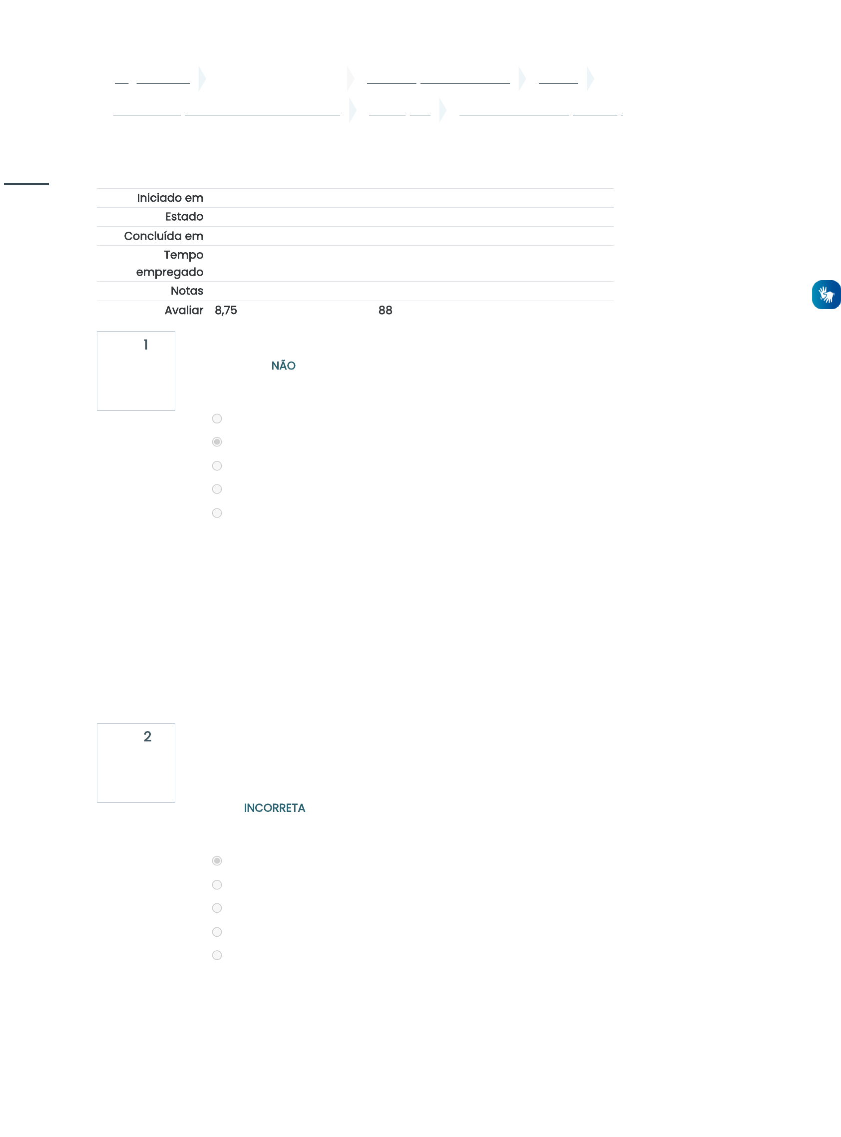 ... Página inicial Disciplinas e Espaços GRADUAÇÃO A DISTÂNCIA 2023-2 Gestão da Qualidade - 2023_02_EAD_A Avaliações P1 -- Prova On-line (Acessar) Questão 1 Correto Atingiu 1,00 de 1,00 Questão 2 Correto Atingiu 1,00 de 1,00 Iniciado em quarta, 17 mai 2023, 22:18 Estado Finalizada Concluída em quarta, 17 mai 2023, 23:11 Tempo empregado 53 minutos 18 segundos Notas 7,00/8,00 Avaliar 8,75 de um máximo de 10,00(88%) A Gestão da Qualidade se baseia em oito (8) princípios. Marque a opção que NÃO contém um destes: Escolha uma opção: Liderança. Controle analítico. Abordagem dos processos. Foco no cliente. Benefícios mútuos com os fornecedores. Sua resposta está correta. A gestão da qualidade baseia-se em oitos princípios: 1) Foco no cliente; 2) Liderança; 3) Envolvimento das pessoas; 4) Abordagem dos processos; 5) Abordagem da gestão como um sistema; 6) Melhoria contínua; 7) Abordagem dos fatos; 8) Benefícios mútuos com fornecedores. A resposta correta é: Controle analítico. A Metodologia de Análise e Solução de Problemas (MASP) pode ser usada na Gestão da Qualidade Total. É formada por alguns passos que podem ajudar a organizar de forma produtiva as ferramentas, a fim de otimizar a análise e a solução de problemas. Trata-se de uma etapa INCORRETA da MASP: Escolha uma opção: Plano cronológico. Plano de ação. Identificação do problema. Padronização. Observação. Sua resposta está correta. Não existe uma etapa dedicada a elaborar plano cronológico, na MASP. Porém, é necessário um Plano de ação. A resposta correta é: Plano cronológico. https://ava.candidomendes.edu.br/moodle/ https://ava.candidomendes.edu.br/moodle/course/index.php?categoryid=8 https://ava.candidomendes.edu.br/moodle/course/index.php?categoryid=161 https://ava.candidomendes.edu.br/moodle/course/view.php?id=11754 https://ava.candidomendes.edu.br/moodle/course/view.php?id=11754§ion=4 https://ava.candidomendes.edu.br/moodle/mod/quiz/view.php?id=402267 javascript:void(0); https://ava.candidomendes.edu.br/moodle/user/index.php?id=11754 https://ava.candidomendes.edu.br/moodle/grade/report/index.php?id=11754 https://ava.candidomendes.edu.br/moodle/course/view.php?id=11754&stopjsnav=1 https://ava.candidomendes.edu.br/moodle/course/view.php?id=11754&datapref=1 https://ava.candidomendes.edu.br/moodle/ https://ava.candidomendes.edu.br/moodle/my/ https://ava.candidomendes.edu.br/moodle/course/view.php?id=403 https://ava.candidomendes.edu.br/moodle/course/view.php?id=390 https://ava.candidomendes.edu.br/moodle/course/view.php?id=892 https://ava.candidomendes.edu.br/moodle/course/view.php?id=11754 https://ava.candidomendes.edu.br/moodle/course/view.php?id=11767 javascript:void(0); Questão 3 Incorreto Atingiu 0,00 de 1,00 Questão 4 Correto Atingiu 1,00 de 1,00 Gordiano, funcionário de uma empresa do ramo de produtos alimentícios, ficou incumbido, em 2023, de fazer uma análise prévia de custos que afetam o setor da Qualidade da empresa ALIMET.Salud Ltda. Sabe-se que a intenção de Gordiano foi detectar falhas e defeitos antes que pudessem, talvez, chegar ao consumidor e prejudicar a imagem da empresa. Então, é possível dizer que a ALIMET.Salud Ltda incorreu com: Escolha uma opção: a. Custos de produção. b. Custos da falha interna e externa. c. Custos de manutenção. d. Custos de prevenção. e. Custos de avaliação. Sua resposta está incorreta. Custos de prevenção, pois a empresa incorreu com gastos para detectar falhas e/ou defeitos que pudessem, eventualmente, chegar ao consumidor. A resposta correta é: Custos de prevenção. A Gestão da Qualidade Total (em língua inglesa Total Quality Management ou simplesmente GQT) consiste numa estratégia de administração orientada a criar consciência da qualidade em todos os processos organizacionais. Por que a GQT é referida como “total”? Escolha uma opção: Porque faz a gestão total dos recursos produtivos e financeiros, evitando perdas e desperdícios. Porque usa o gráfico de pareto. Porque relaciona-se não apenas a todos os escalões de uma organização, mas também da organização estendida, ou seja, seus fornecedores, distribuidores e parceiros. Porque usa a metodologia 5S. Porque usa o modelo just in time. Sua resposta está correta. É referida como “total”, uma vez que o seu objetivo é a implicação não apenas de todos os escalões de uma organização, mas também da organização estendida, ou seja, seus fornecedores, distribuidores e demais parceiros de negócios. A resposta correta é: Porque relaciona-se não apenas a todos os escalões de uma organização, mas também da organização estendida, ou seja, seus fornecedores, distribuidores e parceiros. javascript:void(0); https://ava.candidomendes.edu.br/moodle/user/index.php?id=11754 https://ava.candidomendes.edu.br/moodle/grade/report/index.php?id=11754 https://ava.candidomendes.edu.br/moodle/course/view.php?id=11754&stopjsnav=1 https://ava.candidomendes.edu.br/moodle/course/view.php?id=11754&datapref=1 https://ava.candidomendes.edu.br/moodle/ https://ava.candidomendes.edu.br/moodle/my/ https://ava.candidomendes.edu.br/moodle/course/view.php?id=403 https://ava.candidomendes.edu.br/moodle/course/view.php?id=390 https://ava.candidomendes.edu.br/moodle/course/view.php?id=892 https://ava.candidomendes.edu.br/moodle/course/view.php?id=11754 https://ava.candidomendes.edu.br/moodle/course/view.php?id=11767 javascript:void(0); Questão 5 Correto Atingiu 1,00 de 1,00 Ao tratarmos da gestão da qualidade, nos deparamos com uma divergência comum entre os gestores. Alguns acreditam que uma qualidade maior sempre significa mais custos, enquanto outros defendem que incrementos na qualidade diminuem desperdícios e que assim mais qualidade resulta em menos custos. Aparentemente, há uma grande discordância quanto à resposta. Isso se deve aos diferentes significados atribuídos à palavra qualidade. A fim de contribuir para um consenso sobre esse en