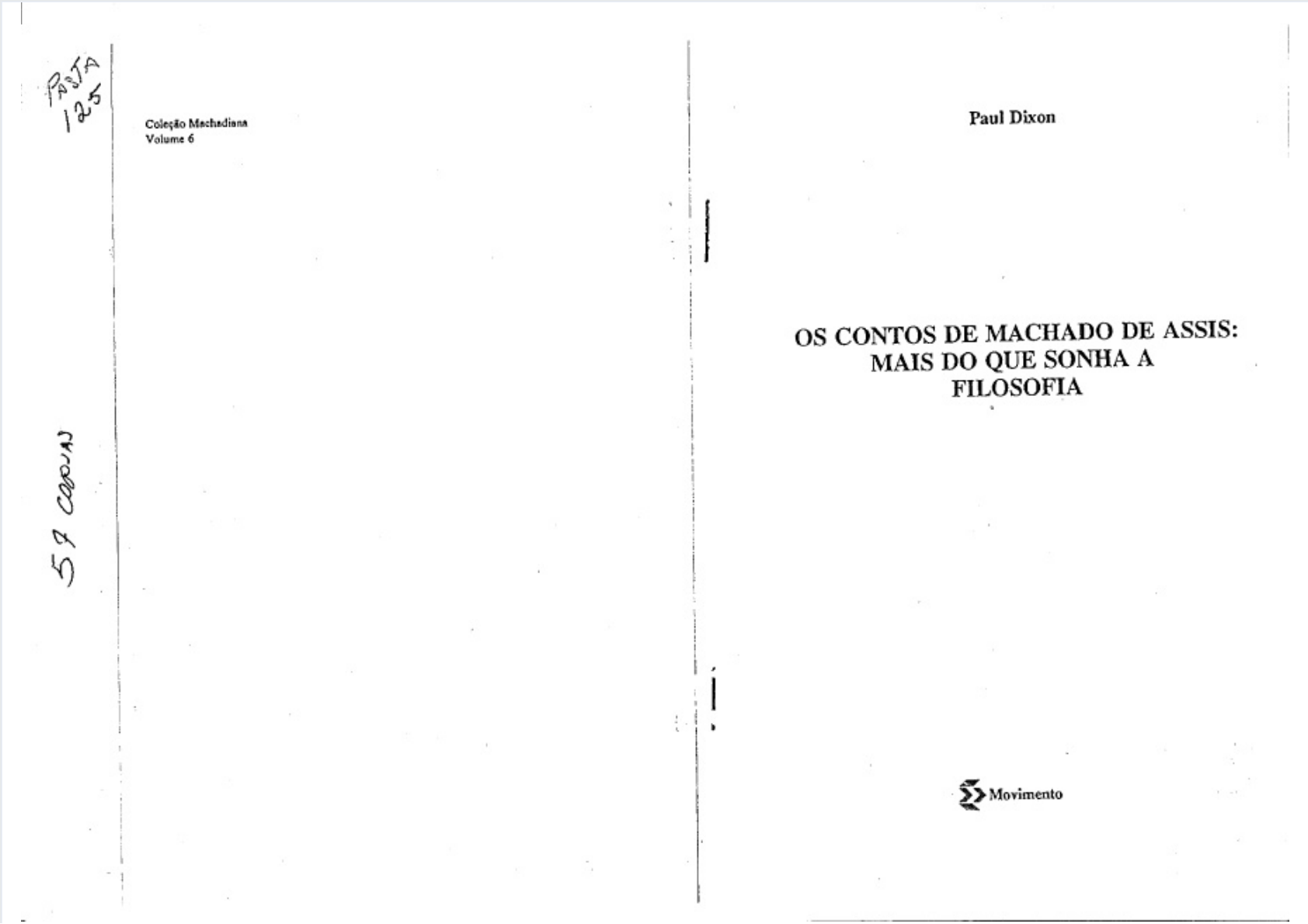5/11/2018 DIXON, Paul - Os Contos de Machado de Assim - Mais Do Que Sonha a Filosofia - slidepdf.com http://slidepdf.com/reader/full/dixon-paul-os-contos-de-machado-de-assim-mais-do-que-sonha-a-filosofia 1/57 Paul Dixonolc~iio Machadianft Vo lume 6 OS CONTOS DE MACHADO DE ASSIS: MAIS DO QUE SONHA A FILOSOFIA . . . . .>> Movimento. . . . 5/11/2018 DIXON, Paul - Os Contos de Machado de Assim - Mais Do Que Sonha a Filosofia - slidepdf.com http://slidepdf.com/reader/full/dixon-paul-os-contos-de-machado-de-assim-mais-do-que-sonha-a-filosofia 2/57 I I 1 I' II I .. C a p o . Is abel de Azevedo Appel R~sllo Pe ter Pe l lc ns Mariano Soares Para Barbaro tnossafilha, Elizabeth. 1992 Direltos desta edi~iio reservados a E d it om Mo v im e nt o R u e B an co Ingles 252 - Pone ( 0 5 1) 2 3 3 .- 7 64 5 Morro Santa Teresa 90840-600 - Porto A legre - RS - Brasil 5/11/2018 DIXON, Paul - Os Contos de Machado de Assim - Mais Do Que Sonha a Filosofia - slidepdf.com http://slidepdf.com/reader/full/dixon-paul-os-contos-de-machado-de-assim-mais-do-que-sonha-a-filosofia 3/57 sUMAruo Nota 9 Introducso 10 1. A lei da laranja: "0 espelho" , 18 2. A lei das estrelas duplas: "Uns braces" 29 3. A lei da sorte grande: "Jogo do bicho" 36 4. A lei da homeopatia: "Cantiga de esponsais" 44 5. A lei das duas cabecas: "Missa do galo" 51 6. A lei dos escravos: "A causa secreta" •.............. S8 7. A lei das batatas: "Bvolucao" 69 8. A lei do lapso: uA igreja do diabo" 81 9. A lei do pequeno saldo: "Nolte de a lmirante" 90 10. A lei do livro falho: "A chinela turca" 99 Epflogo 108 Textos Citados 110 5/11/2018 DIXON, Paul - Os Contos de Machado de Assim - Mais Do Que Sonha a Filosofia - slidepdf.com http://slidepdf.com/reader/full/dixon-paul-os-contos-de-machado-de-assim-mais-do-que-sonha-a-filosofia 4/57 I NOTA A maior parte deste livro foi escri ta em Porto Alegre , depois de um semestre de s er vi ce c om o p ro fe ss or v is it an te pelo programa Fulbright na Universidade Federal do Rio Grande do Sul. Desejo agradecer ao Departamento d e L fn gu as e Literaturas Estrangeiras da Purdue University a l icenca concedida para 0 proj eto . Tambem agradeco ao Institute de Letras d a UFRGS haver continuado a oferecer-me urn escri t6rio e varies outros recursos, depois de tenninada minha designa~o oficial. Em particular, f ico grato ao Prof. Paulo Gick por ter sido 6timo anfitriao para a minha famil ia durante nossa estada no Brasi l, e ao Prof. Vfl son Leffa , do Centro de Lingii(s tica Aplicada, pelo usc de seu computador. Na prepara~o do livre, urn fator indispensavel foi a revisio do manuscrito por varios colegas: Beatriz Amorim, Cristina Campos, Antonio Augusto Furtado, Eduardo Ostergren, Myriam Ramsey e Donalda Schuler. 0 trabalho nao foi facil, e fico muito agradecido por s ua d il ig en cia . F iz era m t od o 0 p o ss fv e l; s e restarem e rr os , s ao meus e s6 meus, Uma versso preliminar do capitulo I foi publicada em ingles na revista Rom an c e Q ua te rl y; 0 capitulo II apareceu em versao preliminar nas Aetas do primeiro congresso da Associacao Internacional de Lusi ta n is ta s ( Po i ri er , 1 988 ). Em varies lugares, traduzi cita¢es para 0 portugues, Julguei desnecessario avisa-lo em cada case, porque a lingua original ISevidente na lista de textos citados , Paul Dixon 9 5/11/2018 DIXON, Paul - Os Contos de Machado de Assim - Mais Do Que Sonha a Filosofia - slidepdf.com http://slidepdf.com/reader/full/dixon-paul-os-contos-de-machado-de-assim-mais-do-que-sonha-a-filosofia 5/57 1NTRODU~AO Os contos de M achado de Assis t~ m s id o m uito elo gia do s, mas p ou co e stu da do s. R ec on he ce -s e q ue 0 grau d e perfei~o alcancad o no s c on to s m ac ha di an os n ao e m enor do que 0do s ro mances (Cunha 23, M ay ers be rg, M ig uel P ereira 2 55 -5 7, M o is es 8 , Montello 23). E cos tume situar 0 co ntis ta b ras ileiro n a co mp an hia d e M au pass an t, P oe , J am es e o s outros m es tr es m u nd ia is d o g en er o ( Ca va lh eir o 2 6- 28 ; C un ha 24: Gomes , ..Apresentacao" 6: Nist 6). Porem a analise do s relatos n ao p as sa de art igos avulsos, e algumas introducdes a antologias. Ate agora, nenhum liv ro d e c rf tic a l ite ra ria s e d ed ic ou p re fe re nc ia lm en te a os c on to s. A fir mo is to de boa fe, nao po rque creio que este fato em si possa dar m ais cred ito a es te liv ro , m as porque 0 ach o um tan to m is terio so . Q uan do M achado d e A ss is 6 cons iderado 0 p ri m ei ro g ra nd e c on ti st a b ra si le ir o; ~~do mui to dos seus contos ja foram consagrados como obras-primas, rguais em valor ou ate s up erio res ao s m elh ores ro man ces ; q ua nd o ja e xis te u m n ur ne ro g ra nd e d e l iv ro s d ed ic ad os h analise d os r om an ce s, n ao e facil en t en der a falta d e u m liv ro analftico sobre 08 contos . D ev e ta mbe m pa re cer e stran bo a algu ns q ue 0 a uto r d es te liv re s eja ~ tr an ~e ir o, se Ii .~ 6 p o rt en to obrigado a abordar 0 ass unto d e u rn p onto d e vista distante.no q ue d iz r es pe it o a c or l oc al , Iic ultu ra e a l in g ua . S e ri a mui to mais 1 6g ic o q ue 0 trabalho fosse realizado pa r um a pessoa mais co nhec ed ora d o m un do d o au to r, . Po r outro lado , ha c er ta ju st ic a p oe tic s n es ta a no m alia , p or qu e e m m uito s as pecto s o s co nto s m ach ad ian os s ao u ma g lo rifica~ o d o estra nh o e d o in es perad o - d as sin gu lares o co rren cias , d os lap ses e d as e xc urs des m ilag ro sas , U rn se ntid o d e m is terio p en etra gran de p arte c ia obra de M ach ad o d e A ss ls , N o entan to , ha um a d i fe re n ca basica e n tr e Ma c ha d o e o s e scrito res n orm alm ente class ifica do s co mo au to res fan ta stico s, m a ra vi lh os os , o u d e m is te rio , E nq ua nto , p ar a a m a io ria d es te s, 0 terrene d o m is te rio t en de a se r ambiente, aquilo qu e rodeia os personagens, para 10 Machado 0 rein o m arav ilho so es ta d en tro d os m es mo s. A frase d o co 