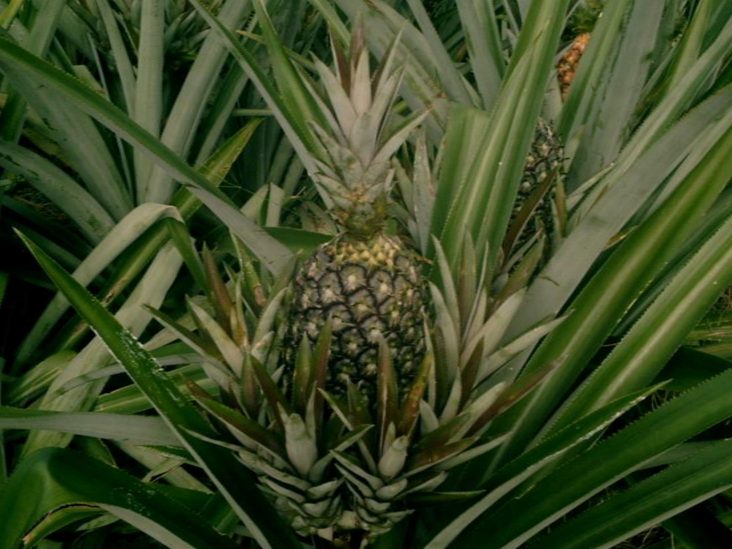 Abacaxicultura Profª. Dra.Eliziete Pereira de Souza Instituto Federal de Educação Ciência e Tecnologia do Pará Campus Castanhal INTRODUÇÃO Ananas comosus comosus L. Bromeliaceae Metabolismo CAM Importância 60 mil empregos diretos e indiretos INTRODUÇÃO A região sudeste paraense é responsável por 85% da produção estadual de abacaxi. Floresta do Araguaia (76,45%), os municípios ocupam o segundo e o terceiro lugar, Conceição do Araguaia (8,42%) e Salvaterra (3,12%) Componentes Quantidade em 100 g de polpa de abacaxi Calorias 52,0 mg Cálcio 18,0 mg Fósforo 8,0 mg Ferro 0,5 mg Vitamina B1 0,08 mg Vitamina B2 0,04 mg Vitamina C 61,0 mg TABELA 1. Composição de calorias, nutrientes e vitaminas na infrutescência Fonte: Coleção Plantar: Abacaxi (2006) Abacaxi Fibras- Colesterol do sangue BromelinaSuco e caule Reduz a inflamação associada a asma Extrato de abacaxi pode ajudar pacientes com asma 0 5 10 15 20 25 30 35 Á re a p la n ta d a (m il h a) n o B ra si l Figura 1. Área plantada (mil ha) de abacaxi em função das regiões (Fonte: IBGE, 2008) Figura 2. Quantidade de abacaxi produzida em função dos Estados (Fonte: IBGE, 2008) 0 50 100 150 200 250 300 350 400 Paraíba Minas Gerais Pará Bahia Ceará RN Q u an ti d ad e p ro d u zi d a (m il h õ e s) Fonte: IBGE, 2017 Estado Área (2016) Produção 2016 Área (2017) Pará 24.080 412.102 26.996 Paraíba 13.973 283.362 8.945 Minas Gerais 13.169 251.429 13.250 Bahia 7.700 129.600 7.040 Tocantins 6.682 64.674 4.207 São Paulo 5.520 96.129 5.520 RN 4.434 63.097 2.997 TABELA 1. Área (ha) plantada com abacaxizeiro e produção (mil frutos) em em função dos estados e ano TABELA 1. Quantidade de abacaxi produzida (mil frutos) por Unidade da Federação Fonte: IBGE, 2008 Unidade da Federação Quantidade de abacaxi (mil frutos) Paraíba 345.015 Minas Gerais 265.520 Pará 261.347 Bahia 170.423 Ceará 100.865 Rio Grande do Norte 91.712 São Paulo 69.086 Rio de Janeiro 66.294 Mato Grosso do Sul 64.039 Goiás 52.184 DESCRIÇÃO BOTÂNICA Inflorescência tipo espiga; Caule ou talo; Sistema radicular; As folhas são espiraladas; Fruto composto (sorose). http://images.google.com.br/imgres?imgurl=http://www.expedicaobleu.com/Expedicaobleu/media/10062004_Sao_Francisco_De_Itabapoana_Abacaxi.jpg&imgrefurl=http://www.expedicaobleu.com/index.php%3Fcat%3D20&h=570&w=428&sz=54&hl=pt-BR&start=11&tbnid=9erbHDbKXotHtM:&tbnh=134&tbnw=101&prev=/images%3Fq%3Dabacaxi%26gbv%3D2%26svnum%3D10%26hl%3Dpt-BR%26sa%3DG http://images.google.com.br/imgres?imgurl=http://www.mpbzinho.com.br/fotos/54_sorvete%2520de%2520abacaxi.jpg&imgrefurl=http://www.mpbzinho.com.br/content.asp%3Fcc%3D4%26id%3D54&h=247&w=250&sz=32&hl=pt-BR&start=3&tbnid=8vT3Ouq5SFOmJM:&tbnh=110&tbnw=111&prev=/images%3Fq%3Dabacaxi%26gbv%3D2%26svnum%3D10%26hl%3Dpt-BR%26sa%3DG http://images.google.com.br/imgres?imgurl=http://brasilescola.com/imagens/frutas/abacaxi.jpg&imgrefurl=http://www.brasilescola.com/frutas/abacaxi.htm&h=175&w=200&sz=17&hl=pt-BR&start=32&tbnid=vJ3njSYLr_rT4M:&tbnh=91&tbnw=104&prev=/images%3Fq%3Dabacaxi%26start%3D20%26gbv%3D2%26ndsp%3D20%26svnum%3D10%26hl%3Dpt-BR%26sa%3DN http://images.google.com.br/imgres?imgurl=http://www.jornalentreposto.com.br/out2006/imagens/abacaxi.jpg&imgrefurl=http://www.jornalentreposto.com.br/out2006/frutas_brasil.htm&h=400&w=300&sz=38&hl=pt-BR&start=64&tbnid=xLBfYj5qyztvgM:&tbnh=124&tbnw=93&prev=/images%3Fq%3Dabacaxi%26start%3D60%26gbv%3D2%26ndsp%3D20%26svnum%3D10%26hl%3Dpt-BR%26sa%3DN Figura 3. A esquerda posição das folhas no caule de acordo com a idade. A direita: classificação: A- mais velha e seca; B- velha; C- madura; D- Mais ativa; E- jovem; F- mais jovem. Figura 4. Descrição das partes do abacaxizeiro Pendúnculo Caule (Talo) Raízes EXIGÊNCIAS EDAFOCLIMÁTICAS Solo 1- sensível a solos encharcados 2- necessita de boa aeração e drenagem 3- solos de textura média e arenosa 4- pH entre 4,5 - 5,5 5-exigente em nutrientes (K>N>Ca>Mg>S) Figura 5. Influencia do N, P e K sobre as características do fruto do abacaxizeiro EXIGÊNCIAS EDAFOCLIMÁTICAS Clima 1- Planta tropical 2- Temperatura: 22 a 32 °C 3- Luminosidade- 2.500 a 3.000 horas/ano 4- Chuvas-1.200 a 1.500 mm anuais 5- Umidade-igual ou superior a 70 % Cultivares e variedades plantadas no Brasil Smooth Cayenne Mais plantada no mundo Folhas com espinhos Ligeiramente cilíndrica 1,5 a 2,5 kg Polpa amarela com 13 a 19º Brix Acidez elevada Folhas com espinhos Folhas sem espinhos Pérola Mais plantada no Brasil Folhas com espinhos Forma cônica 1,0 a 1,5 kg Polpa branca com 14 a 16 ºBrix Acidez baixa Formato cilíndrico Assemelha-se ao Pérola Jupi Gomo de mel Fruto pequeno; Aparência pouco atrativa Alto teor de açúcar Frutilhos destacáveis Susceptível a fusariose IAC Fantástico Polpa amarelo intenso Polpa doce Brix > 16º Ausência de espinhos Resistente a fusariose Pérola IAC Fantástico MD2 Imperial Perolera x Smooth Cayenne Vitória Primavera x Smooth Cayenne Queen Estádios de maturação do abacaxi Queen Fonte: COSTA, J. P. (2009) Grupos de Abacaxi Cayenne (Smooth cayenne, MD2) Spanish (Singapore, Roja) Queen (Queen, McGregor) Pernambuco (Pérola e Jupi) Perolera (Rondon, Perolera) http://images.google.com.br/imgres?imgurl=http://www.clickamazonia.com/Click/images/flora-fauna/A_abacaxi.jpg&imgrefurl=http://www.clickamazonia.com/Click/pt-brasil/flora/ff-br-2.html&h=500&w=337&sz=64&hl=pt-BR&start=71&tbnid=rceobILd5iJgVM:&tbnh=130&tbnw=88&prev=/images?q=abacaxi&start=60&gbv=2&ndsp=20&svnum=10&hl=pt-BR&sa=N http://images.google.com.br/imgres?imgurl=http://www.expedicaobleu.com/Expedicaobleu/media/10062004_Sao_Francisco_De_Itabapoana_Abacaxi_1.jpg&imgrefurl=http://www.expedicaobleu.com/index.php?cat=20&h=345&w=460&sz=56&hl=pt-BR&start=87&tbnid=fSihRhwd1EoVOM:&tbnh=96&tbnw=128&prev=/images?q=abacaxi&start=80&gbv=2&ndsp=20&svnum=10&hl=pt-BR&sa=N http://images.google.com.br/imgres?imgurl=http://zelzen.files.wordpress.com/2007/02/20051218.jpg&imgrefurl=http://zelzen.wordpre