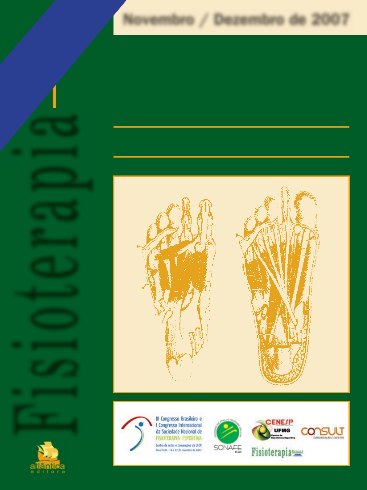 Novembro / Dezembro de 2007 Fi sio ter ap iaB r a s i l An o 8 - n o 1 www.atlanticaeditora.com.br ISSN 1518-9740 III Congresso Brasileiro e I Congresso Internacional da Sociedade Nacional de Fisioterapia Esportiva 14 a 17 de novembro de 2007 Centro de Artes e Convenções da UFOP, em Ouro Preto, MG Programação e Anais SONAFE 2007 Su ple me nt o SO NA FE /2 00 7 Promoção Secretaria Apoio Fisioterapia B rasil - S uplem ento S O N A FE / 2 0 0 7 - V olum e 8 - N úm ero 6 - N ovem bro/ D ezem bro de 2 0 0 7 !Capa.indd 1!Capa.indd 1 31/10/2007 15:42:2931/10/2007 15:42:29 Editorial Aos ilustres congressistas e prezados leitores, Estamos concretizando dois anos de trabalho no mais puro jeito mineiro de ser: em silêncio. Se bem que nem tão silencioso foi assim... Divulgamos para valer esse que tem tudo para ser um marco na organização de eventos da Fisioterapia Brasileira. O III Congresso Brasileiro e I Congresso Internacional da Sociedade Nacional de Fisioterapia Esportiva já é motivo de orgulho para nós fi sioterapeutas esportivos e, em especial, para nós do COMEFE – Comite Mineiro de Especialistas em Fisioterapia Esportiva. Metas foram alcançadas, outras nem tanto, mas na hora da balança, temos a certeza de que o saldo é positivo: as par- cerias com a revista Fisioterapia Brasil que possibilitou os anais impressos na forma do suplemento que está em suas mãos; a estrutura da FUNDEP que permitiu a maneira singular de se avaliar os trabalhos enviados, em número recorde (195); o apoio da UFMG e do CENESP – Centro de Excêlencia Esportiva da UFMG que intercederam junto ao Ministério dos Esportes para a obtenção de verba; o próprio ministério que abriu as portas das entidades governamentais para a fi sioterapia brasileira. Tentamos valorizar o profi ssional, a SONAFE, o especia- lista. Procuramos com isso, motivar quem ainda é estudante ou profi ssional não sonafi ano a ingressar nessa egrégia enti- dade e a lutar pelas nossas bandeiras. Esperamos e acreditamos que Deus e as forças positivas do universo estarão pairados sobre as montanhas de Ouro Preto e que nós, brasileiros de todos os estados, somados aos irmãos argentinos, canadenses e australianos, teremos dias de intenso trabalho em prol do presente e futuro da fi sioterapia esportiva. Nosso muito obrigado ás comissões da organização, em especial, àqueles colegas que realmente vestiram a camisa do evento e, nesses dois anos, trabalharam e se dedicaram à causa maior que é o sucesso do Congresso e da SONAFE. Sejam bem vindos a Minas, a Ouro Preto e ao Congresso. Anderson Aurélio da Silva - Presidente do Congresso Promoção SecretariaApoio sonafe.indb Isonafe.indb I 31/10/2007 15:51:4631/10/2007 15:51:46 Suplemento Fisioterapia Brasil - III Congresso Brasileiro e I Congresso Internacional da Sociedade Nacional de Fisioterapia EsportivaII Fisioterapia Brasil - Volume 8 - Número 6 - novembro/dezembro de 2007 Prof. Anderson Aurélio da Silva (Presidente do Congresso) – Fisioterapeuta e educador físico, mestrando em Ciências da Reabilitação (UFMG), professor do curso de fi sioterapia da UFMG e Coordenador do La- boratório de Prevenção e Reabilitação de Lesões Esportivas do CENESP-UFMG, fi sioterapeuta do América Futebol Clube. Sócio especialista da SONAFE. Prof. Marco Túlio Saldanha dos Anjos (Vice-presidente do Congresso) – Fisioterapeuta, Mestre em Ciências da Reabilitação (UFMG), professor do curso de Fisioterapia do Centro Universitário Newton Paiva e coordenador da pós-graduação em Fisioterapia Traumato-ortopédica Hospitalar da mesma instituição (2006- 2007). Fisioterapeuta do Laboratório de Prevenção e Reabilitação de Lesões Esportivas do CENESP- UFMG (2002-2005). Sócio especialista da SONAFE. Marcos Túlio da Silva Melo – Fisioterapeuta do Clube Atlético Mineiro, especialista em Fisioterapia Esportiva (PUC-MG). Natalia Franco Netto Bittencourt – Fisioterapeuta especialista em Ortopedia e Esportes (UFMG), fi sioterapeuta da Seleção Brasileira de Voleibol Feminina Sub-17 e do Minas Tênis Clube e pesquisadora do Laboratório de Prevenção e Reabilitação de Lesões Esportivas do CENESP- UFMG. Sócio especialista da SONAFE. Luciana De Michelis Mendonça – Fisioterapeuta da Seleção Brasileira de Voleibol Masculino sub-20, Professora do Instituto Mineiro de Acupuntura e Massagens (IMAM/INCISA) e pesquisadora do Laboratório de Prevenção e Reabilitação de Lesões Esportivas do CENESP –UFMG. Elliot Paes Alves Jr. – Fisioterapeuta, educador físico e pedagogo, fi sioterapeuta da CBV - Clube Olympikus Voleibol (1994-1998), fi sioterapeuta da CBF – Clube Atlético Mineiro (1999-2005). Consultoria esportiva no Brasil e na Europa (2006-2007). Atualmente fi sioterapeuta da Federação Alemã de Futebol - F.C. Schalke 04. Sócio-especialista e membro da diretoria da SONAFE (2006-2007). Giovanna Mendes Amaral - Fisioterapeuta, Mestre em Bioengenharia pela UFMG e professora da PUC- MG. Sócio especialista da SONAFE. Prof. Alysson Zuin - Fisioterapeuta da Seleção Brasileira de Voleibol Masculino sub-20 e professor da Faculdade de Saúde e Ecologia Humana – FASEH. Sócio especialista da SONAFE. Marcelo Von Sperling de Souza – Fisioterapeuta, pesquisador do Laboratório de Análise de Movimento da UFMG. Sócio especialista da SONAFE. Comissão Organizadora sonafe.indb IIsonafe.indb II 31/10/2007 15:51:5131/10/2007 15:51:51 IIISuplemento Fisioterapia Brasil - III Congresso Brasileiro e I Congresso Internacional da Sociedade Nacional de Fisioterapia Esportiva Fisioterapia Brasil - Volume 8 - Número 6 - novembro/dezembro de 2007 Editor científi co Prof. Dr. Marco Antônio Guimarães da Silva (UFRRJ – Rio de Janeiro) Rio de Janeiro Rua da Lapa, 180/1103 20021-180 – Rio de Janeiro – RJ Tel./Fax: (21) 2221-4164 / 2517-2749 E-mail: atlantica@atlanticaeditora.com.br www.atlanticaeditora.com.br Assinaturas 6 números ao ano: Brasil - 1 ano: R$ 180,00 Amér
