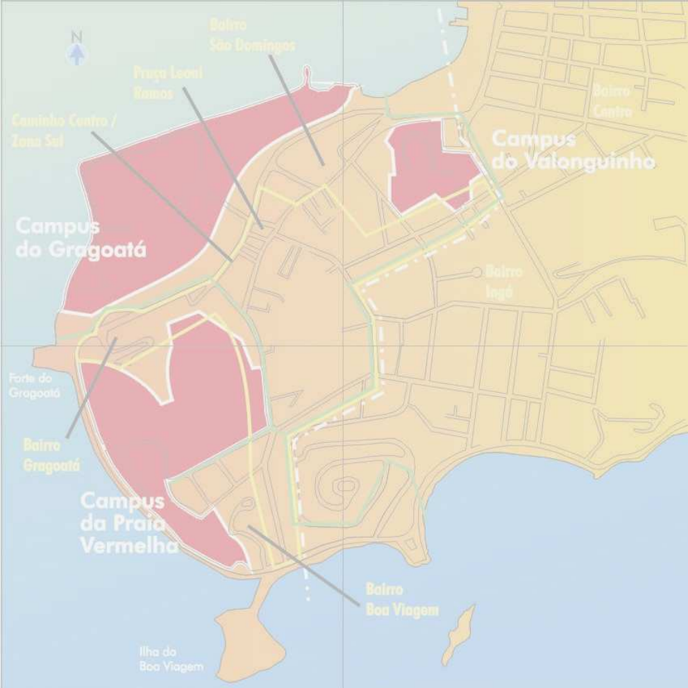RELATÓRIO AMBIENTAL SIMPLIFICADO DOS CAMPI DA UNIVERSIDADE FEDERAL FLUMINENSE Campus do Valonguinho Campus da Praia Vermelha - Campus do Gragoatá Niterói Maio - 2011 MINISTÉRIO DA EDUCAÇÃO UNIVERSIDADE FEDERAL FLUMINENSE SUPERINTENDÊNCIA DE ENGENHARIA E PROJETOS COORDENAÇÃO DE PROJETOS RELATÓRIO AMBIENTAL SIMPLIFICADO DOS CAMPI DA UNIVERSIDADE FEDERAL FLUMINENSE Campus do Valonguinho - Campus da Praia Vermelha Campus do Gragoatá Niterói Maio - 2011 MINISTÉRIO DA EDUCAÇÃO UNIVERSIDADE FEDERAL FLUMINENSE SUPERINTENDÊNCIA DE ENGENHARIA E PROJETOS COORDENAÇÃO DE PROJETOS ROBERTO DE SOUZA SALLES Reitor SIDNEY LUIZ DE MATOS MELLO Vice-reitor EQUIPE TÉCNICA Geógrafo Reiner Rosas SUMÁRIO Introdução 04 1 Identificação do Empreendimento 05 1.1 Identificação e localização do empreendimento 05 Histórico da UFF e do campus 05 Justificativa do empreendimento 07 Localização 08 Descrição do campus da UFF 12 2 Identificação da empresa responsável pela elabor ação do RAS 13 3 Descrição do projeto 13 4 Área de influência 16 5 Diagnóstico Ambiental 16 5.1 Caracterização da área do empreendimento 16 5.1.1. Meio físico 16 5.1.1.1. Caracterização e mapeamento da geologia local 16 5.1.1.2. Caracterização da geomorfologia local 27 5.1.1.3. Clima 36 5.1.1.3. Recursos hídricos 40 5.1.2. Meio biótico 40 5.1.3. Meio antrópico 42 2.2.1 Características morfológicas 60 6 Identificação e análise dos impactos ambientais 45 7 Medidas mitigadoras 49 8 Programa de acompanhamento e monitoramento 49 9 Equipe técnica 49 10 Referências bibliográficas 49 4 INTRODUÇÃO O presente Relatório Ambiental Simplificado (RAS) foi elaborado para atender o Processo Nº 250/001412/2009, emitido pela Secretaria Municipal de Meio Ambiente e Recursos Hídricos do município de Niterói referente ao conjunto de edificações a serem construídas nos campi da Universidade Federal Fluminense: Gragoatá, Praia Vermelha e Valonguinho. 5 1. IDENTIFICAÇÃO DO EMPREENDIMENTO 1.1. Identificação e Localização do Empreendimento A palavra campus indica a maneira geral de territorialização das formas arquitetônicas e urbanísticas das universidades e foi adotada no Brasil a partir da reforma universitária dos anos 1960. Esse modelo de territorialização pretendia reunir em uma mesma área geográfica as diversas unidades de uma universidade implantadas de maneira integrada (integração entre edificações e entre os seus departamentos de ensino), e as suas formas arquitetônicas e urbanísticas estavam vinculadas ao ideário modernista. Histórico da UFF e do campus. A Universidade Federal Fluminense foi criada em 18 de dezembro de 1960 pela Lei n.º 3.848 (BRASIL, 1960) com a denominação de Universidade Federal do Estado do Rio de Janeiro – UFERJ1. A universidade foi concebida pela junção de cinco faculdades classificadas como ‘incorporadas’ por serem estabelecimentos de ensino superior federal (Faculdade Fluminense de Medicina; a Faculdade de Direito de Niterói; a Faculdade de Farmácia e Odontologia do Estado do Rio de Janeiro; a Faculdade Fluminense de Odontologia; e a Faculdade Fluminense de Medicina Veterinária) e cinco faculdades ‘agregadas’: três escolas estaduais (a Escola Fluminense de Engenharia; a Escola de Serviço Social e a Escola de Enfermagem) e duas faculdades particulares (a Faculdade de Ciências Econômicas e a Faculdade Fluminense de Filosofia). A partir da criação da Universidade surgiu a intenção de se projetar e construir um campus próprio para a UFF, entretanto só no final dos anos sessenta com a publicação da Lei n.º 5.540 em 28.11.1968 (BRASIL, 1968), no âmbito da reforma universitária daquele momento, é que o tema tomou força como uma necessidade. Em 1969, os estudos e propostas elaborados pelos órgãos técnicos da Universidade indicavam três possibilidades de localização para o campus universitário: uma área não tipicamente rural próximo à praia de Itaipu, uma área tipicamente rural em Pendotiba e uma área urbana, o aterro da Praia Grande na região central de 1A então UFERJ teve seu nome modificado em 5 de novembro de 1965 através da Lei n.º 4.831 (BRASIL, 1965a), quando passou a ser denominada Universidade Federal Fluminense. 6 Niterói (UNIVERSIDADE FEDERAL FLUMINENSE, 1969; 1977a). Entre elas o Conselho Universitário optou pela terceira alternativa. Em 1970, a Universidade contratou a empresa Planejamento e Assessoria Administrativa S/A – PLANASA para elaborar o “Projeto de Implantação do Campus Universitário” para captar recursos para construir o campus. Esse trabalho, assim como os estudos anteriores, também considerou três possibilidades de localização: o aproveitamento das unidades existentes na cidade de Niterói; a implantação do campus nas áreas do Morro de São João Batista, Gragoatá e Praia Vermelha; e a instalação do campus no município de São Gonçalo, em uma gleba na região (não urbana) de Ipiíba. Entre as três alternativas o estudo priorizou a última. Em 1974, foi criado o Escritório Técnico do Campus/ETC para viabilizar o projeto para o campus. Ainda no mesmo ano, o Conselho Universitário ao analisar as duas propostas anteriores – a de 1969 que adotava como prioridade a área urbana e a de 1970 que dava preferência a uma área não urbana localizada em outro município – foi favorável à localização do campus em área urbana. A partir dessa opção por um campus urbano, o ETC elaborou o seu Plano Diretor (UNIVERSIDADE FEDERAL FLUMINENSE, 1977b). De acordo com o referido Plano Diretor, o campus seria implantado em diversos terrenos na região onde já havia prédios da UFF – o Valonguinho (Instituto de Matemática e algumas unidades da Medicina) e a Praia Vermelha (Faculdade de Engenharia) – e em parte do aterro da Praia Grande (em processo de desapropriação pelo Governo Federal), que faria a ligação com as outras duas áreas. O Plano previu um 