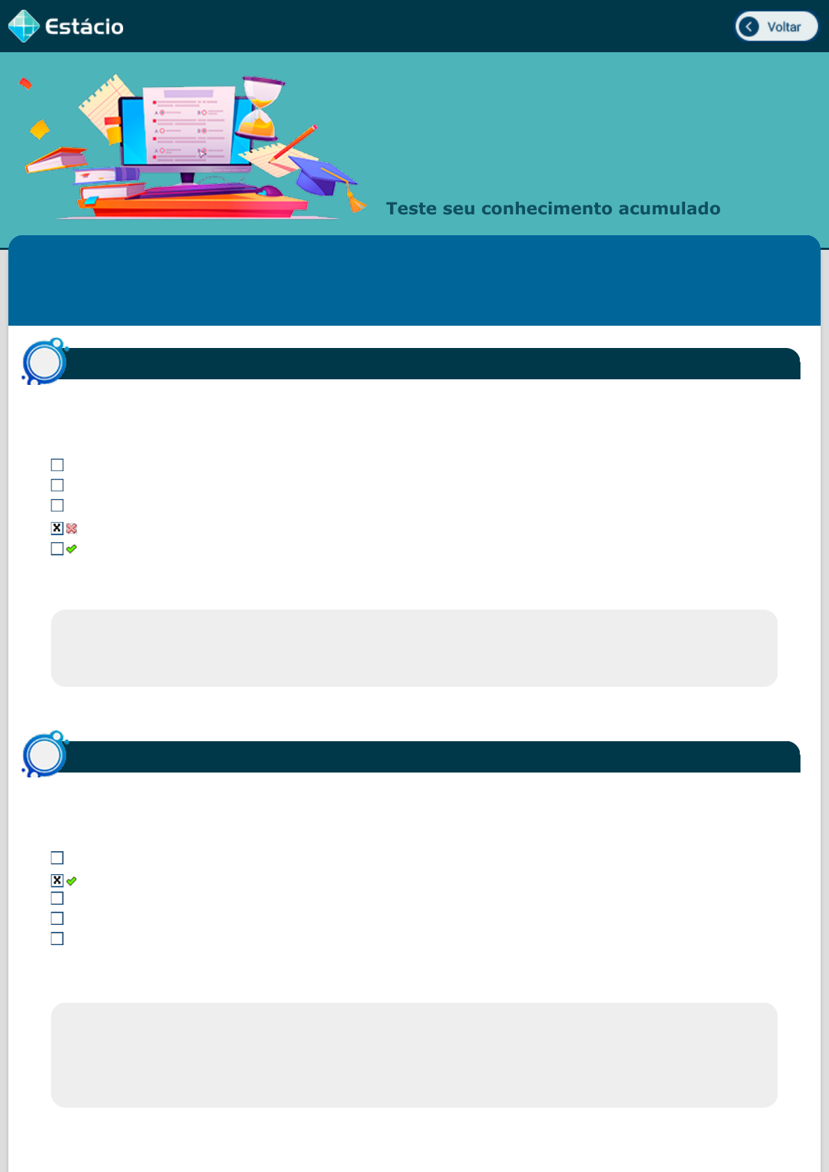 Meus Simulados Teste seu conhecimento acumulado Acerto: 00,,00 / 11,,00 Dispositivos em circuitos eletrônicos apresentam diversas funções sendo empregados em circuitos controlados e de proteção. Entre as maneiras de se desligar um SCR (tiristor unidirecional controlado por pulso), a redução da corrente de anodo para valores inferiores as da corrente mínima de manutenção é denominada: Comutação forçada Gatilho Saturação Corte Comutação natural Respondido em 24/05/2023 21:25:13 Explicação: A comutação natural consiste no processo de redução da intensidade da corrente circulante pelo SCR até valores inferiores aos mínimos para manutenção da condição de condução Acerto: 11,,00 / 11,,00 Dispositivos em circuitos eletrônicos apresentam diversas funções sendo empregados em circuitos controlados e de proteção. Os GTO¿s são dispositivos semicondutores muito parecidos com os tiristores, mas que apresentam como diferença para esses elementos: Possuírem 3 terminais A capacidade de desligamento pela porta O tipo de encapsulamento O controle de condução As dimensões reduzidas Respondido em 24/05/2023 21:37:50 Explicação: A capacidade de desligamento pela porta. Correta Os GTOs apresentam como diferença para os tiristores convencionais a capacidade de interromperem sua condução (desligamento) pela porta. Questão1a Questão2a https://simulado.estacio.br/alunos/inicio.asp https://simulado.estacio.br/alunos/inicio.asp javascript:voltar(); javascript:voltar(); file:///C:/Users/ZANETTI/Desktop/Est%C3%A1cio%20Alunos_arquivos/a_data/bdq_simulados_avaliacao_parcial_resultado.htm# file:///C:/Users/ZANETTI/Desktop/Est%C3%A1cio%20Alunos_arquivos/a_data/bdq_simulados_avaliacao_parcial_resultado.htm# file:///C:/Users/ZANETTI/Desktop/Est%C3%A1cio%20Alunos_arquivos/a_data/bdq_simulados_avaliacao_parcial_resultado.htm# file:///C:/Users/ZANETTI/Desktop/Est%C3%A1cio%20Alunos_arquivos/a_data/bdq_simulados_avaliacao_parcial_resultado.htm# Acerto: 11,,00 / 11,,00 Os circuitos reti�cadores que utilizam apenas 1 tiristor em seu funcionamento para fornecer controle sobre a tensão de saída são denominados: Reti�cadores em meia onda Reti�cadores em onda completa Reti�cadores com semicondutores Reti�cadores com tap central Reti�cadores em ponte Respondido em 24/05/2023 21:28:15 Explicação: Os reti�cadores em meia onda utilizam 1 tiristor para serem capazes de reti�carem a metade de um sinal de entrada. Acerto: 11,,00 / 11,,00 Em um reti�cador trifásico em ponte completa, caso a frequência de ripple seja igual a 360Hz, pode-se determinar que a frequência da entrada será igual a: 120Hz. 240Hz. 60Hz. 360Hz. 40Hz. Respondido em 24/05/2023 21:29:00 Explicação: Acerto: 11,,00 / 11,,00 O ciclo de trabalho, também chamado de Duty Cycle, representa o ciclo de trabalho efetivo de um dispositivo ou circuito. Considerando os conversores e seus ciclos de trabalho, se o Duty Cycle de um inversor do tipo BUCK é igual a 50% (D = 0,5) e sua tensão de entrada é de 24 Vdc, o valor de sua tensão de saída é igual a: 12 Vdc 24 Vdc 36 Vdc 6 Vdc 48 Vdc Respondido em 24/05/2023 21:38:40 Explicação: Questão3a Questão4a Questão5a Acerto: 00,,00 / 11,,00 Em circuitos elétricos e eletrônicos é comum o uso de chaves. Existem diversos tipos de chaves, que funcionam até mesmo como dispositivos de segurança. Considerando as especi�cações dos dispositivos de potência para serem utilizados como chave, pode-se citar: Apresentarem uma elevada resistência quando fechadas. Apresentarem um elevado Efeito Joule (Aquecimento). Apresentarem uma resistência reduzida quando abertas. Apresentarem uma queda de potencial reduzida quando abertas. Apresentarem uma queda de potencial reduzida quando fechadas. Respondido em 24/05/2023 21:39:28 Explicação: Os dispositivos de potência utilizados como chave são capazes de apresentarem uma baixa queda de potencial quando fechadas e uma elevada resistência quando abertas. Acerto: 00,,00 / 11,,00 Os transistores foram criados para serem mais compactos e de menor custo, substituindo as válvulas termiônicas utilizadas no século passado. Os transistores são divididos em transistores bipolares de junção (TBJ) e transistores de efeito de campo (FET). A característica de funcionamento dos transistores de efeito de campo (FET) é dada por: Uma tensão de entrada (campo elétrico) capaz de controlar uma resistência na saída. Uma corrente de controle capaz de controlar uma corrente na saída. Uma tensão na entrada capaz de controlar uma tensão na saída. Uma tensão de entrada (campo elétrico) capaz de controlar uma corrente na saída. Uma corrente na entrada capaz de controlar uma tensão na saída. Respondido em 24/05/2023 21:39:34 Explicação: Um Transistor de Efeito de Campo (FET) é capaz de controlar uma corrente de saída através de um campo elétrico na entrada produzido por uma tensão elétrica. Acerto: 00,,00 / 11,,00 Os transistores foram criados para serem mais compactos e de menor custo, substituindo as válvulas termiônicas utilizadas no século passado. Os transistores bipolares de junção são classi�cados em ____ e _____ de acordo com as camadas de materiais utilizados em sua construção: PPN e NPP. NNP e PNN. Questão6a Questão7a Questão8a PeN E NeP. NPN e PNP. PPP e NNN. Respondido em 24/05/2023 21:39:36 Explicação: Os transistores bipolares de junção são classi�cados de acordo com a ordem das camadas de materiais semicondutores utilizados em sua construção em NPN e PNP. Acerto: 00,,00 / 11,,00 O diodo semicondutor, como o nome indica, é formado por uma junção de materiais. Essa combinação permite seu funcionamento como chave, já que o bloqueio da corrente é realizado por uma junção de entre as camadas denominada: Junta quente. Anodo. Região de depleção. Catodo. Junta fria. Respondido em 24/05/2023 21:39:40 Explicação: A região de depleção consiste na camada de interface e