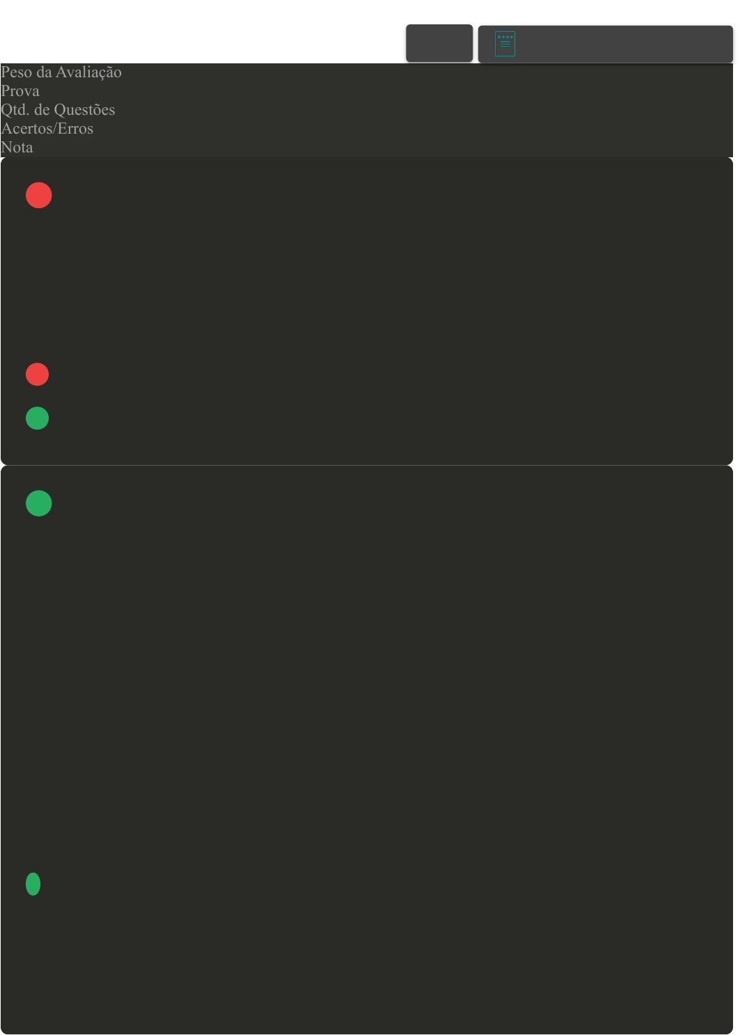 23/05/2023, 16:48 Avaliação I - Individual about:blank 1/5 Prova Impressa GABARITO | Avaliação I - Individual (Cod.:826774) Peso da Avaliação 1,50 Prova 63969893 Qtd. de Questões 10 Acertos/Erros 8/2 Nota 8,00 A depreciação corresponde à perda do valor dos direitos que têm por objeto bens físicos sujeitos a desgastes ou perda de utilidade por uso, ação da natureza ou obsolescência. Qual a taxa anual de depreciação normalmente admitida pelo Fisco para uso normal dos bens (um turno de oito horas diárias) no caso de máquinas e equipamentos? A 4%. B Não possui depreciação. C 20%. D 10%. O CPC 00 (R1) apresenta a Estrutura Conceitual para Elaboração e Divulgação de Relatório Contábil-Financeiro. Sobre as considerações do CPC 00 (R1) com relação ao ativo, assinale a alternativa CORRETA: FONTE: http://www.cpc.org.br/CPC/Documentos-Emitidos/Pronunciamentos/Pronunciamento? Id=80. Acesso em: 17 maio 2021. A As contas do Ativo representam bens e obrigações da empresa. B As movimentações das contas do Ativo obedecem ao grau de liquidez dos fatos. C Ativo é um recurso controlado pela entidade como resultado de eventos passados e do qual se espera que fluam futuros benefícios econômicos para a entidade. D As contas Patrimoniais e de Resultado figuram as movimentações e os saldos das contas do Ativo. VOLTAR A+ Alterar modo de visualização 1 2 23/05/2023, 16:48 Avaliação I - Individual about:blank 2/5 Segundo Ribeiro (2009, p. 637), o Ativo Circulante é constituído pelos Bens e pelos Direitos que estão em contínua circulação no patrimônio e que serão realizados até o término do exercício social subsequente. Considerando esse conceito, analise a seguinte situação: Uma empresa efetuou uma venda em 01/02/2020 no valor de R$ 63.000,00 em 28 vezes, sendo que o recebimento da primeira parcela está previsto para 01/03/2020 (para fins de resolução da questão, considere que você esteja no ano de 2020). Considerando como as parcelas deverão ser contabilizadas, assinale a alternativa CORRETA: FONTE: RIBEIRO, Osni Moura. Contabilidade Intermediária. 2. ed. São Paulo: Editora Saraiva, 2009. A R$ 63.000,00 no longo prazo. B R$ 22.500,00 no curto prazo e R$ 40.500,00 no longo prazo. C R$ 49.500,00 no curto prazo e R$ 13.500,00 no longo prazo. D R$ 27.000,00 no curto prazo e R$ 36.000 no longo prazo. Uma empresa adquiriu uma máquina para produção de tecidos pelo valor de R$ 10.000,00. Para instalação, a empresa gastou R$ 2.000,00. A máquina ficou pronta para uso em 01/10/2020. A empresa calcula a depreciação usando o método linear. Com base nos dados informados, qual será a despesa de depreciação da máquina no mês de outubro de 2020? A R$ 83,34. B R$ 90,00. C R$ 66,67. D R$ 100,00. Ativo Circulante refere-se aos bens e direitos que em curto prazo serão convertidos em dinheiro para o empreendimento. Os elementos que fazem parte desse ativo podem variar de acordo com o perfil da empresa. Já o Ativo não Circulante, remete à ideia de uma característica mais rígida desse tipo de ativo. Os ativos não circulantes são bens e direitos que serão transformados em dinheiro em médio ou longo prazo. Com base nesse contexto, avalie as asserções a seguir e a relação proposta entre elas: 3 4 5 23/05/2023, 16:48 Avaliação I - Individual about:blank 3/5 I- Ativo é um recurso controlado pela entidade como resultado de eventos passados e do qual se espera que fluam futuros benefícios econômicos para a entidade. PORQUE II- Ao avaliar se um item se enquadra na definição de ativo, deve-se atentar para a sua essência subjacente e realidade econômica, e não apenas para sua forma legal. Assinale a alternativa CORRETA: A A assertiva II contraria a ideia expressa na assertiva I. B As assertivas I e II são proposições excludentes. C As assertivas I e II são proposições falsas. D As duas assertivas são proposições verdadeiras, e a segunda é uma justificativa correta da primeira. As contas a receber representam os valores a receber advindos de vendas a prazo de mercadorias e/ou serviços a clientes, podendo também ser oriundos de outras transações. Essas outras transações não estão ligadas diretamente à atividade principal da empresa, por isso é necessário que haja a segregação dos seus valores. Sobre as contas que participam da segregação no contas a receber, classifique V para as sentenças verdadeiras e F para as falsas: ( ) A pagar de clientes comerciais. ( ) Contas a receber de partes relacionadas. ( ) Pagamentos antecipados. ( ) Outros montantes, denominados verbas. Assinale a alternativa que apresenta a sequência CORRETA: A F - F - V - V. B V - V - F - F. C V - F - F - V. D F - V - V - F. Ativos Intangíveis são ativos não físicos por natureza, ou seja, não podem ser tocados. São incorpóreos representados por bens e direitos associados a uma organização. Sobre as características do Ativo Intangível abordado pelo CPC 04, classifique V para as sentenças verdadeiras e F para as falsas: ( ) Um ativo intangível será baixado somente quando for alienado. ( ) Valor residual de um ativo intangível é o lucro estimado que uma entidade obteria com a venda do ativo. ( ) Cada ativo intangível deve ter divulgado: sua vida útil, seu método de mensuração, valores e conciliações. ( ) Ativo intangível com vida útil indefinida não deve ser amortizado. 6 7 23/05/2023, 16:48 Avaliação I - Individual about:blank 4/5 Assinale a alternativa que apresenta a sequência CORRETA: FONTE: COMITÊ DE PRONUNCIAMENTOS CONTÁBEIS. CPC 04 (R1) - Ativo intangível. Disponível em: http://www.cpc.org.br/CPC/Documentos- Emitidos/Pronunciamentos/Pronunciamento?Id=35. Acesso em: 29 ago. 2016. A V - F - F - V. B F - V - V - F. C F - F - V - V. D V - V - F - F. A depreciação acumulada é o valor que um ou mais bens perdem em um determinado período de uso. Essa desvalorização pode ocorrer por diversos fatores. Dentre eles, o mai