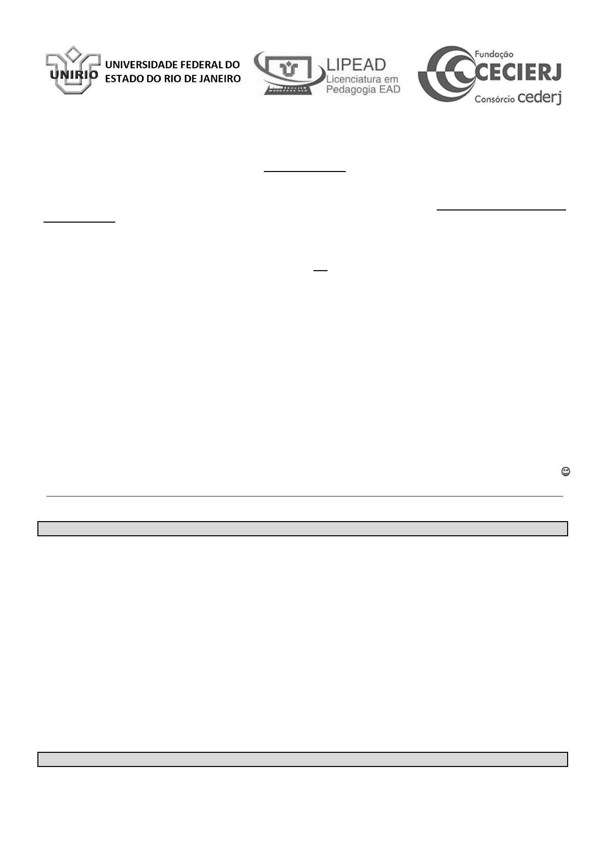 Disciplina: Língua Portuguesa na Educação 1 Coordenação: Prof. Diego Vargas APX3 – 2021.2 Prezados alunos: Esta é a sua terceira Avaliação “Presencial” de Língua Portuguesa na Educação 1. LEIA, COM ATENÇÃO, OS ITENS ABAIXO! → Responda as questões no arquivo próprio para isso, nomeado FOLHA DE RESPOSTAS, em anexo a esta prova na plataforma, e envie-o de volta dentro do prazo informado em nosso cronograma. → Não envie o arquivo de respostas em pdf. Arquivos em pdf serão desconsiderados. → Esta avaliação poderá ser realizada por grupos de até 3 estudantes. Os dados dos membros do grupo devem ser apresentados no local apropriado para isso na folha de respostas. Aproveite essa oportunidade para discutir e aprender com os colegas. Não separe as questões por membros do grupo. Todos devem participar da elaboração de todas as respostas. Essa é uma oportunidade única de aprendizado! → Esta APX3 é composta por questões discursivas que exigem respostas não muito extensas. Nos últimos semestres, temos observado que muitos alunos apresentam respostas muito extensas mesmo sem dominarem bem o tema das questões, o que torna nosso processo de avaliação cansativo e pouco producente. Para melhor entendermos como está o seu processo de construção dos saberes envolvidos em nossa disciplina, atente-se ao que se pede nas questões. → Responda com atenção e não se esqueça de revisar seu texto, verificando se as ideias estão claras e bem apresentadas. Lembre-se que um texto acadêmico, como os solicitados nesta avaliação, deve estar pautado pela articulação entre os saberes construídos por você e os textos lidos ao longo do curso. → Em função desse novo contexto em que nos encontramos, esta avaliação pode ser realizada com consulta. Saiba usar o material do curso para estudo. Não busque fontes na internet e não copie trechos dos materiais estudados ou de colegas. Qualquer plágio encontrado resultará na anulação da prova inteira. Plágio é crime e será punido com a nota ZERO. (Há uma apostila sobre plágios na plataforma). Boa prova!! QUESTÃO 1: 2,0 pontos Considerando o material estudado ao longo da disciplina, em especial, o texto “Linguagem oral no espaço escolar: rediscutindo o lugar das práticas e dos gêneros orais na escola”, de Anna Christina Bentes, produza um pequeno texto explicando como você organizaria uma aula, para uma turma de crianças do segundo ciclo (3º e 4º anos) do ensino fundamental, centrada no trabalho com a oralidade. Sua aula precisa: - estar focada em um ou mais gêneros orais; - relacionar fala e escrita; - considerar os modos de fala como recursos para o desenvolvimento de competências comunicativas orais; - tratar de outras linguagens que auxiliem no desenvolvimento de competências comunicativas orais. (Obs: Não é para produzir um plano de aula ou um planejamento em tópicos!) QUESTÃO 2: 2,0 pontos Com base no material estudado, diferencie o ensino tradicional de gramática da proposta de trabalho com a análise / reflexão linguística. Traga exemplos que justifiquem sua resposta. QUESTÃO 2: 3,0 pontos Levando em consideração os textos estudados por você em nossa disciplina, compare as duas atividades de leitura apresentadas a seguir, com base nos seguintes critérios: o trabalho com o conhecimento prévio dos alunos e com as etapas de leitura; a função social dos gêneros textuais; e os modos e níveis de leitura exigidos pelas questões propostas. ATIVIDADE 1 (Fonte: https://atividadesdivertidas.com/) OBS: Apesar de o texto estar cortado em algumas frases, isso não impede a realização da questão da nossa prova. ATIVIDADE 2 https://atividadesdivertidas.com/ (Fonte: GIESEN, Maria Regina Caetano; VENANTTE, Lenitta; MONFERINO, Lidiane. Akpalô Língua Portuguesa - 1º ano . São Paulo, Editora do Brasil, 2017) QUESTÃO 4: 3,0 pontos Levando em consideração os textos estudados por você em nossa disciplina, compare as duas atividades de leitura apresentadas a seguir, com base nos seguintes critérios: a construção da autoria dos estudantes; a oposição redação x produção de texto; e a função social dos gêneros textuais. ATIVIDADE 1 (Fonte: https://danieducar.com.br/producao-de-texto-2-ano/) ATIVIDADE 2 (Fonte: GIESEN, Maria Regina Caetano; VENANTTE, Lenitta; MONFERINO, Lidiane. Akpalô Língua Portuguesa - 1º ano . São Paulo, Editora do Brasil, 2017)