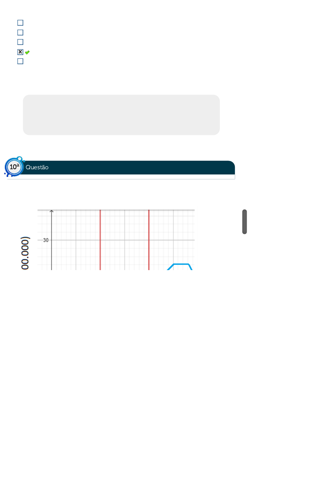 O nível de 40m foi atingido quantas vezes neste período? 1 3 5 2 4 Respondido em 22/11/2022 07:11:40 Explicação: Percebemos que o gráfico possui uma queda acentuada quando o nível da água chega em 10m. É nesta queda que o nível de 40m é atingido pela primeira vez. Logo em seguida o gráfico apresenta uma subida também acentuada e o nível novamente atinge a marca de 40m. Logo a resposta correta é 2 vezes. Acerto: 1,0 / 1,0 O gráfico mostra o faturamento de duas empresas, A e B, em milhões de reais (eixo y) durante o primeiro semestre do ano (eixo x). A empresa A está representada no gráfico pela linha azul e a empresa B pela linha verde. Questão10 a